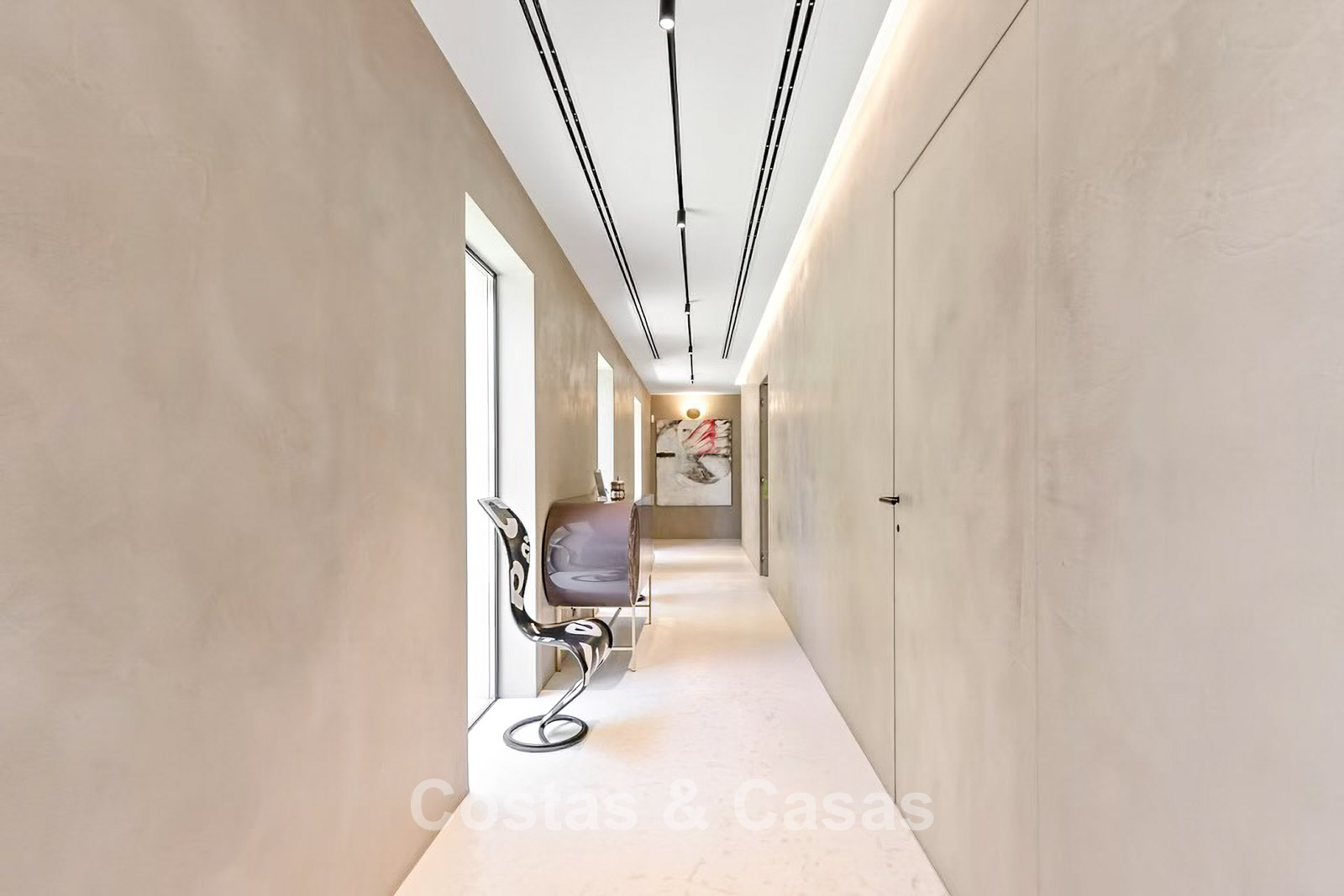 Spacious plot in an elevated position. Manicured landscaped garden with manicured landscaping. Private heated swimming pool with adjacent sun terrace with sun loungers. Covered and open terraces with ample space for installing lounge facilities. The detached villa is in excellent condition. South-west facing with garden views. A large living area with fireplace and TV lounge. Open, complete kitchen with large central island followed by a breakfast bar. Separate dining area. The kitchen is connected to the covered terrace which is partly equipped with an industrial kitchen, lounge and dining area. 8 bedrooms, 5 bathrooms and 1 guest toilet in total. Separate guesthouse with a bedroom on the top floor with a separate entrance. The master bedroom is located on the upper floor and enjoys its own bathroom and private balcony. Office space. Children's playroom. Equipped gym. Laundry room. Garage for 2 and carport for 6 cars. Children's playground. Off the entrance is a built-in security house.