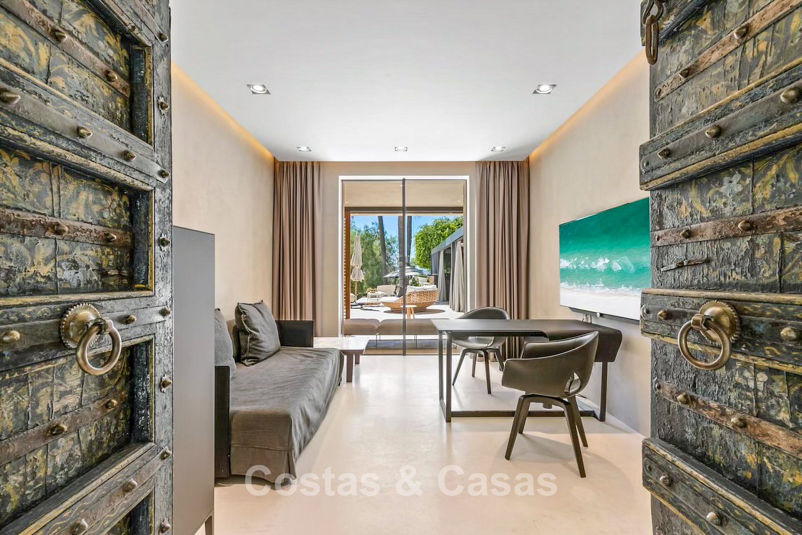 Quiet location a few minutes from the beach, restaurants, shops, pharmacy. Everything is just minutes away, including sand dunes and the best beaches in the entire Marbella region. The golf resorts of Cabopino, Calanova, Santa Maria, Santa Clara, Marbella Country Club and Rio Real are all within easy reach. It takes less than 15 minutes to drive to the centre of Marbella. Puerto Banus is an additional 5 minutes away from Marbella.