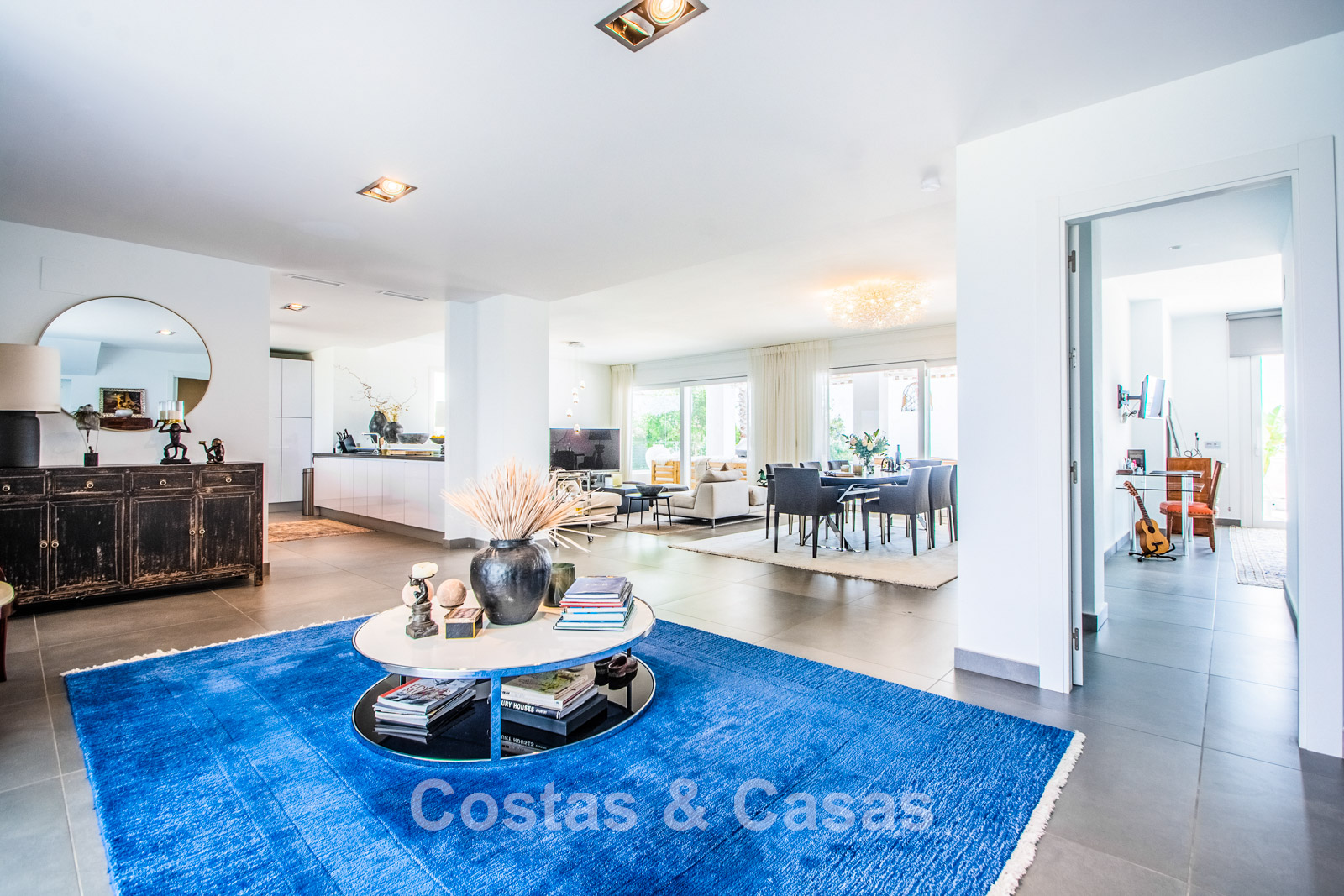 Large sliding windows throughout the villa provide plenty of natural daylight. Spacious living room with TV lounge and dining area.
