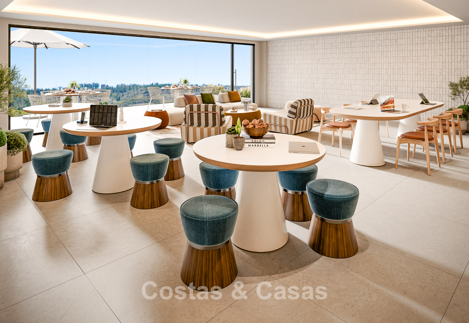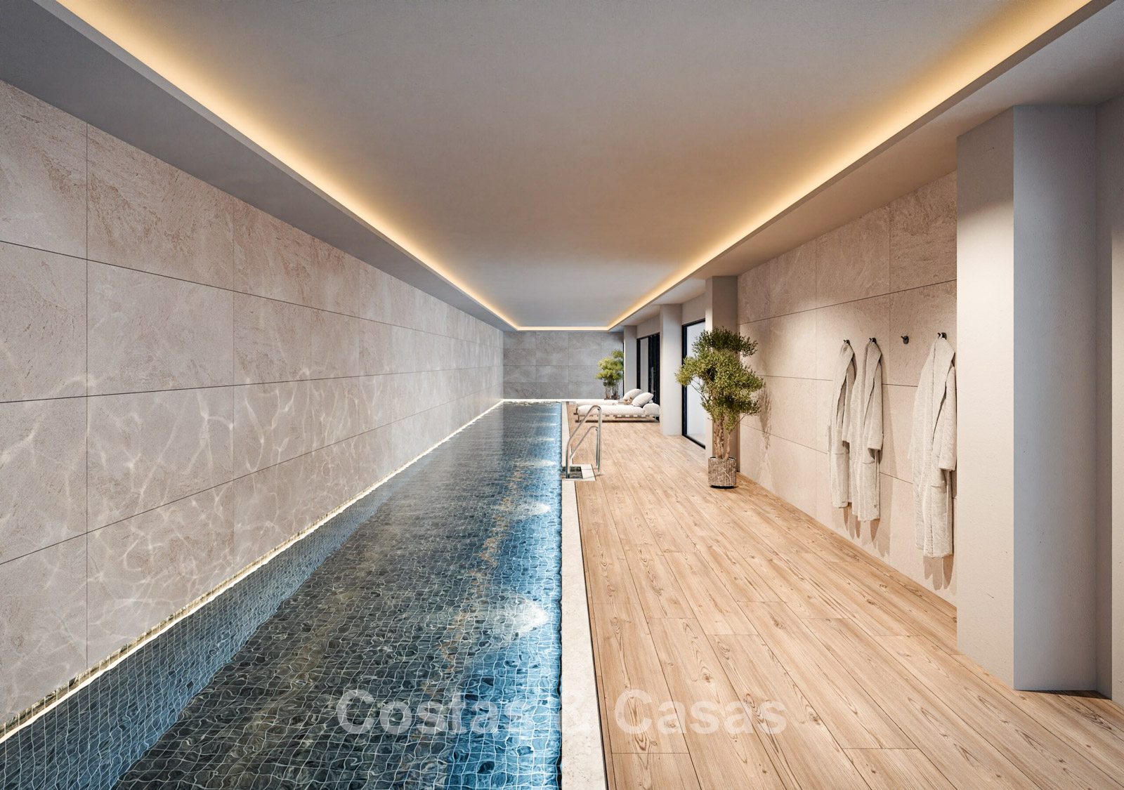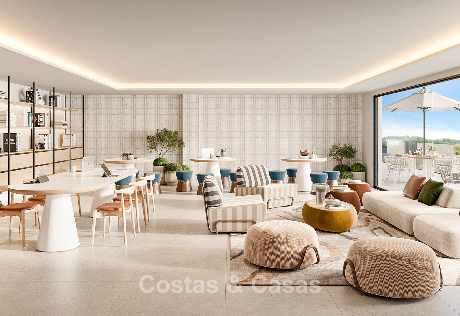 The complex offers communal facilities including a spectacular infinity pool, pool bar, heated indoor lap pool, spa with Turkish bath, modern fitness center, social lounge, and co-working space.