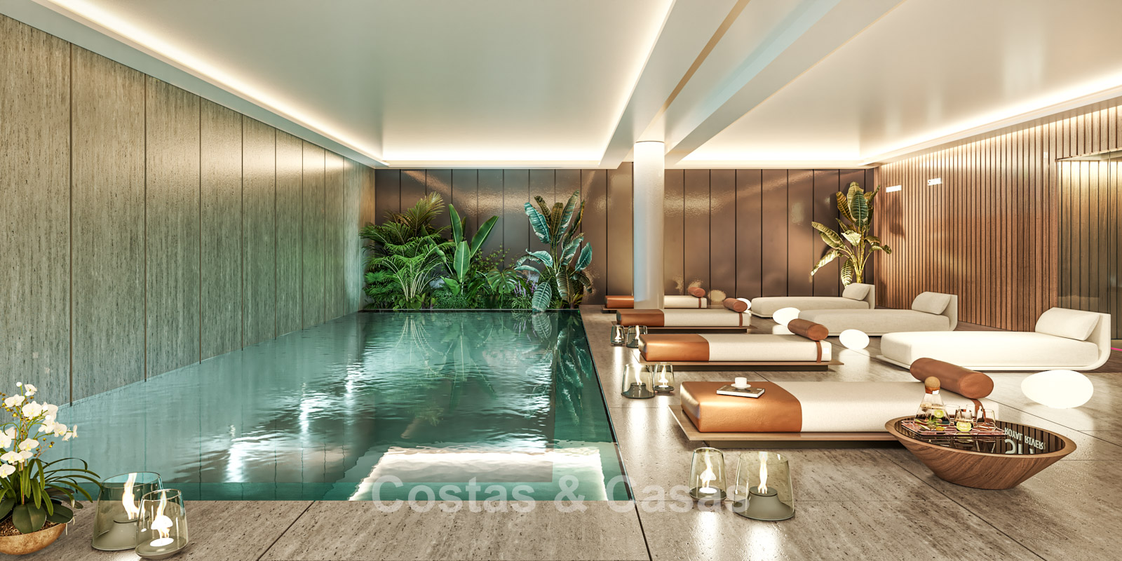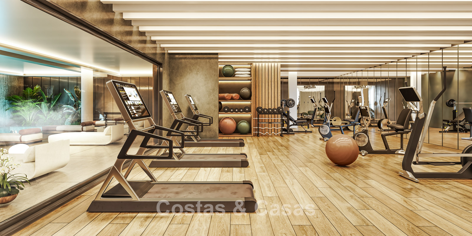 Located in the highly sought-after Río Real urbanisation, one of Marbella’s most elegant and tranquil residential areas. The project is set alongside the historic Río Real Golf Course, a stunning 18-hole course that stretches all the way to the sea. Other renowned golf courses such as Marbella Golf Country Club and Santa Clara Golf are less than a 5-minute drive away. While enjoying the serene atmosphere of the golf valley, the beach and the exclusive Trocadero Arena Beach Club are just 1.5 to 2 kilometres away — a short 3-minute drive or a pleasant walk for the more active resident. All essential amenities, including supermarkets, international schools and the large La Cañada shopping centre, are reachable within 5 to 10 minutes. In addition, Marbella’s vibrant town centre and promenade are only a 10 to 15-minute drive away. Residents benefit from a large communal outdoor swimming pool with sun terrace, a spa with indoor pool and sauna, and a fully equipped gym. The residential complex features advanced CCTV surveillance, access control and alarm systems. All communal areas are exclusively for residents, ensuring a safe and private living environment.