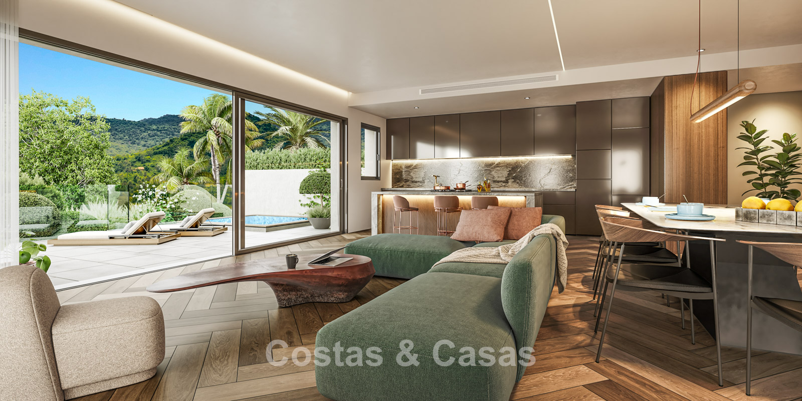 An exclusive development of just 16 state-of-the-art luxury apartments. The construction meets the highest standards of energy efficiency and sustainability. Stunning views of the natural surroundings, the golf courses and/or the Mediterranean Sea. Penthouses feature spacious rooftop terraces with private swimming pools. Ground-floor apartments enjoy private gardens with swimming pool. Outdoor spaces blend seamlessly into the interior thanks to large sliding doors with recessed profiles. The living areas are generously designed with an open layout to maximise the sense of space. The luxury kitchen is fully equipped with premium built-in appliances, a central island and a sleek modern design. Each apartment includes a private storage room. Effortless parking is provided in the underground garage with direct lift access.