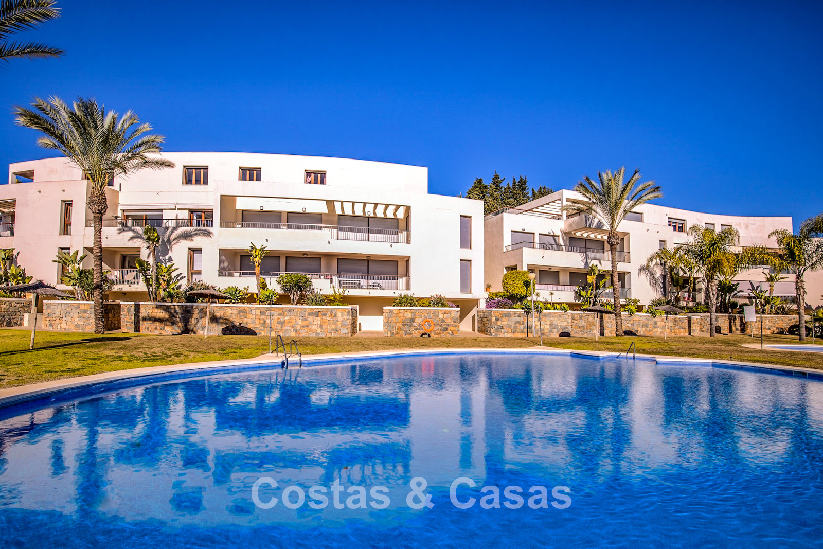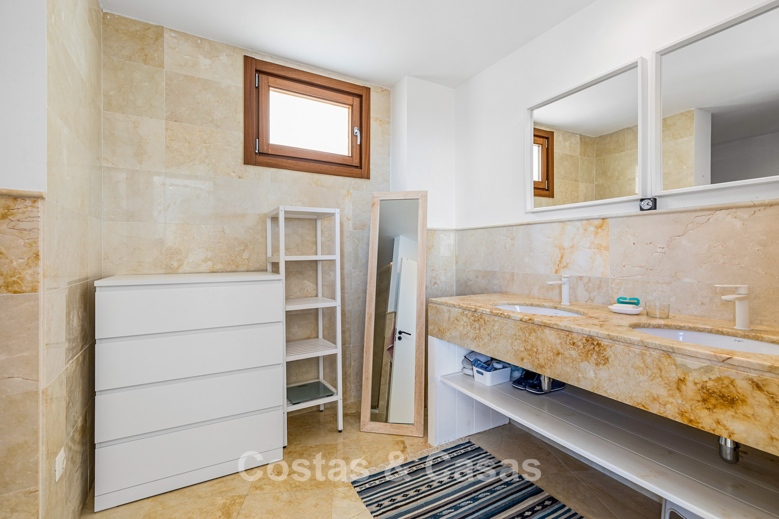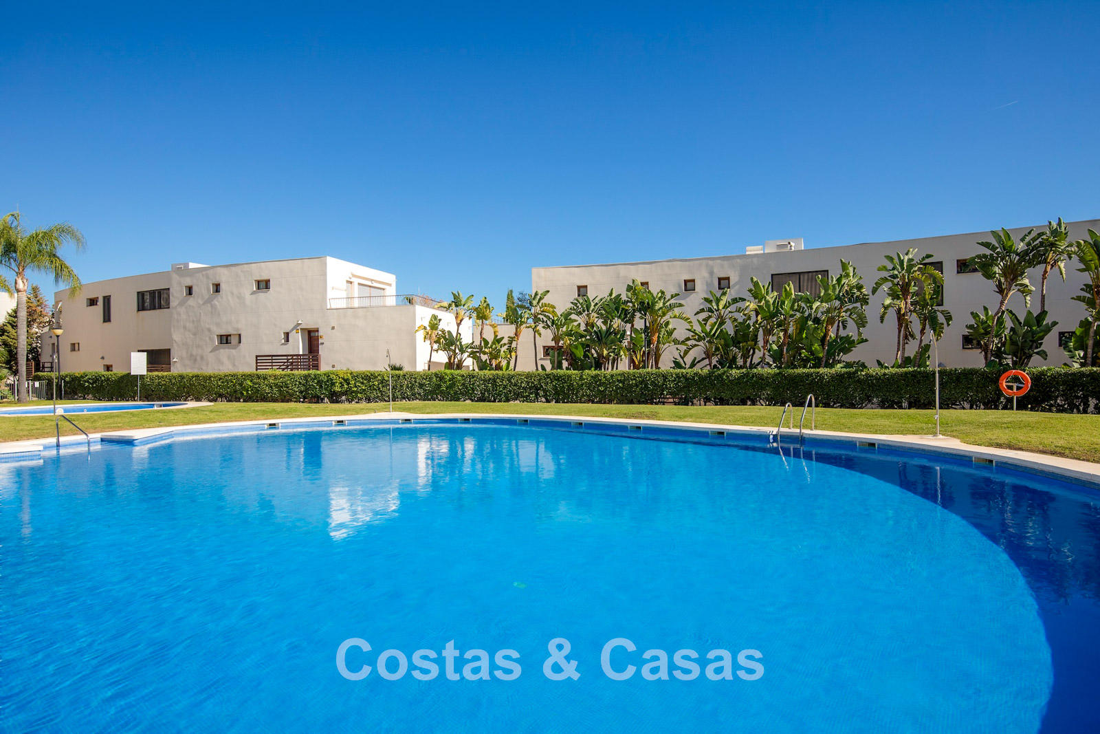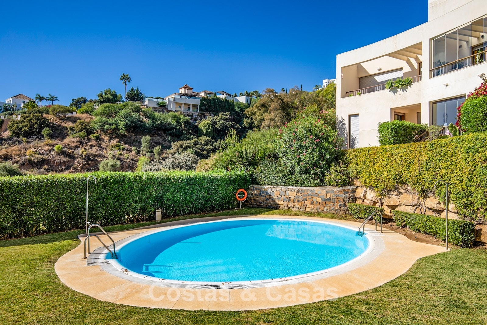 The area is peaceful and surrounded by nature, yet only a 10–12-minute drive from the beach and Marbella town centre. The urbanisation is about a 10-minute drive from Santa Clara Golf and around 12–15 minutes from Río Real Golf, two of the best-known courses in the region. Other courses such as Marbella Golf & Country Club are also reachable within 15 minutes. Málaga airport is approximately 45 minutes away via the A7. The complex offers communal swimming pools and gardens.