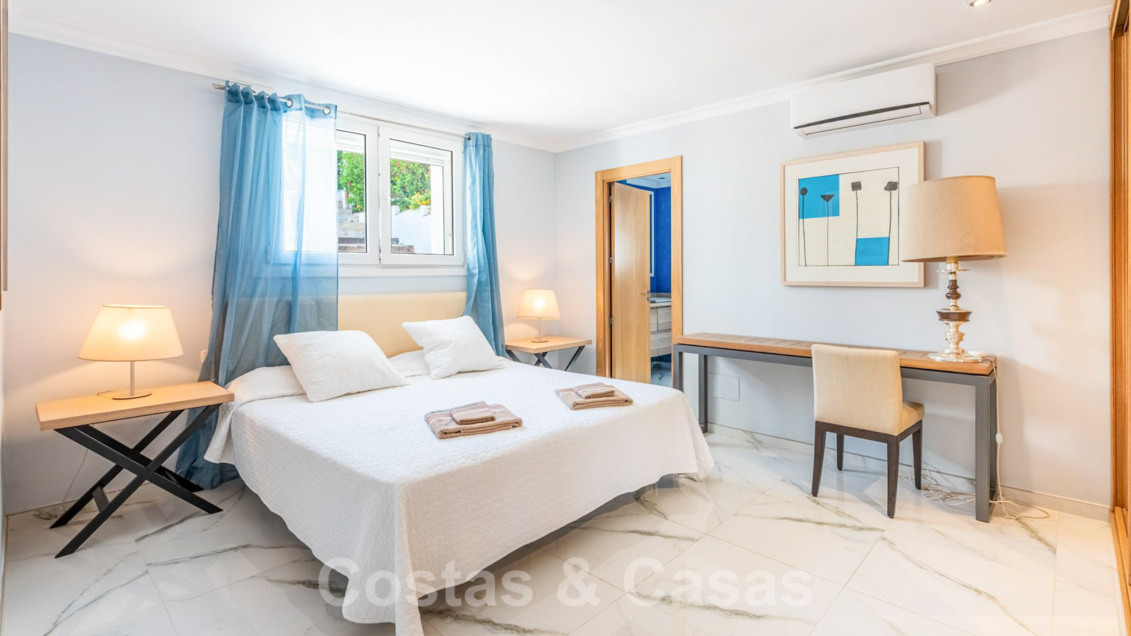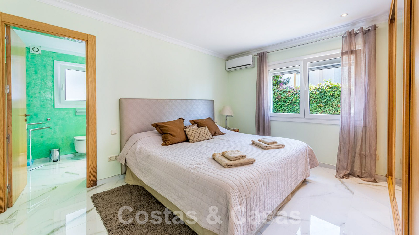 Air conditioning. Underfloor heating in the bathrooms. Fitted wardrobes. Sonos sound system.