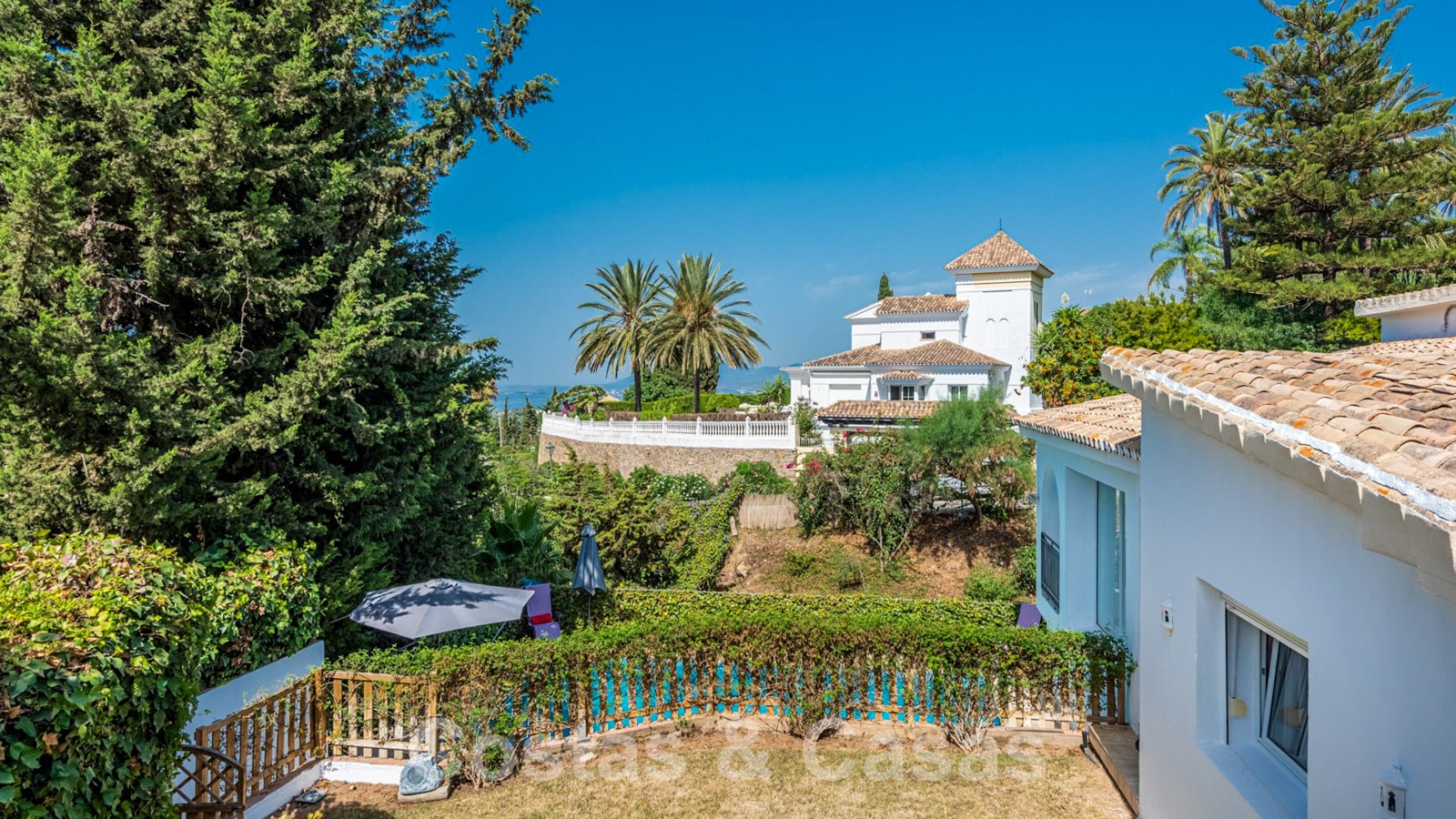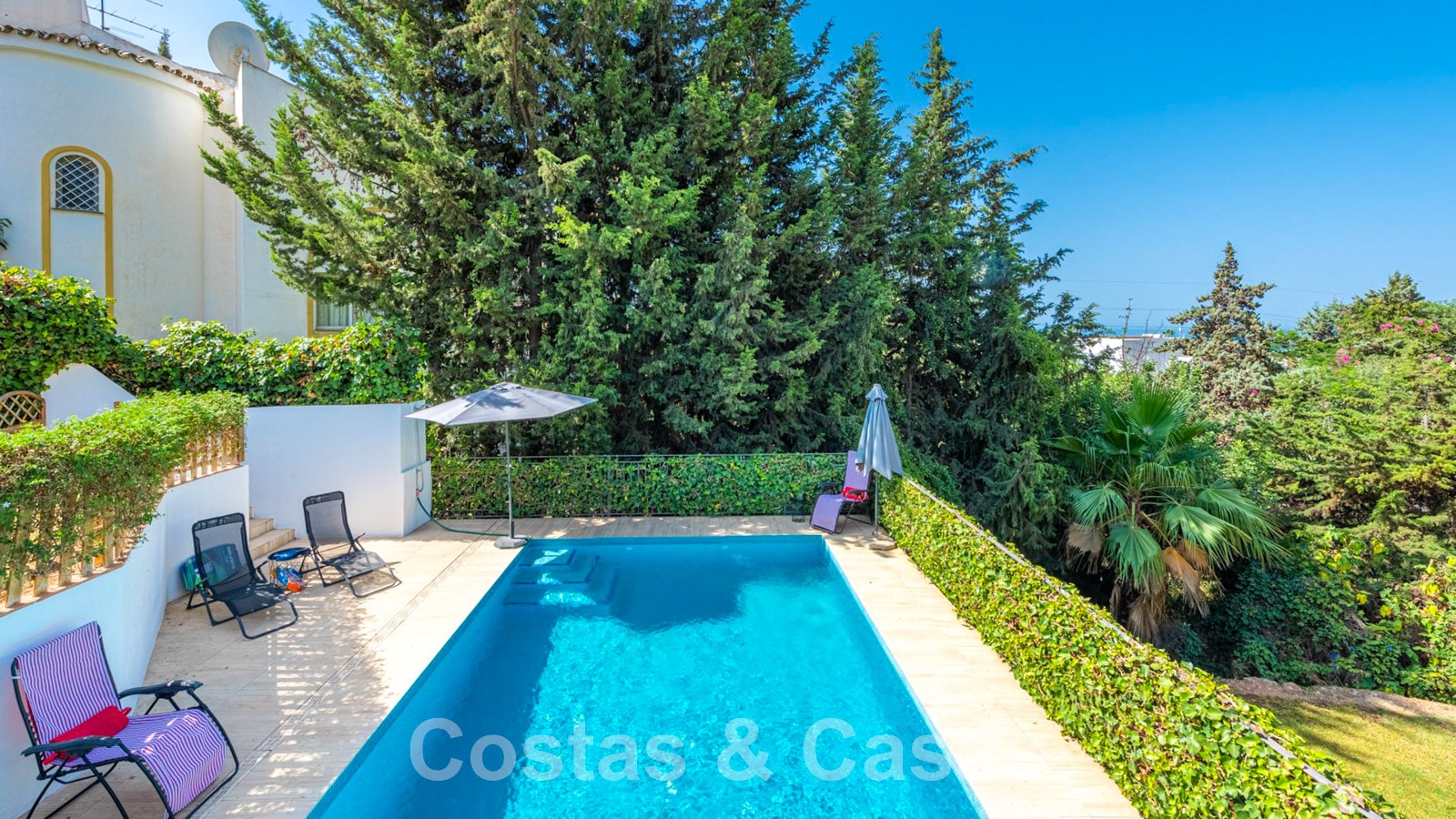 Large garden with private pool.