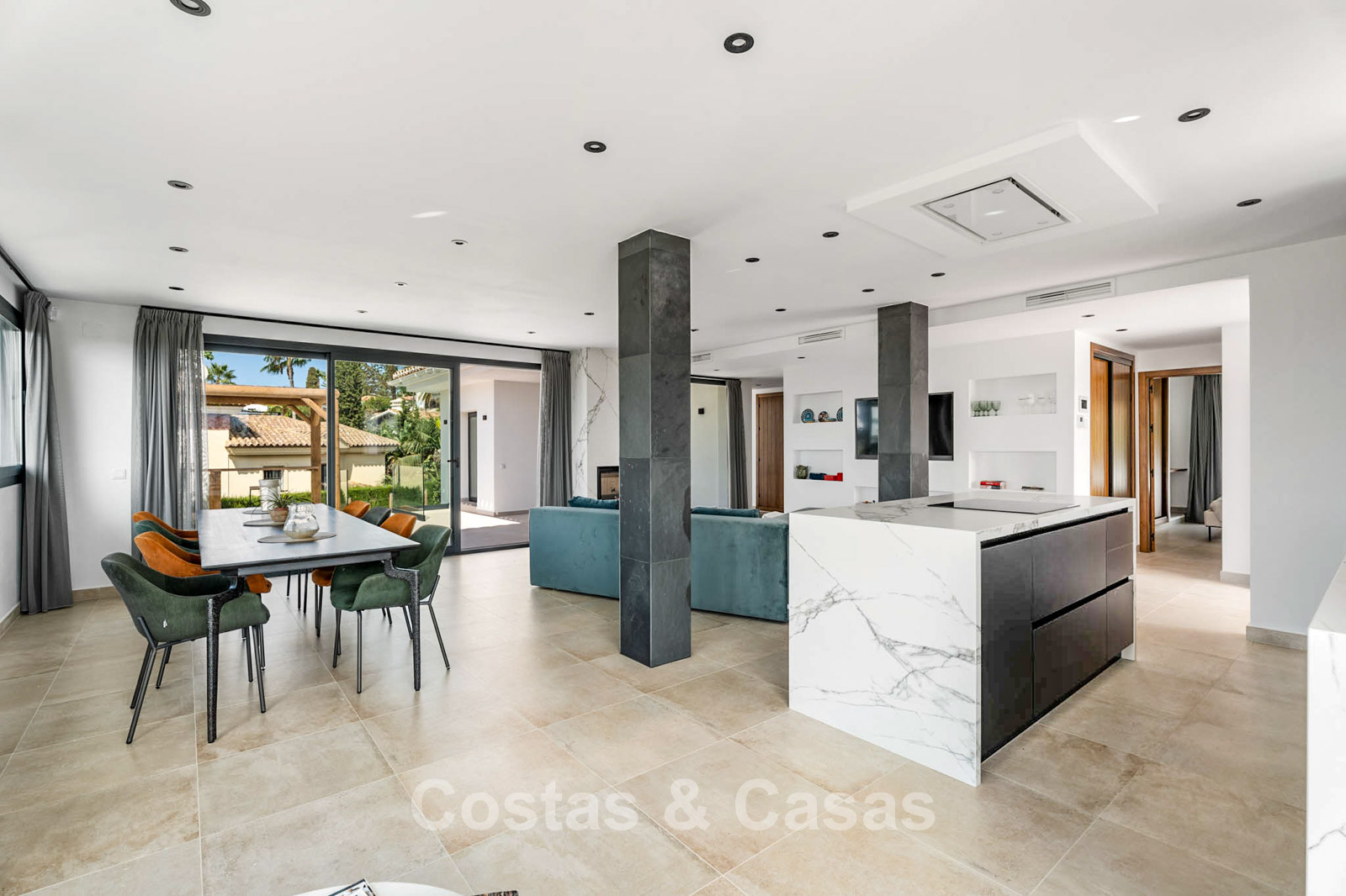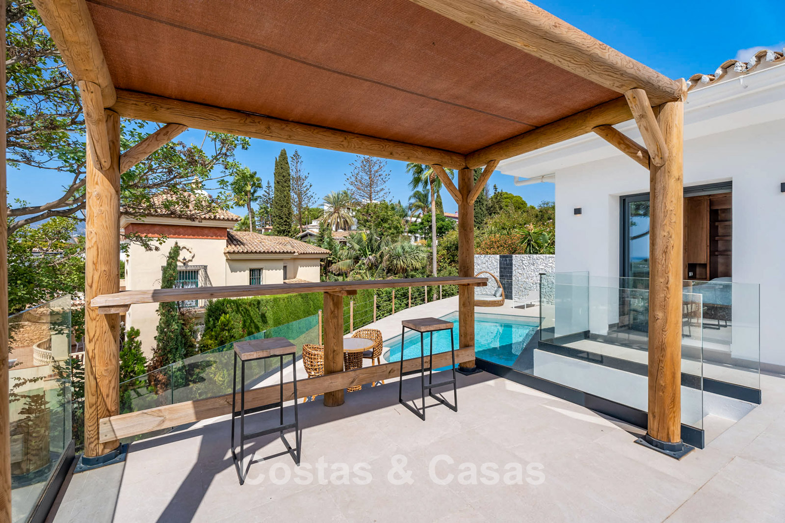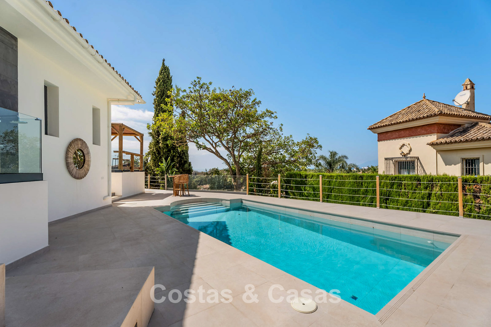 Beachside, modern Mediterranean family home with swimming pool for sale in Elviria, East Marbella
