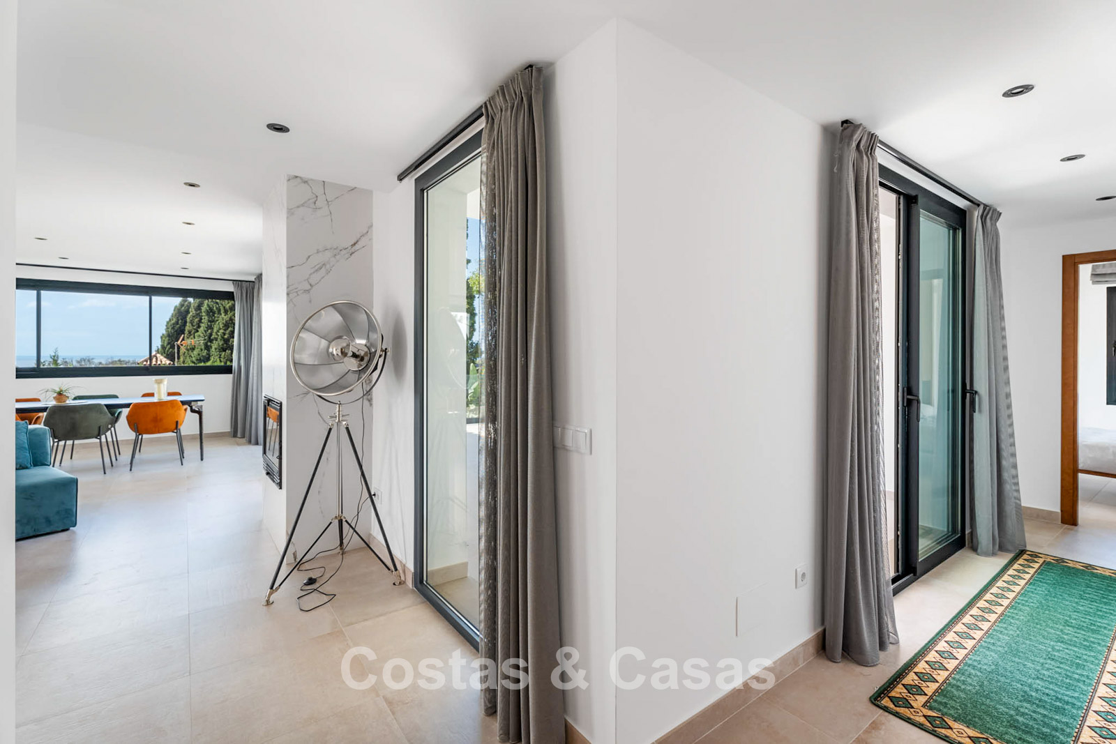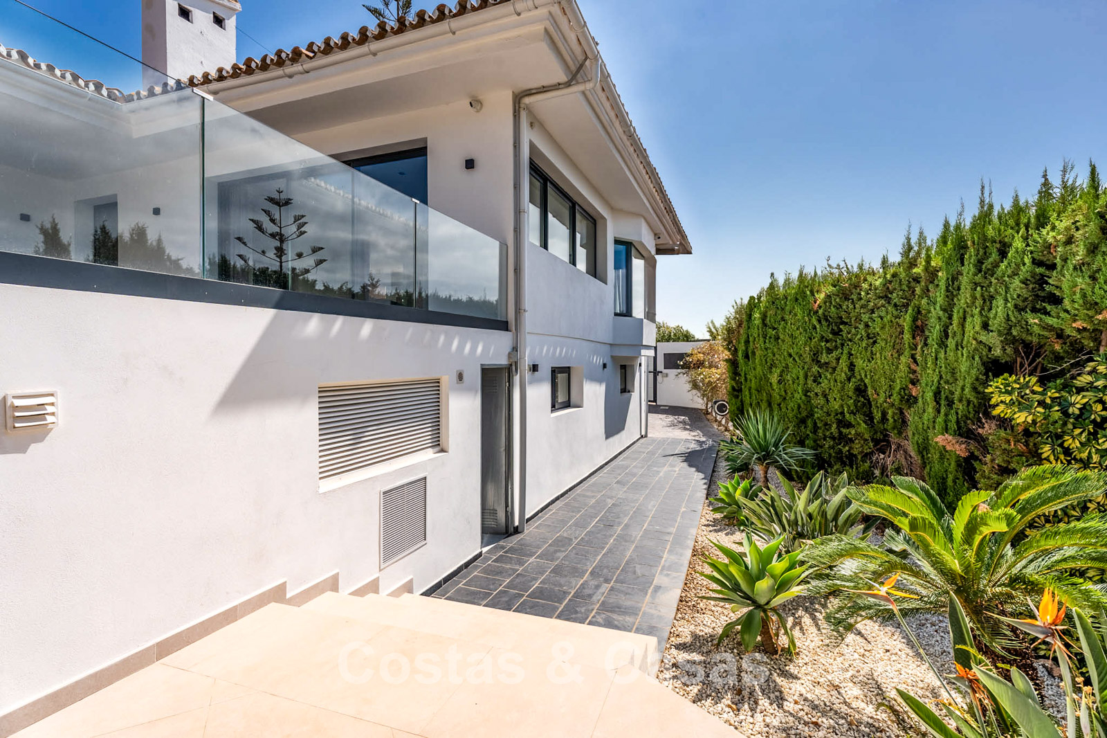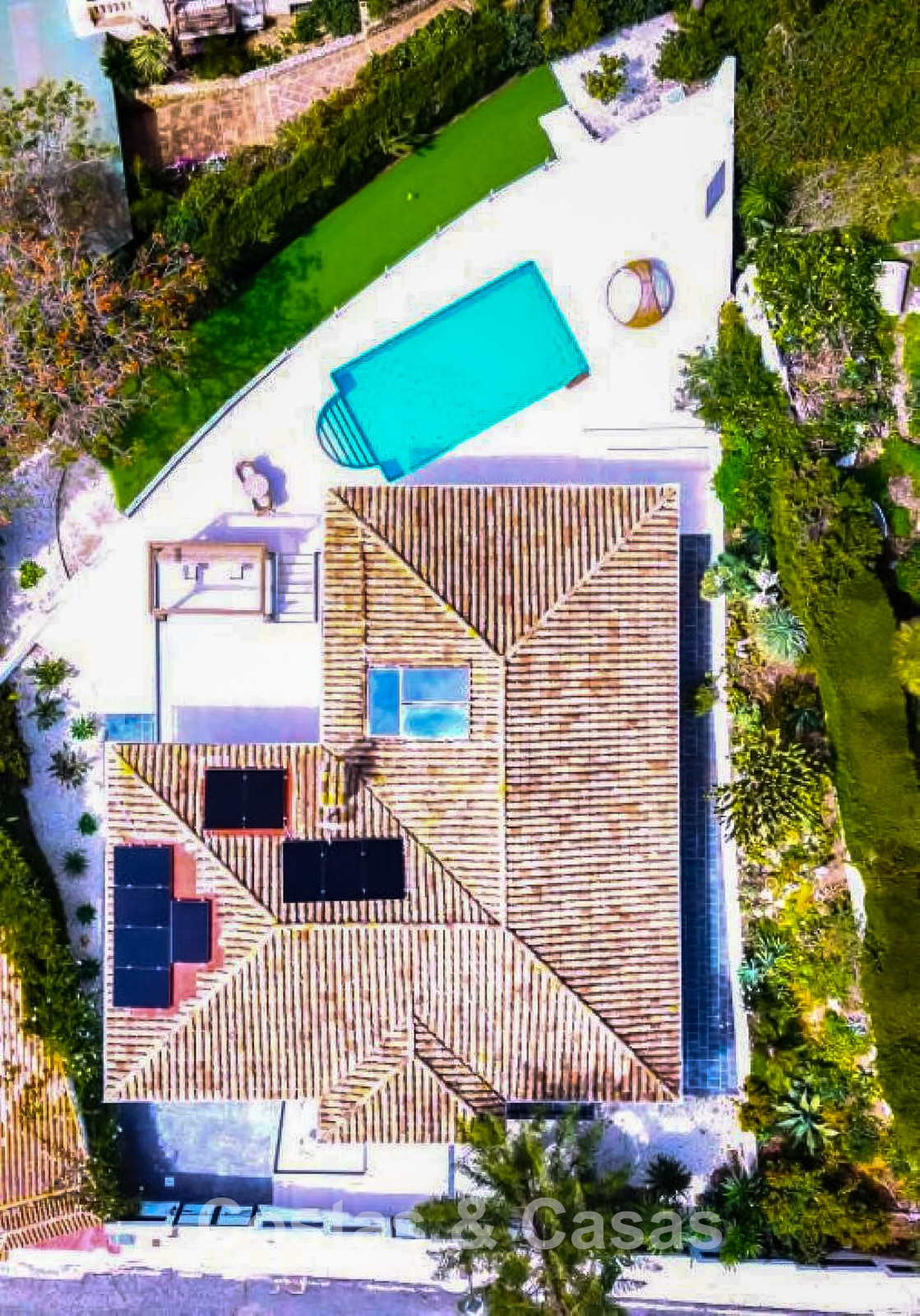 Additional features: Air conditioning (cooling and heating) Underfloor heating throughout Modern fireplace Designer fitted wardrobes Double glazing Electric shutters Glass balustrades for optimal views Alarm system and video intercom Automatic irrigation system Outdoor shower Solar panels Satellite TV