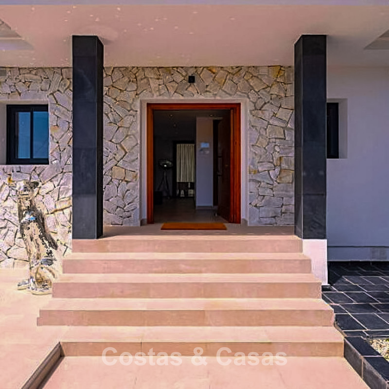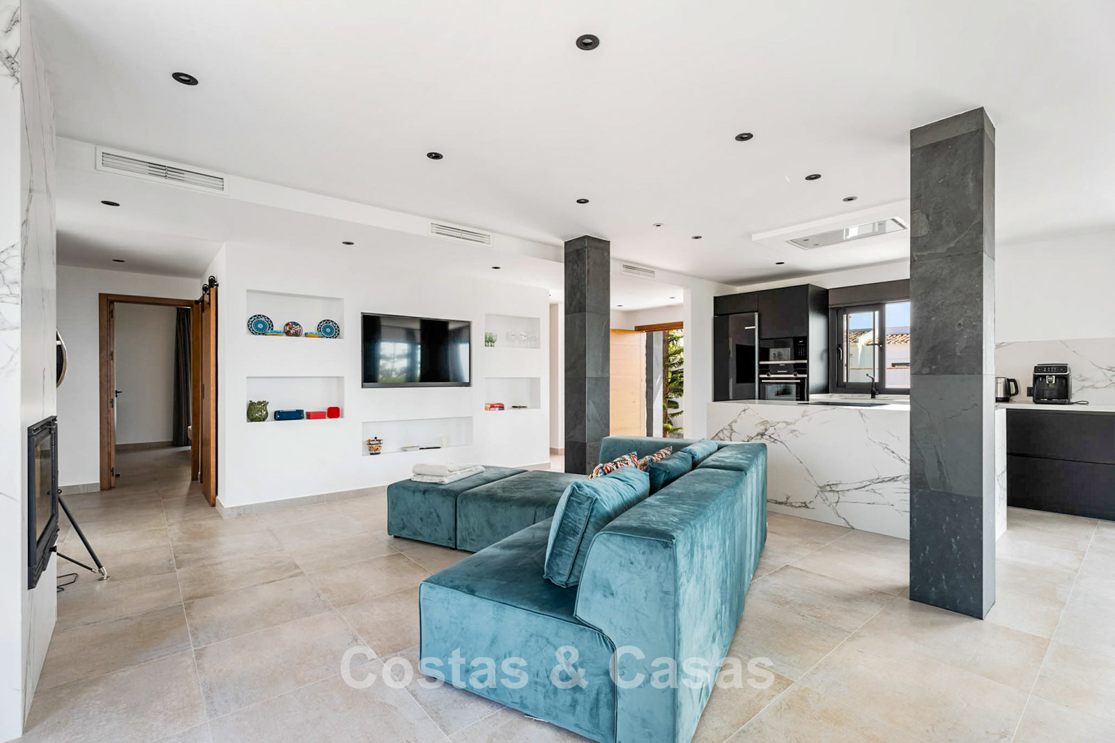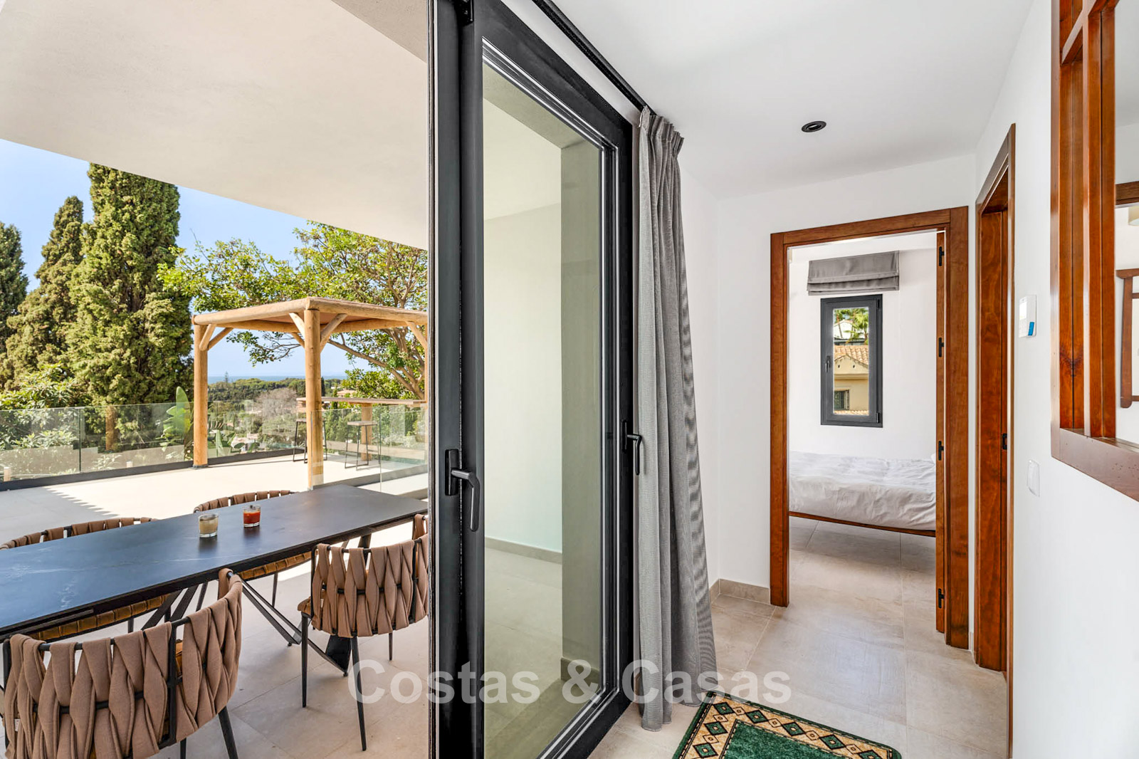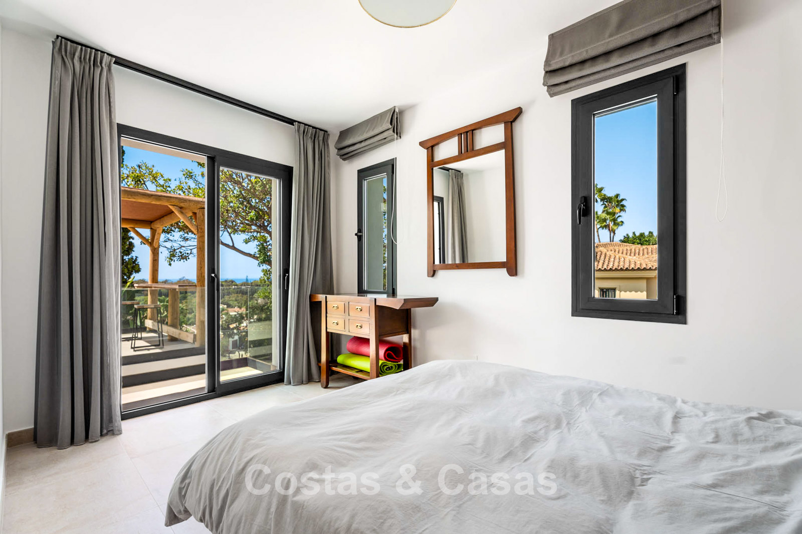 Additional features: Air conditioning (cooling and heating) Underfloor heating throughout Modern fireplace Designer fitted wardrobes Double glazing Electric shutters Glass balustrades for optimal views Alarm system and video intercom Automatic irrigation system Outdoor shower Solar panels Satellite TV