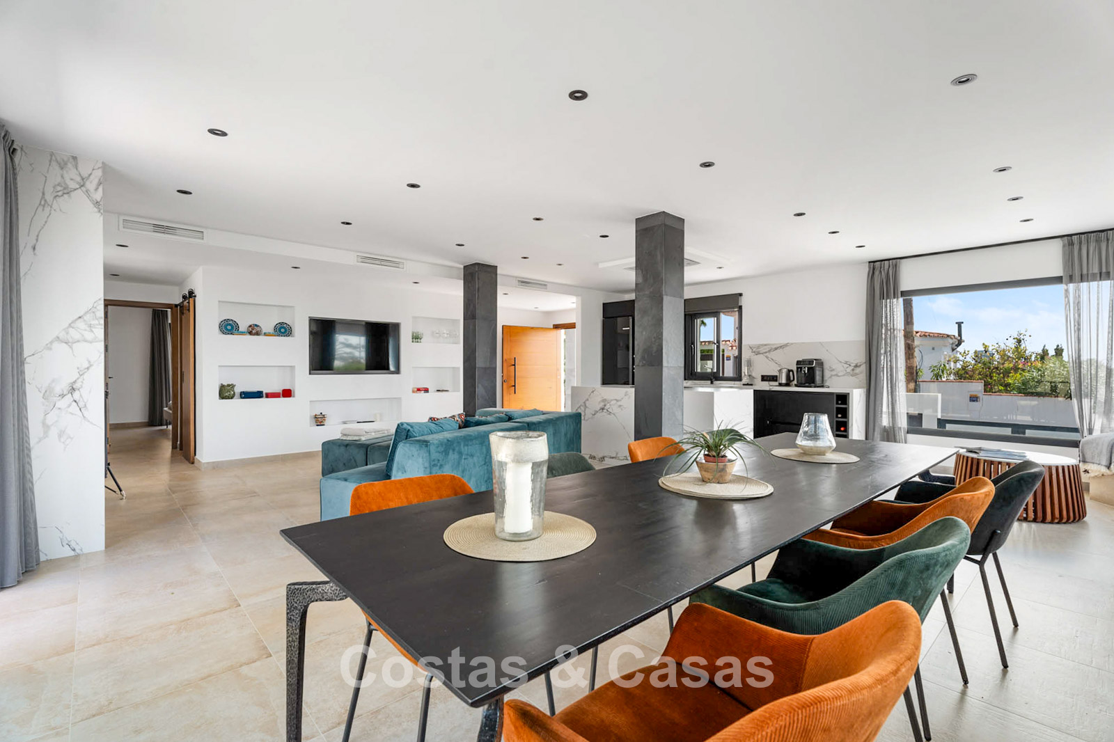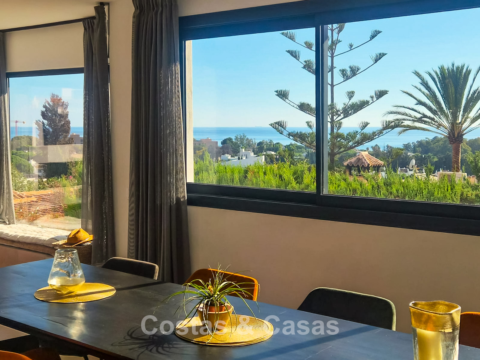 Situated in Elviria, one of Marbella’s most sought-after residential areas, within walking distance of the beach (just 200 metres) and surrounded by a wide selection of restaurants. The flat coastal urbanisation is ideal for relaxing walks and cycling routes along the seafront. Popular beach clubs such as Nikki Beach are only minutes away, as are all daily amenities including supermarkets, restaurants, golf courses, schools and sports facilities. The charming Cabopino marina is just a 5-minute drive away. Marbella’s vibrant town centre can be reached within 15 minutes. Málaga International Airport is approximately 30 minutes away.