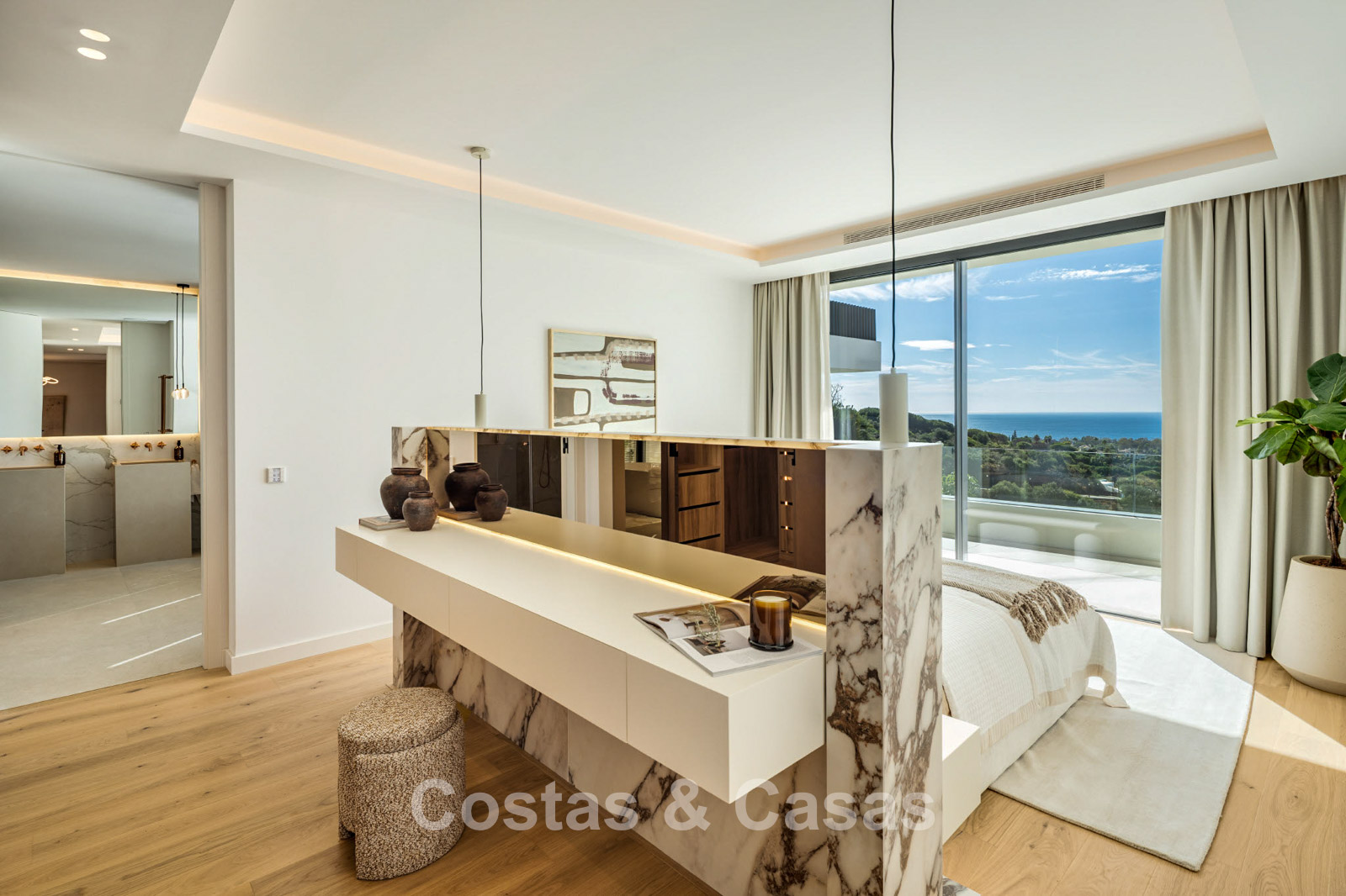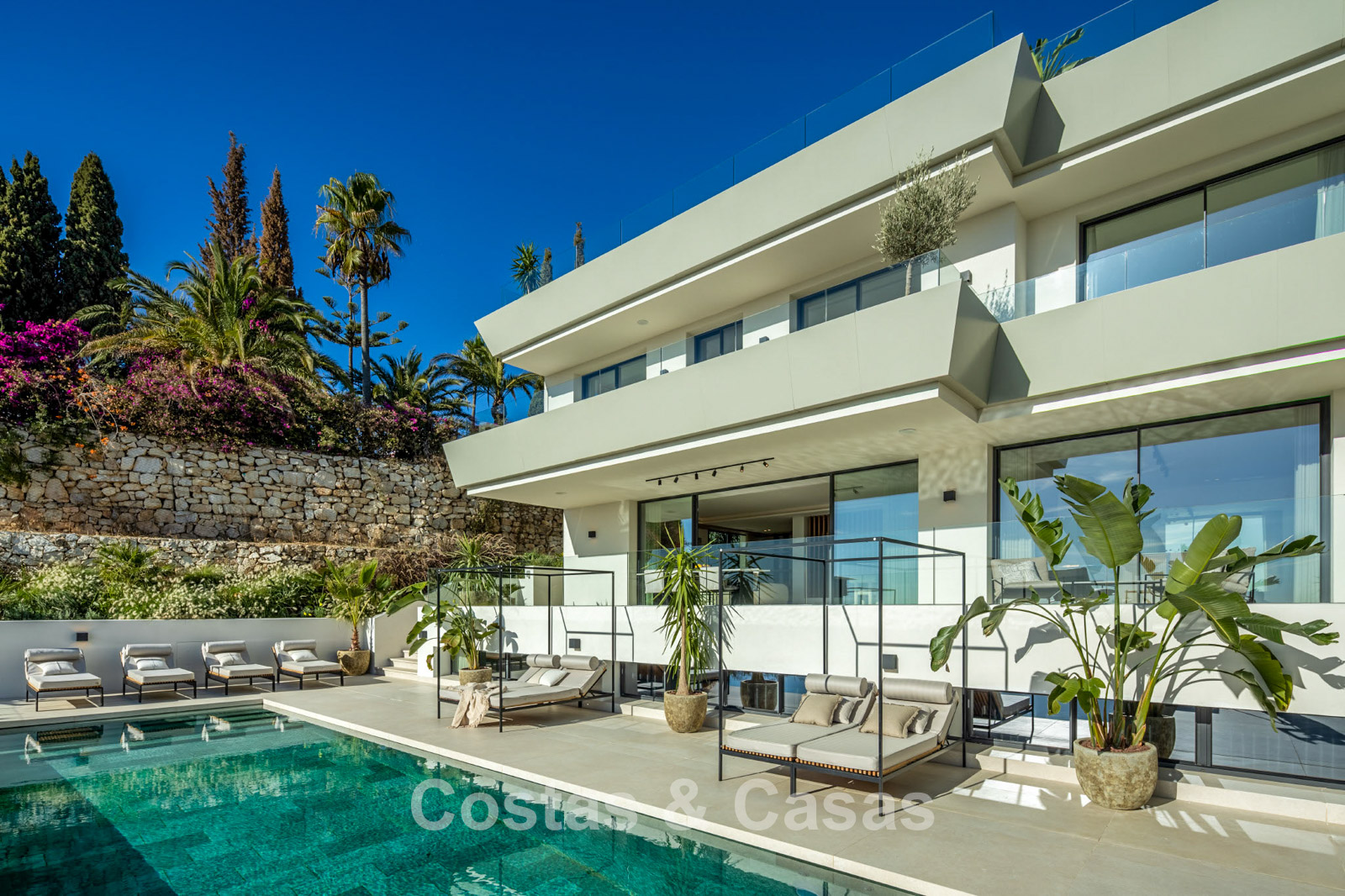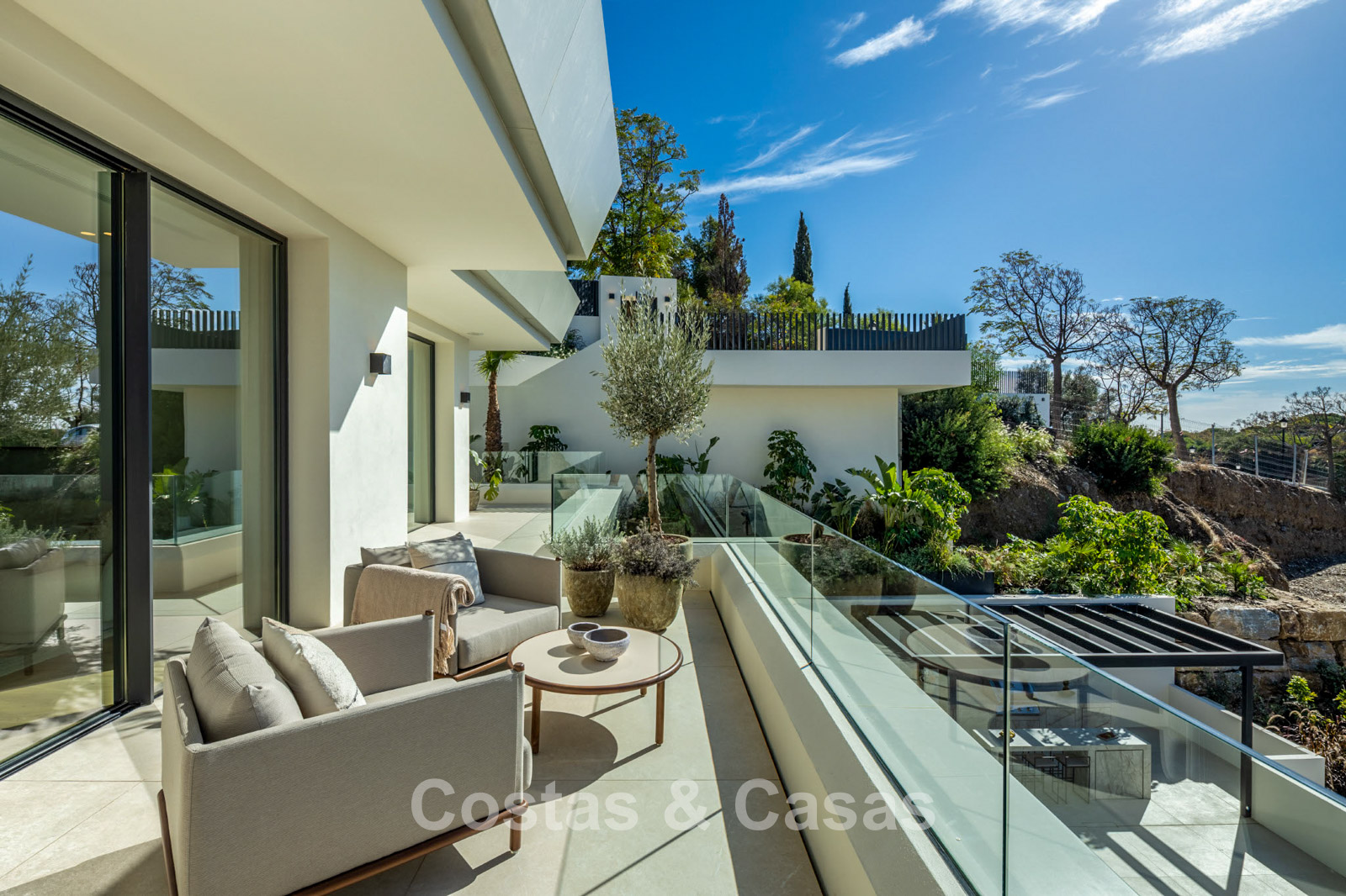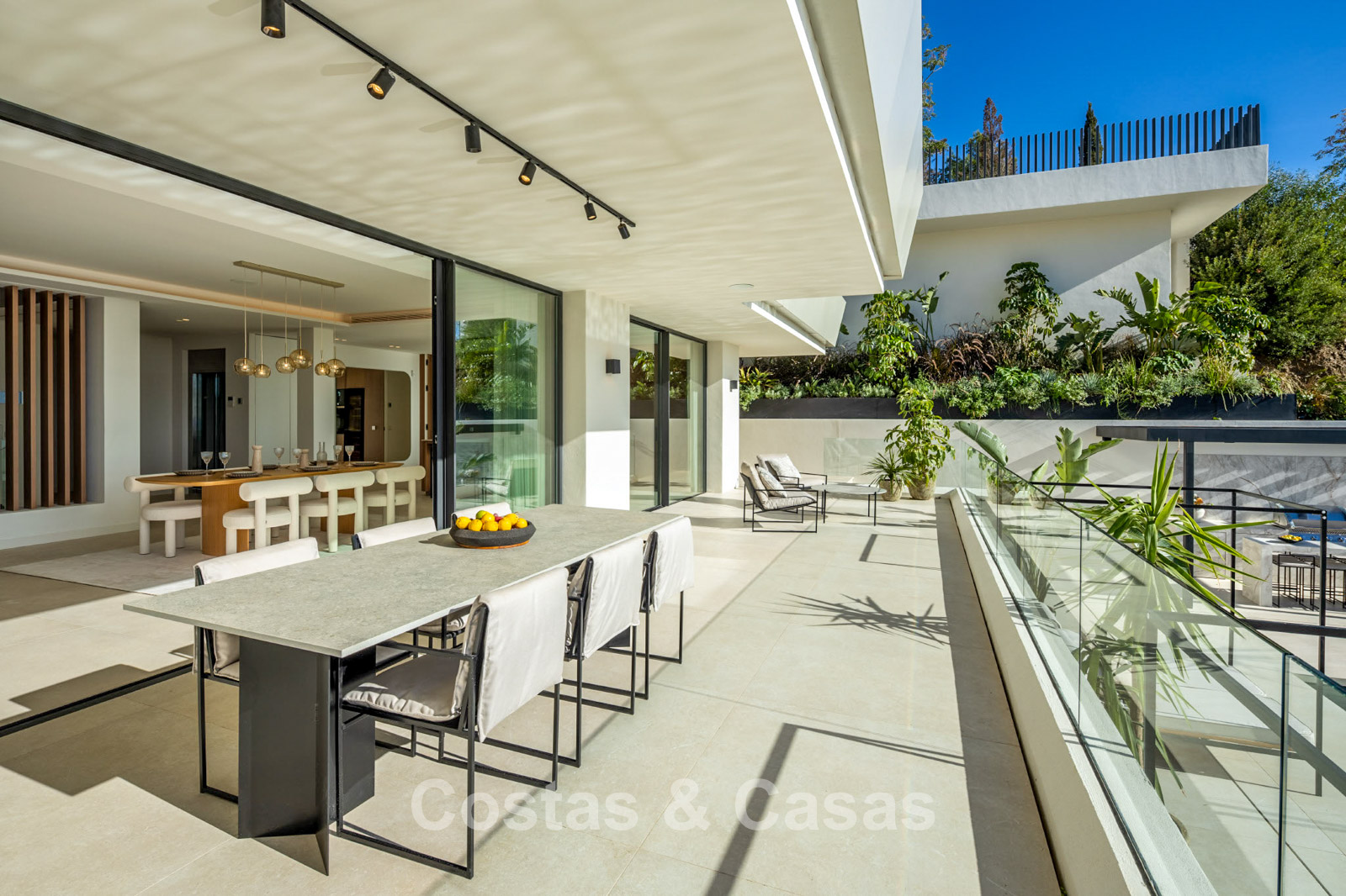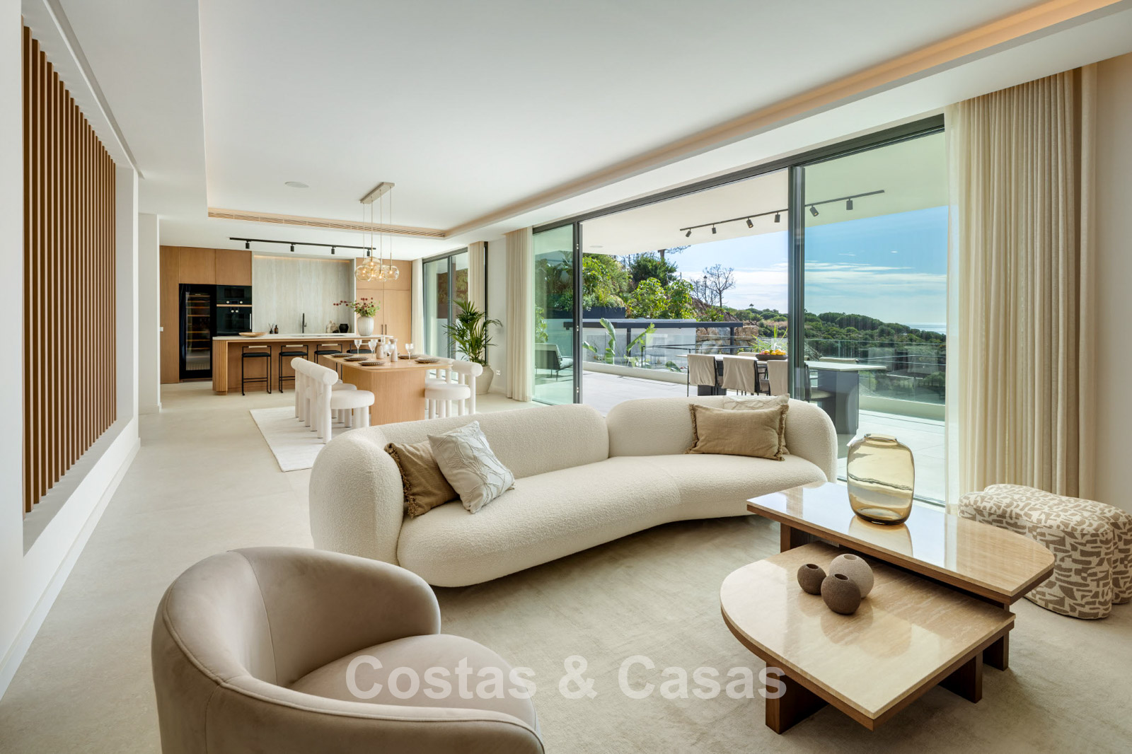 Fully fenced plot. The outdoor area also features expansive terraces, an outdoor kitchen with barbecue area, and a built-in infinity pool. The spacious roof terrace is equipped with a built-in jacuzzi and various lounge areas. South-facing. Impressive panoramic views of the Mediterranean Sea towards the Strait of Gibraltar.