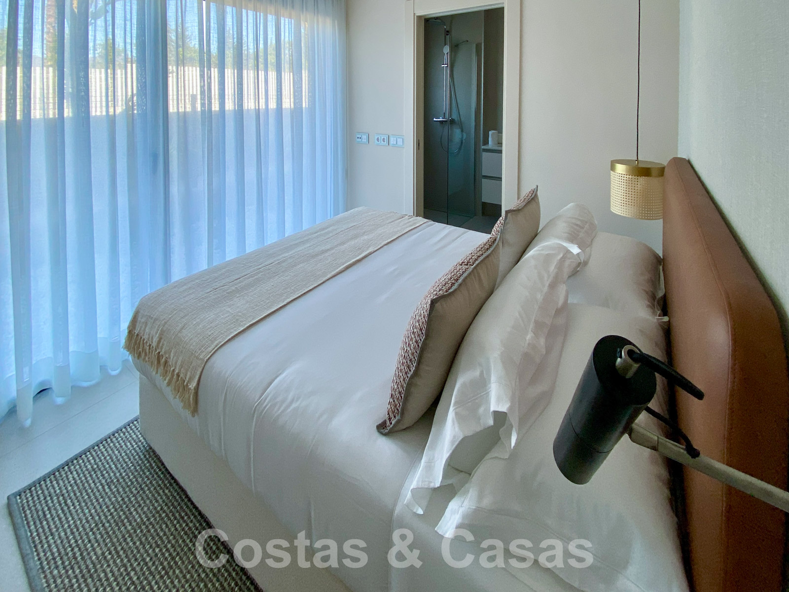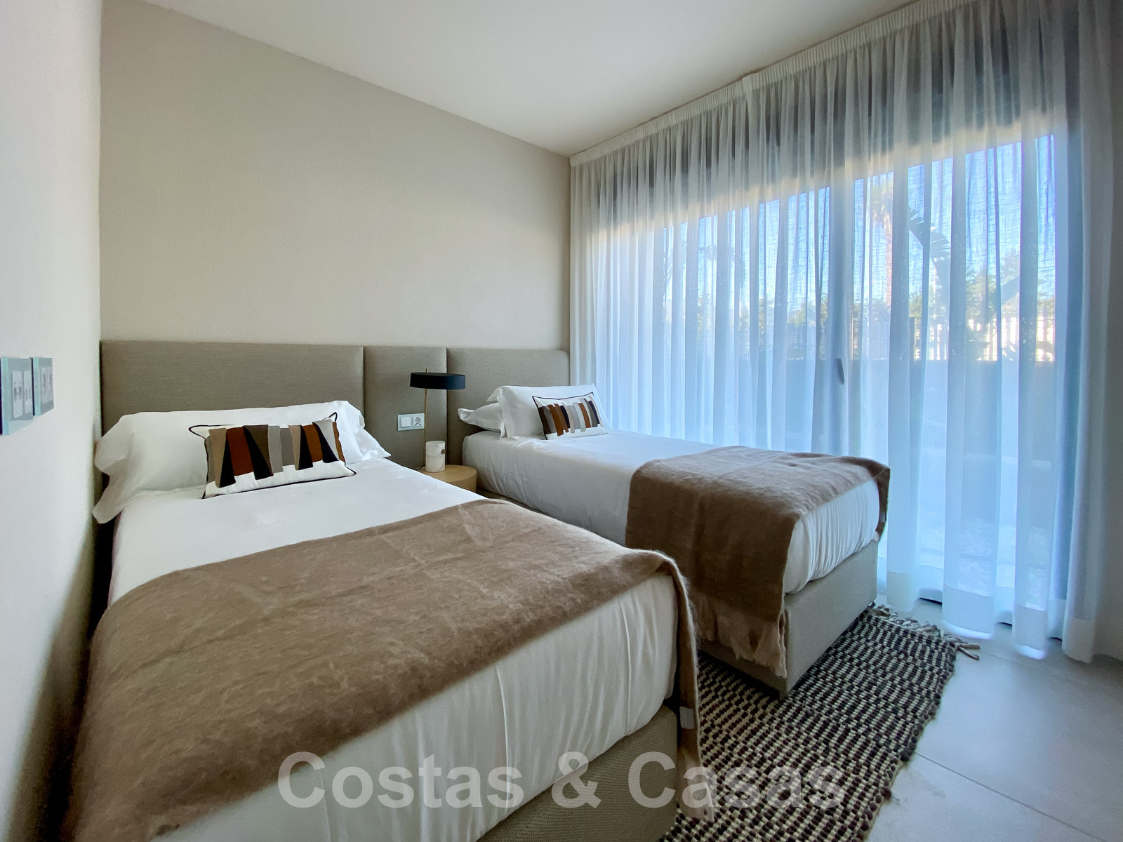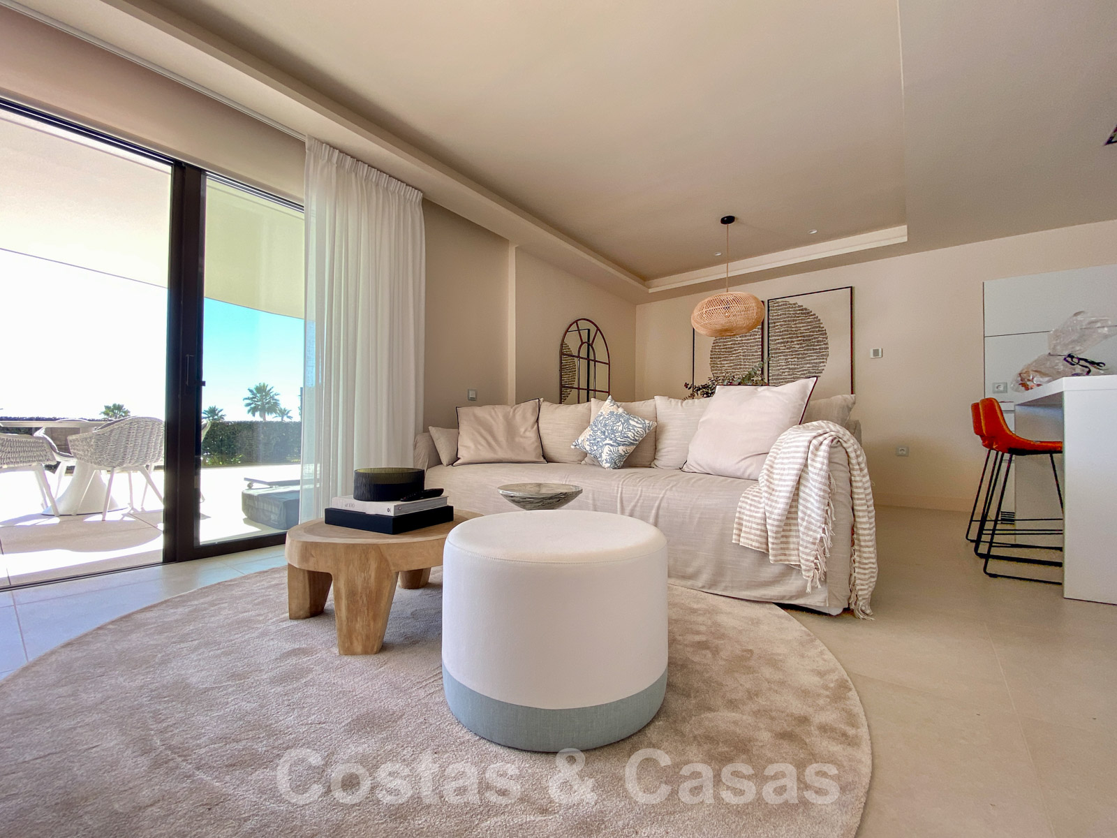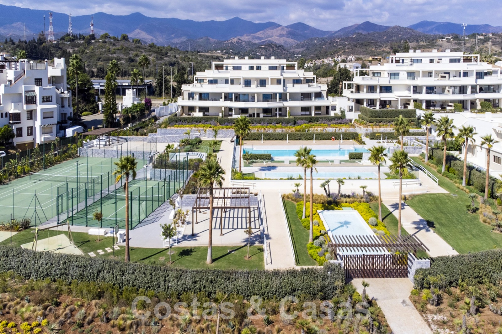 Exclusively located in a gated complex, with direct access to the beach on the New Golden Mile between Marbella and Estepona. All necessary amenities are within a few minutes' drive. There are several golf courses nearby. Just a 12-minute drive to Puerto Banus and to Estepona centre. Residents of the complex enjoy beautifully landscaped gardens, a heated swimming pool, an outdoor kitchen and barbecue pavilion, a heated Jacuzzi, a pool deck with sun beds and oversized chill-out beds. There is also a tennis court, paddle court and an outdoor gym overlooking the sea. For the little ones of the family, there is a children's pool and a playground.