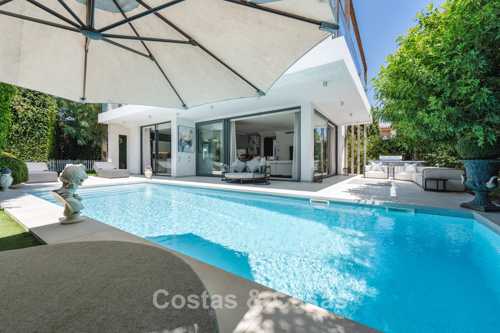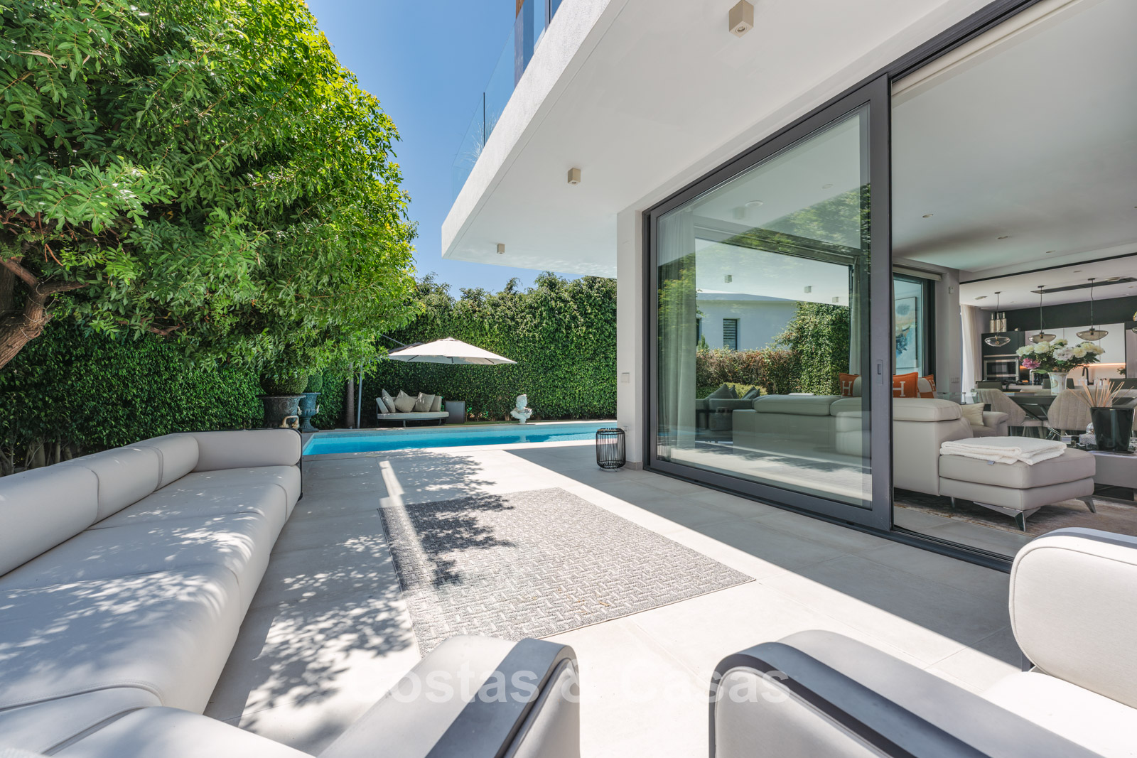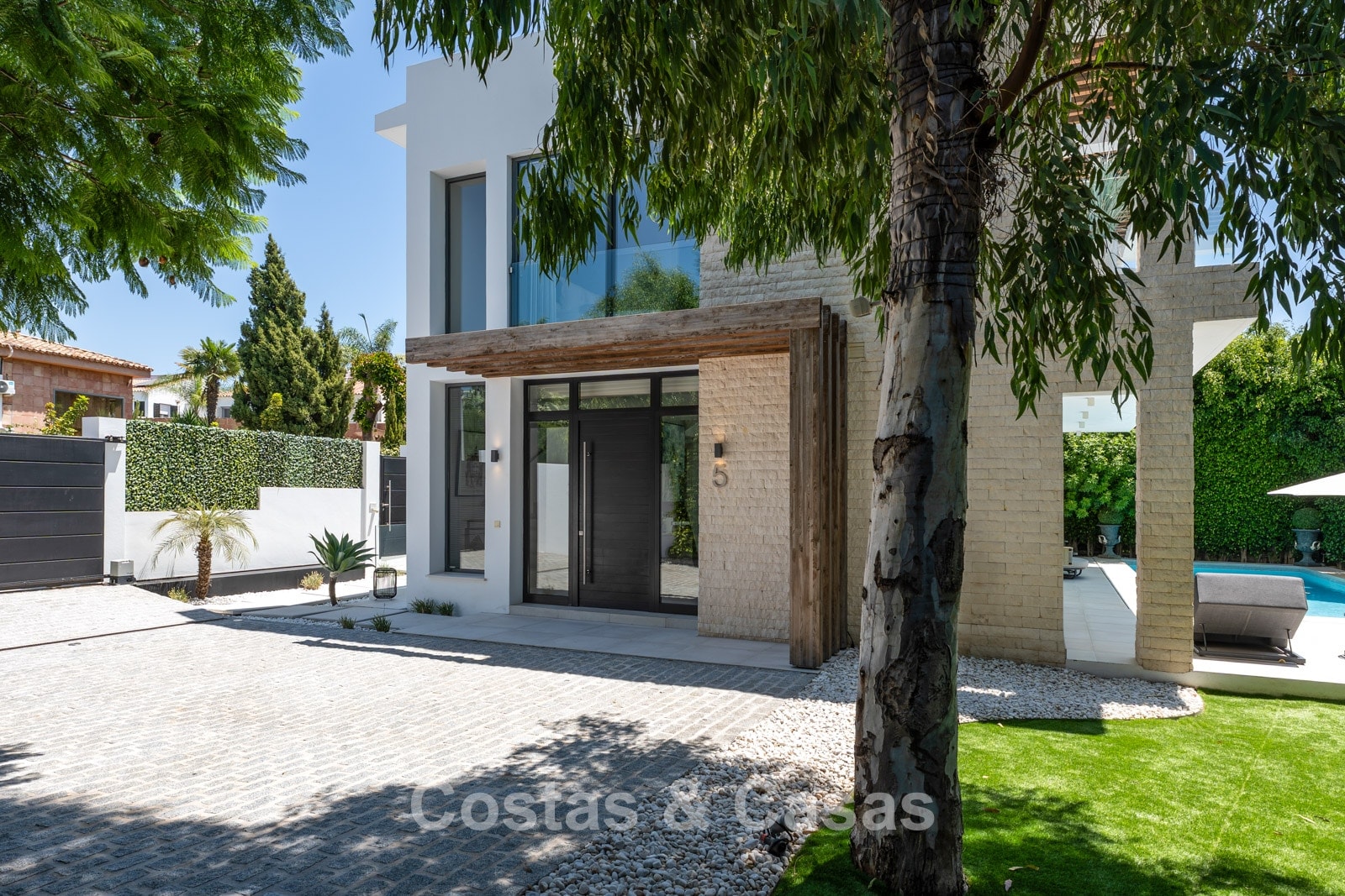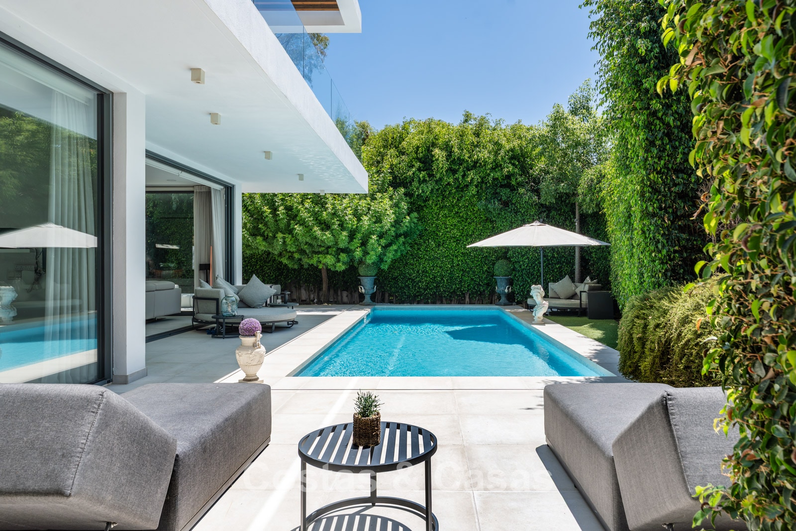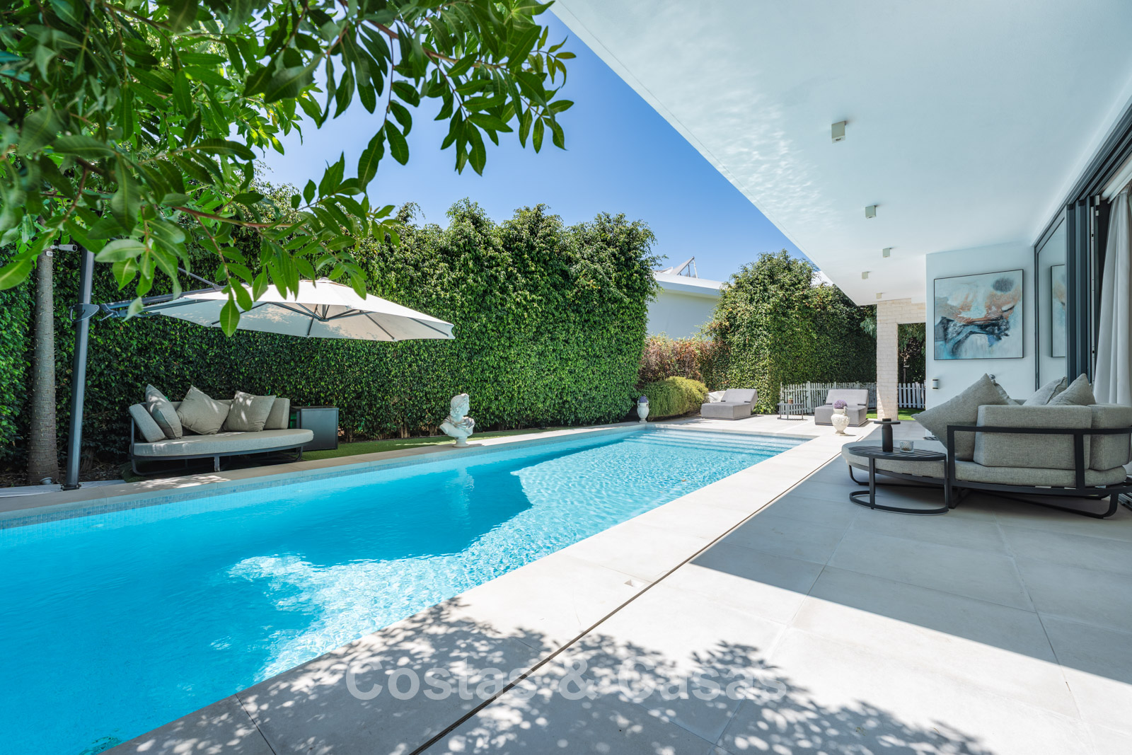 Situated on a spacious corner plot, surrounded by lush landscaping. Heated swimming pool with an adjacent sun terrace. A sunny terrace will be equipped with a chill-out area, complete with a barbecue area. Southwest-facing. Views of a 50,000m² protected nature reserve, creating a green and peaceful setting.