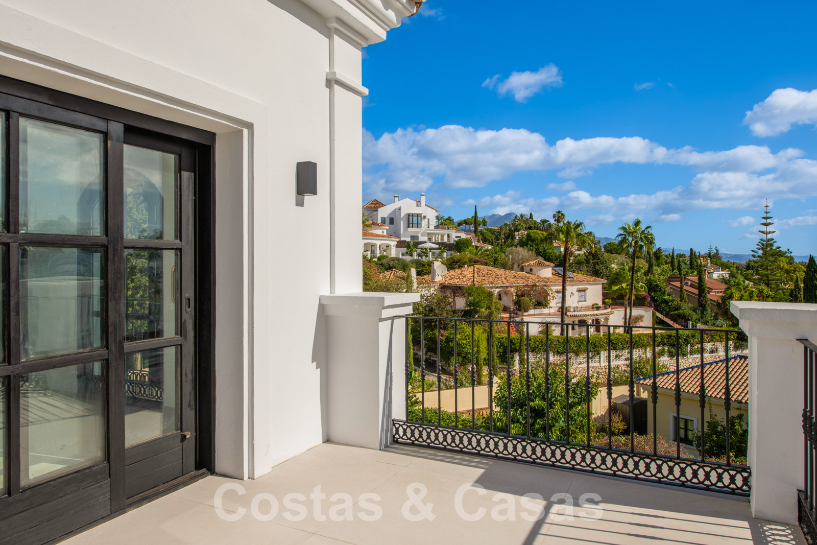 The detached villa in a classic Spanish style is in sublime condition. Built with attention to a refined finish. High sliding windows that provide bright rooms also offer access to the spacious terraces. Comfortable, open-plan layout. The spacious living room provides a fireplace. Open kitchen with a central island where you can sit. A total of 6 bedrooms, 5 bathrooms and a guest toilet. The elegant master bedroom en-suite has a spacious walk-in wardrobe. Office space. Private parking for several cars.