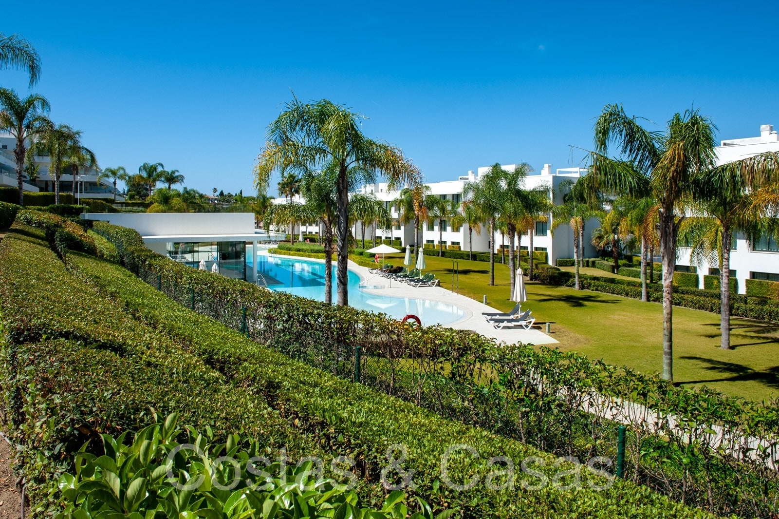 Design apartments on a fenced and secured domain of more than 9 hectares adjacent to the golf course. Recently built trendsetting project. The complex is characterized by its low building density, large open spaces with gardens, beautiful swimming pools, sports facilities, walking paths and a playground. The complex consists of 3 independent phases. Each phase is fenced and has its own gardens and swimming pool.