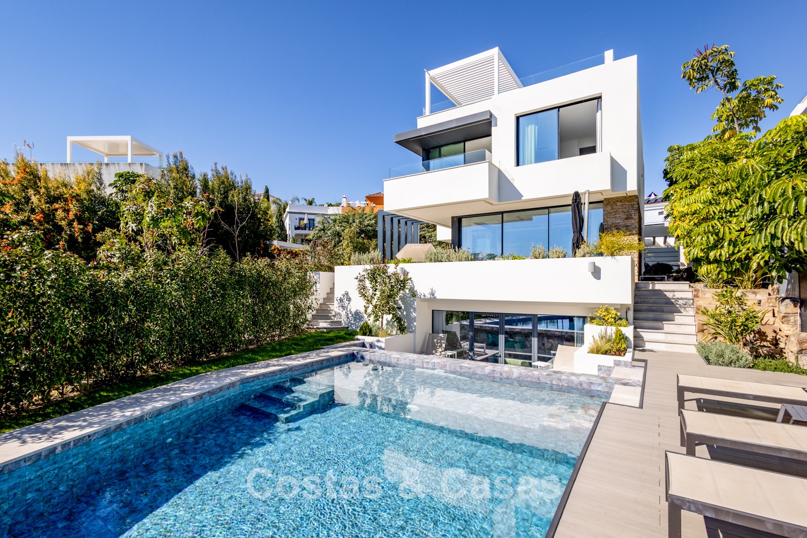 1.995.000 €2 prestigious new build villas for sale within walking distance of a stunning golf clubhouse on the New Golden Mile, between Marbella and Estepona