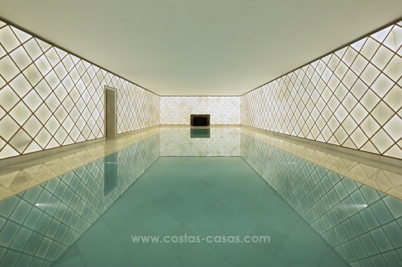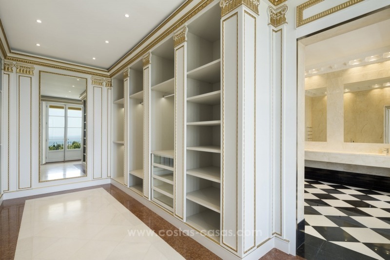 The first floor comprises luxuriously fitted his and her master bedroom suites, featuring private living rooms, marble fireplaces, built-in dressing rooms and bathrooms, plus a further 3 guest suites, with living rooms, dressing rooms and bathrooms. All suites enjoy a magnificent terrace with stunning panoramic sea views, overlooking the African coastline and Gibraltar.