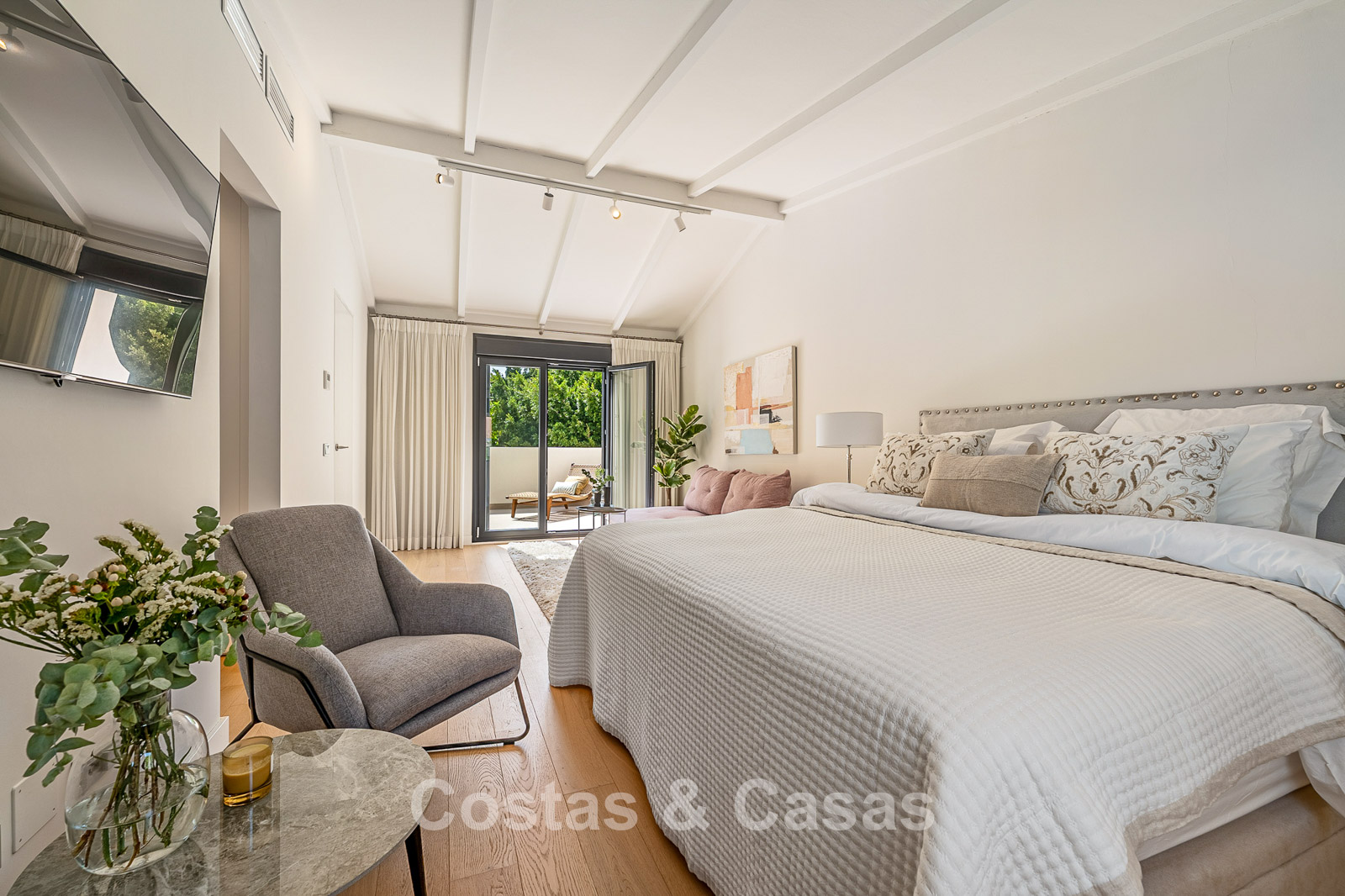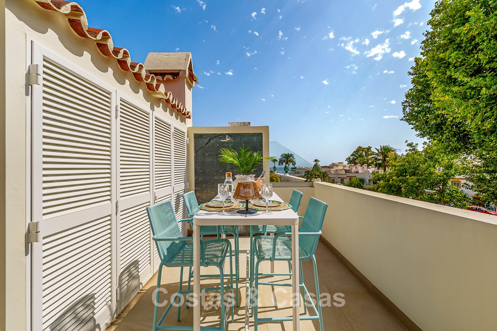 Located in one of Marbella's most sought-after areas, in a gated community known for its low-rise buildings and typical Andalusian architecture. Just a stone's throw from the beach, residents enjoy direct access to the promenade and the Mediterranean Sea. The well-known hotspots of Puente Romano and Marbella Club Hotel are nearby, with luxury restaurants, beach clubs, and chic bars within easy reach. The vibrant center of Marbella is a 5-minute drive away, while Puerto Banús is approximately 7 minutes away. Residents enjoy exclusive amenities such as two communal swimming pools, a tennis court, and a paddle court, surrounded by beautifully maintained gardens.