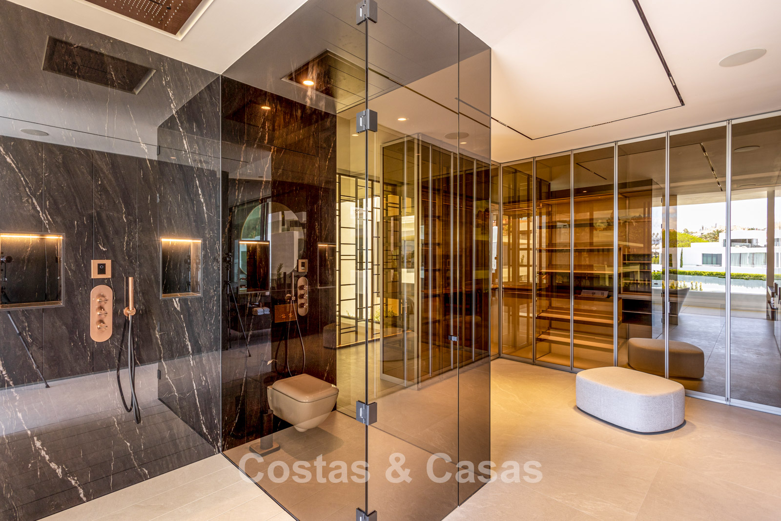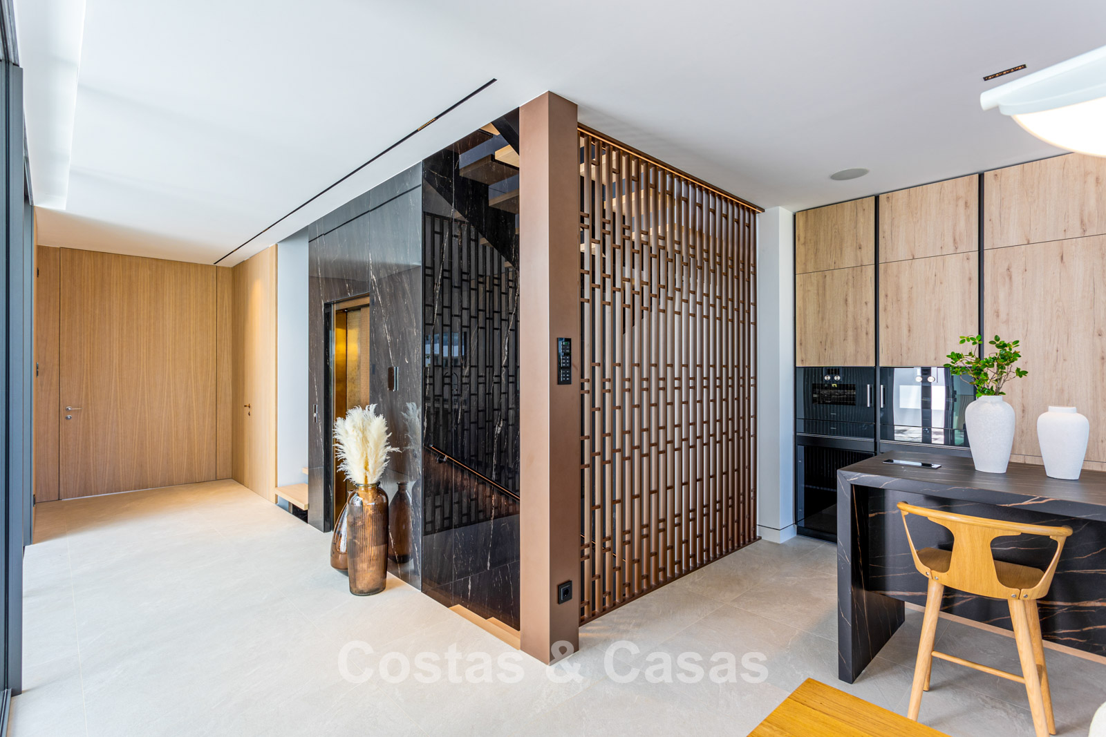 Other features: Elevator to all floors. Air conditioning for cooling and heating. Underfloor heating throughout. Fireplace. Double glazing. Solid oak doors. Advanced home automation system with a touchscreen. Sonos sound system. Custom-built wardrobes. Glass balustrades around the terrace. LED lighting. Biometric fingerprint lock. Recently fully furnished.