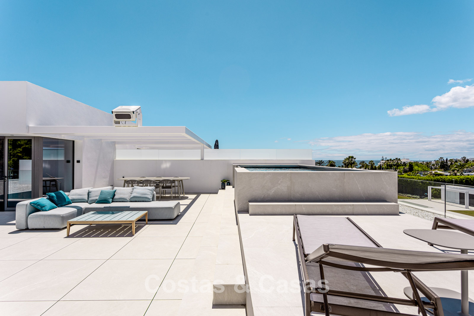 Roof terrace with private pool, outdoor cinema, and outdoor kitchen.