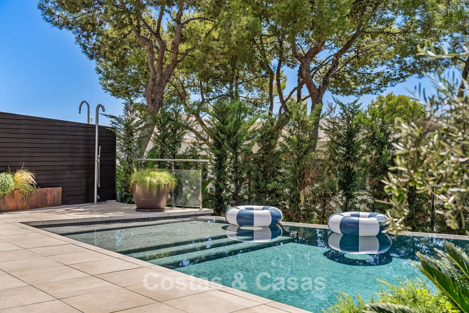 Other features: Private elevator. Air conditioning for cooling and heating. Fireplace. Double glazing. Built-in wardrobes. Home automation system. Glass railings. LED lighting inside and outside. Outdoor shower.