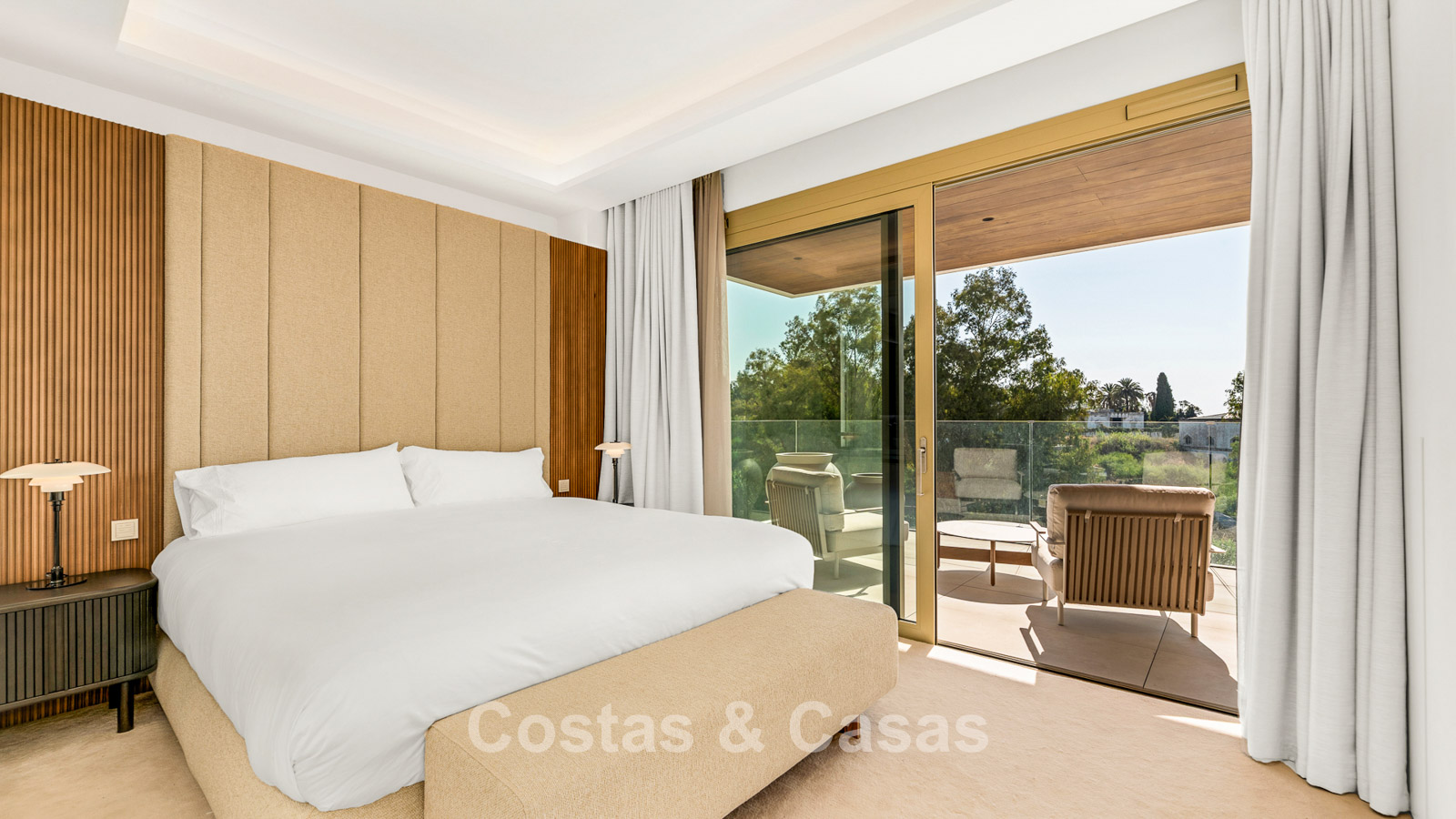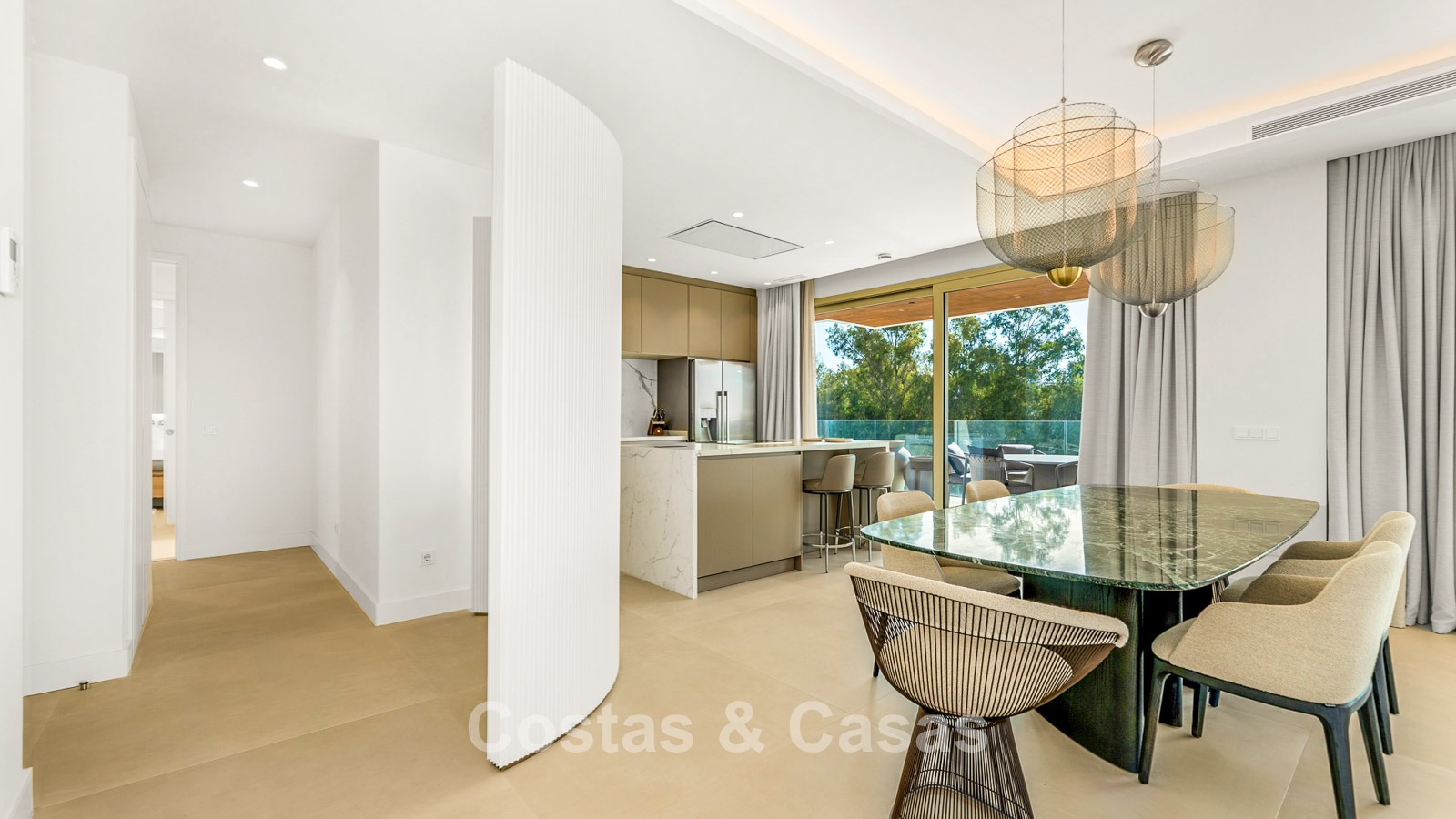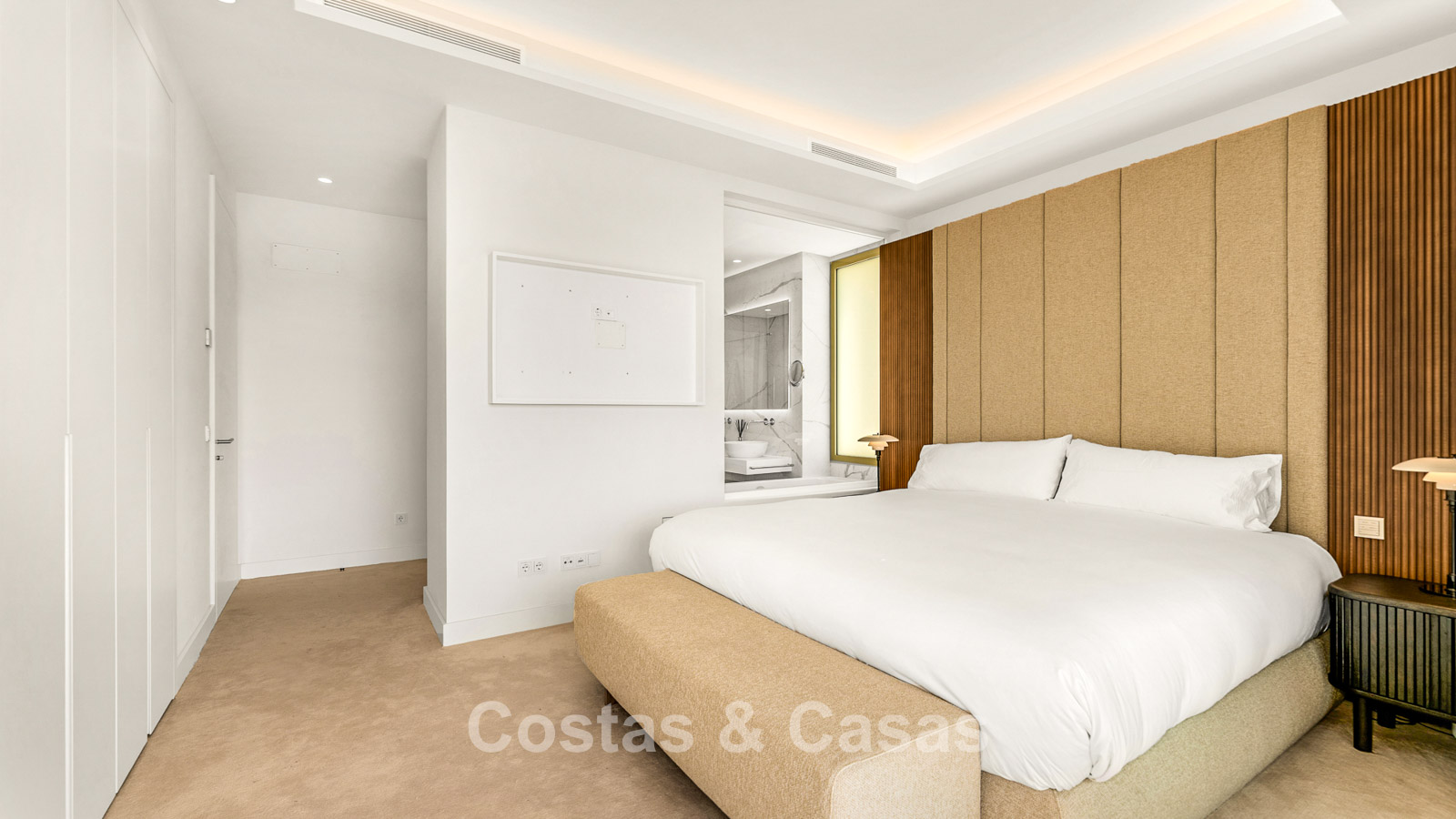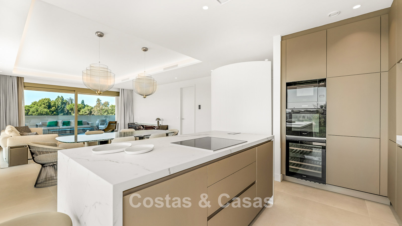 A refined luxury apartment within an exclusive and state-of-the-art complex, characterised by ultra-modern architecture and the highest standards of comfort and elegance. Set within a secure gated community surrounded by landscaped gardens, the property is finished with high-quality materials and meticulous attention to detail. South-facing, the apartment enjoys elegant panoramic views of the sea, La Concha mountain, and the coastline from its expansive wrap-around terrace. The impressive terrace offers multiple lounge and dining areas, complete with a private plunge pool. Large sliding windows with gold-toned frames flood the interior with natural light, creating a bright, open, and sophisticated atmosphere. The living space is spacious and open-plan, seamlessly combining the lounge and dining areas. The modern kitchen is fully fitted with an island and high-end Miele appliances. There are three generously sized bedrooms, each with its own en-suite bathroom. The property is accessed via a private lift that opens directly into the residence. Includes a technical room and two underground parking spaces.