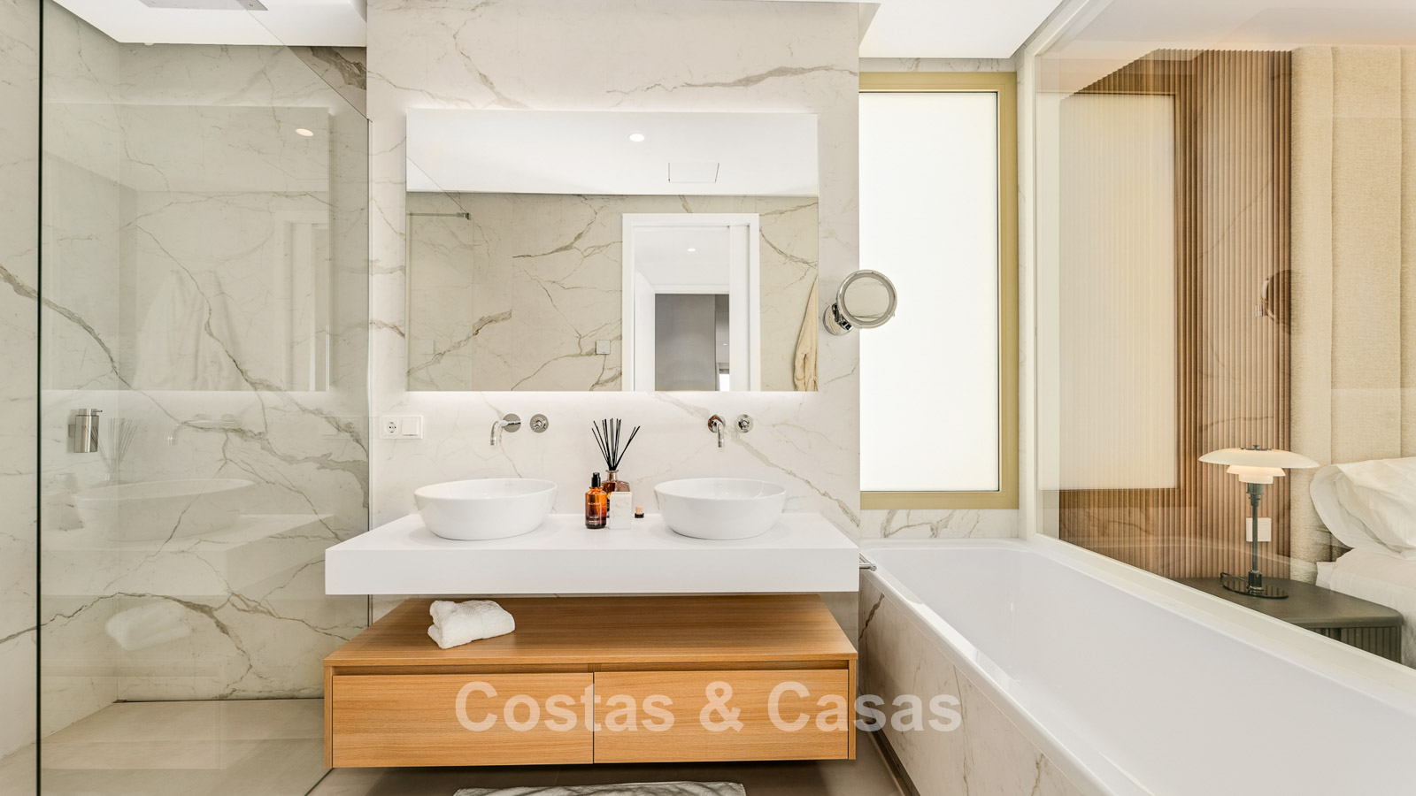 Situated in an exclusive and contemporary gated residential complex on Marbella’s prestigious Golden Mile. Just 300 metres from the beach and approximately 1 kilometre from the renowned marina of Puerto Banús. The luxurious five-star resorts Puente Romano and Marbella Club Hotel are within walking distance or just a few minutes’ drive away. Residents enjoy over 5,000 m² of beautifully landscaped gardens, a large communal outdoor swimming pool, and extensive wellness facilities including a heated indoor pool, spa, sauna, Turkish bath, and a fully equipped gym.