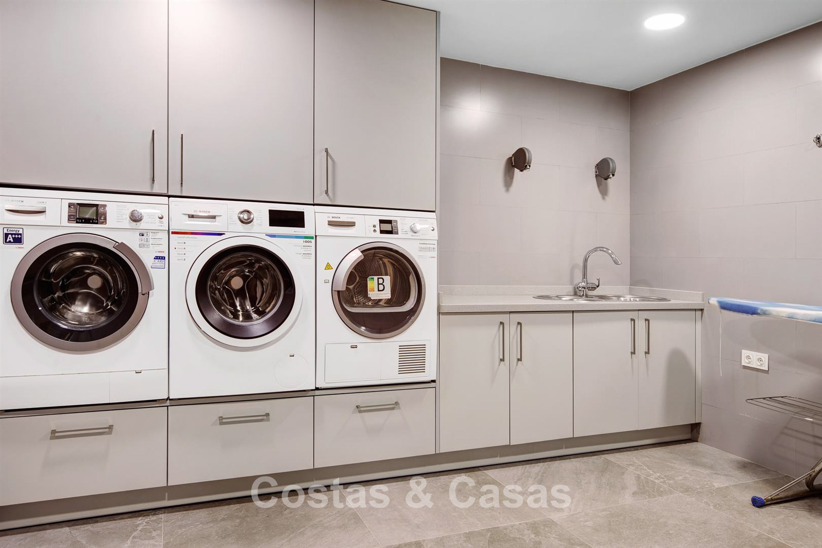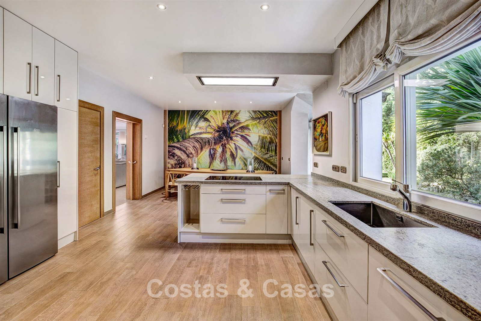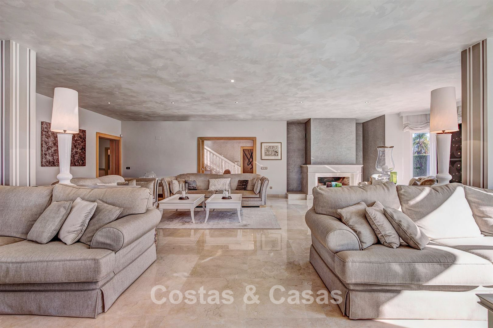Detached villa, built in a traditional Spanish architectural style. The materials and finishes used are of high quality. Upon entering, you enter the double-height entrance hall that opens onto the spacious living area. Large living room with several seating areas. The tall windows open onto the outdoor area and provide plenty of natural light. Separate kitchen, fully equipped with top-of-the-line appliances and a dining table. 6 bedrooms, each with its own bathroom. Laundry room fully equipped with Bosch appliances. Office space. Second TV lounge on the lower floor. Marble floors. Integrated garage for 2 cars. Ample private parking on the property.