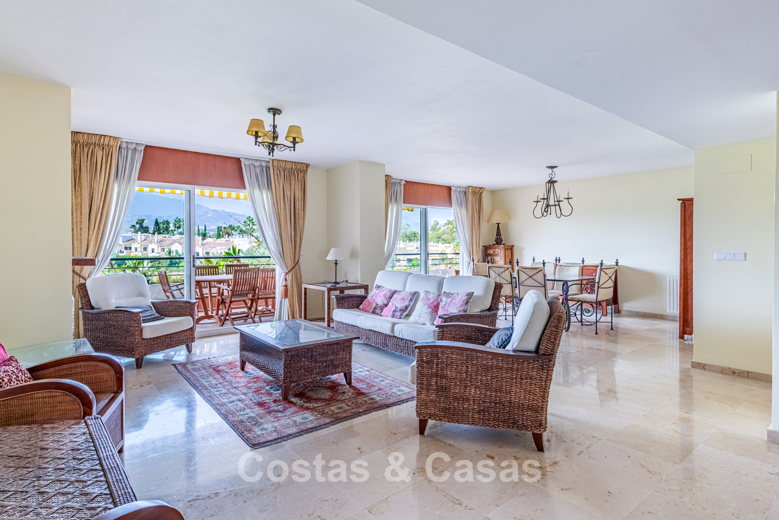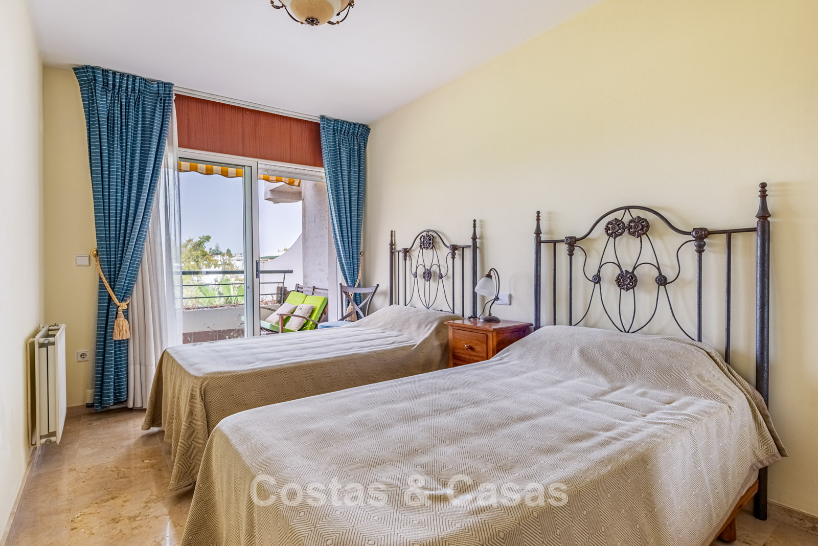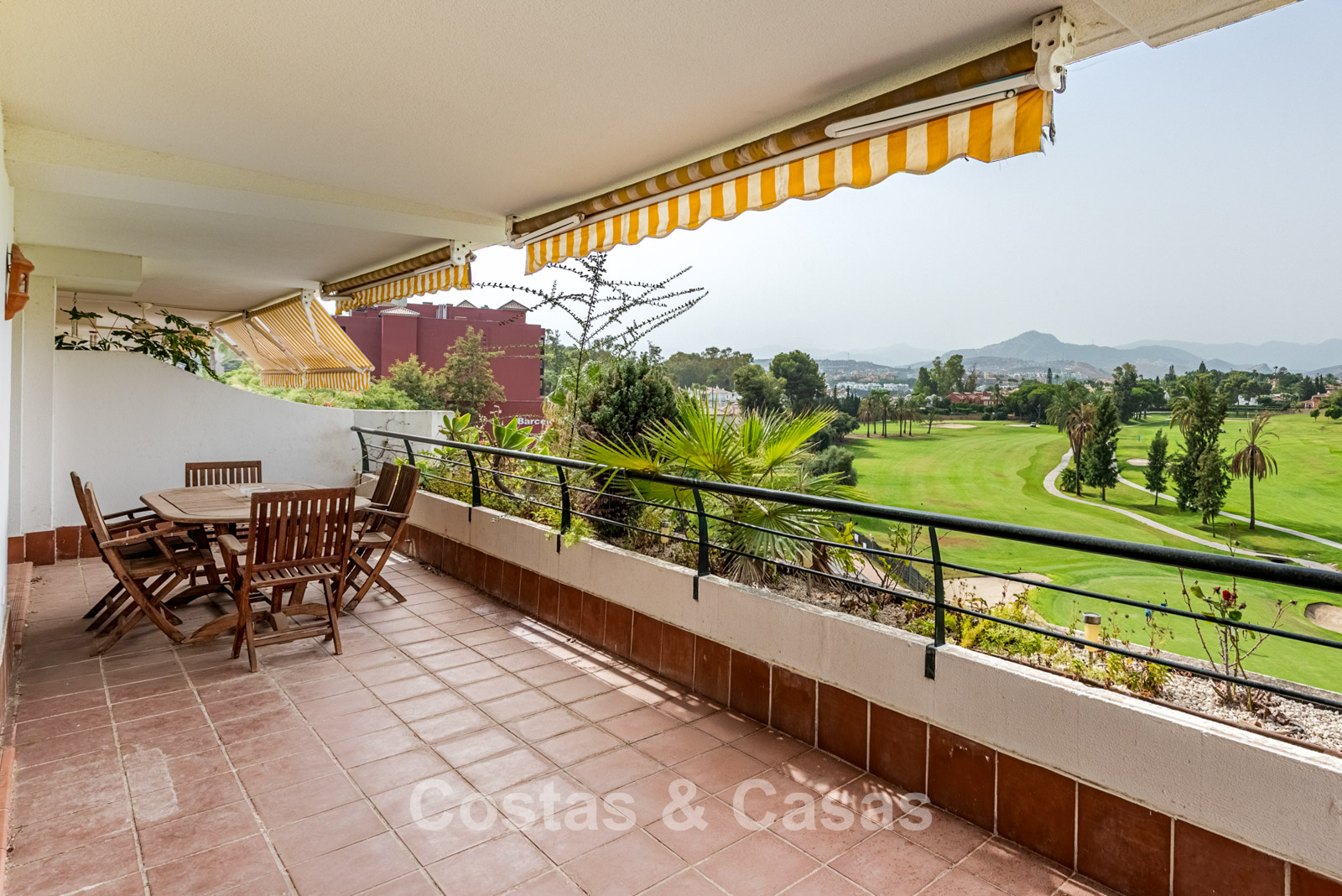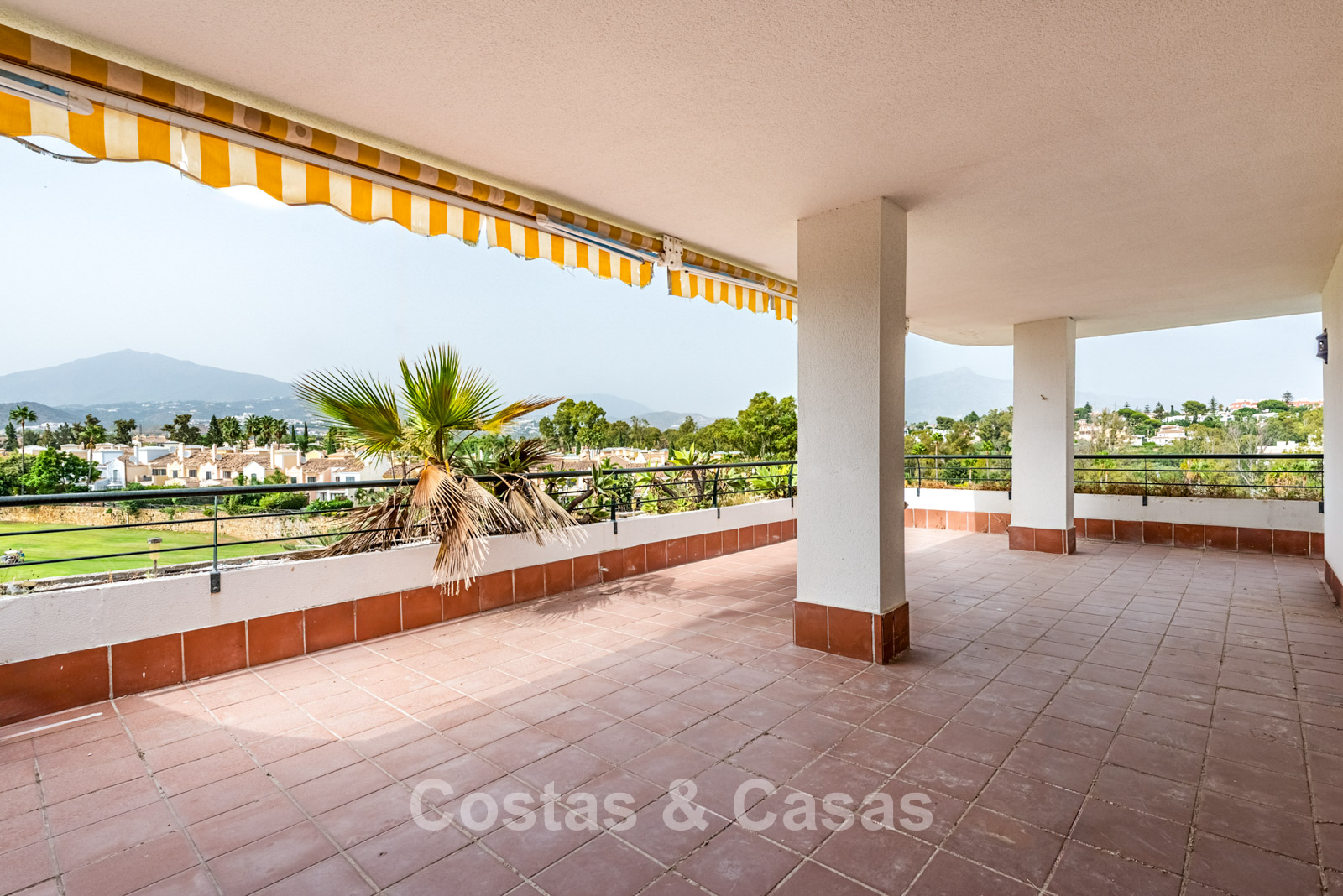 Spacious duplex penthouse on the 4th floor. This generous penthouse offers significant renovation potential and forms an excellent base for a high-quality update. West-facing. Beautiful views over the Guadalmina golf courses and the surrounding mountains. The bright and spacious living room opens onto a covered terrace, with the option to create an open-plan kitchen for a modern living experience. The separate kitchen can be converted into a 5th bedroom or an additional bathroom. Thanks to the two covered terraces, you can enjoy sheltered and atmospheric outdoor spaces throughout the year. 4 bedrooms, 4 bathrooms. Marble floors. Underground parking space included.