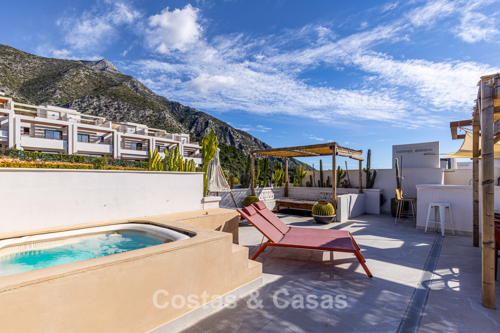 Discover a sanctuary of peace and serenity in this magnificent penthouse, nestled within a secure, gated community in Istán, at the foothills of the UNESCO-protected Sierra de las Nieves.