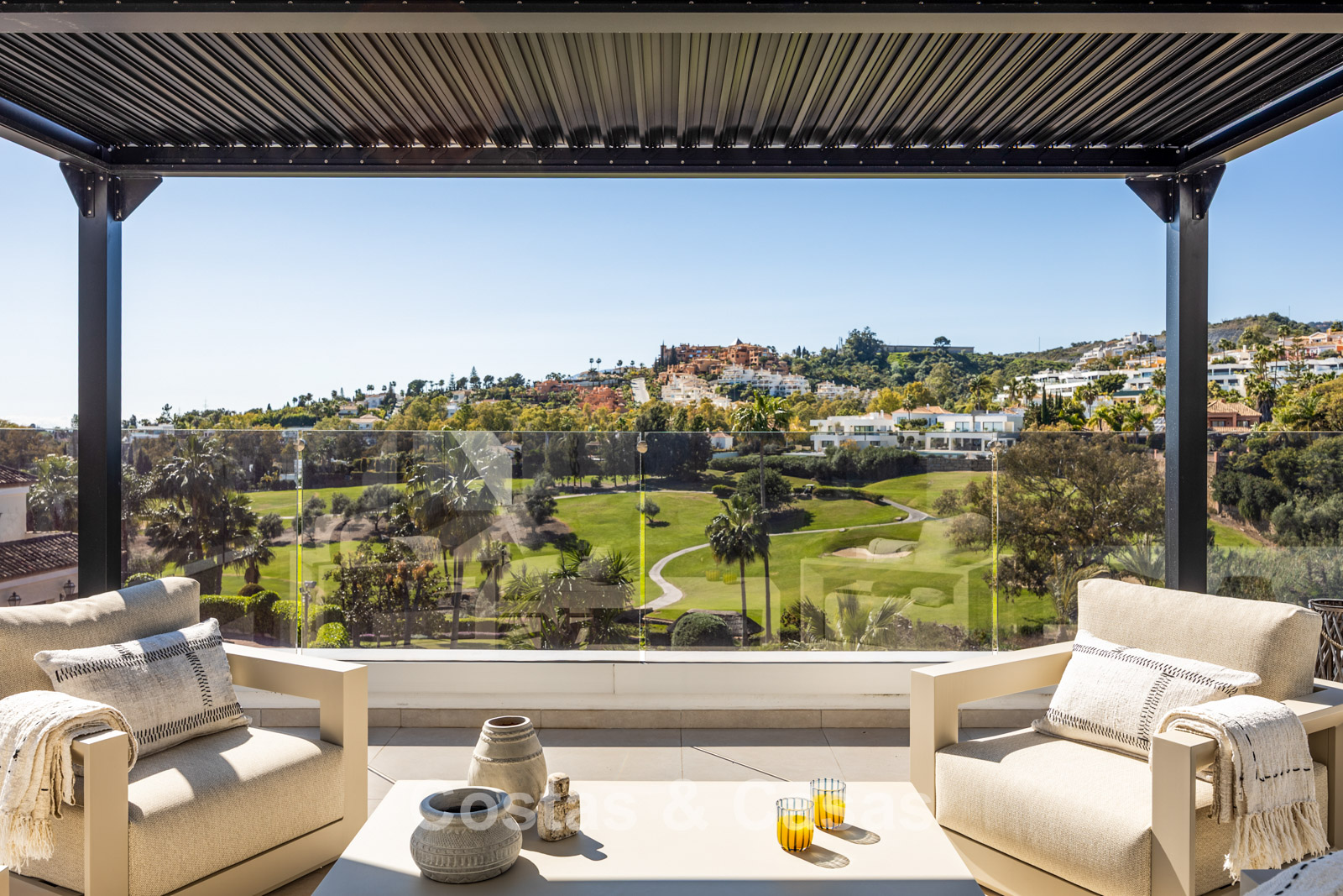 Situated just a few meters from the golf course in the prestigious Golf Valley of Nueva Andalucía, in an attractive residential area with exclusive villas. Just minutes away from some of the most renowned golf clubs in the area, including Los Naranjos, Aloha, Las Brisas and La Quinta. San Pedro and Marbella town centre are easily accessible, just 5 and 10 minutes by car respectively. Nearby, you will find a wide range of amenities such as restaurants, tapas bars, supermarkets, international schools, tennis clubs and fitness centres. Puerto Banús and the beach are less than 2 km away, allowing easy cycling access to the Golden Mile, known for its luxury beach clubs and five-star hotels.