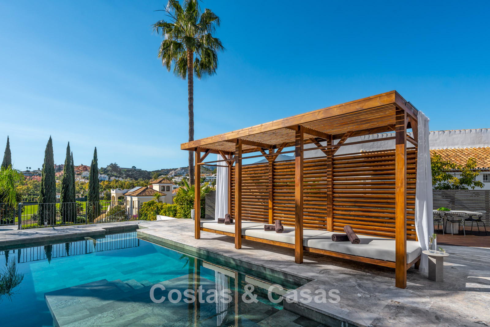 Situated in a privileged residential urbanisation in the renowned golf valley of Nueva Andalucia, surrounded by internationally recognised golf courses. Just a few minutes’ drive from the luxury marina of Puerto Banus. In the immediate vicinity, you will find a wide range of amenities including international schools, gourmet restaurants, and exclusive boutiques.