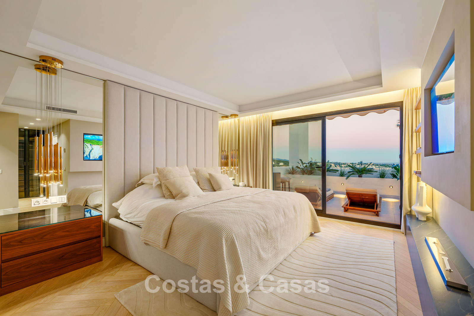 Additional features: Ultra UV triple glazing Air conditioning Underfloor heating in bathrooms Custom-made fitted wardrobes Herringbone oak wooden floors LED lighting Fully furnished