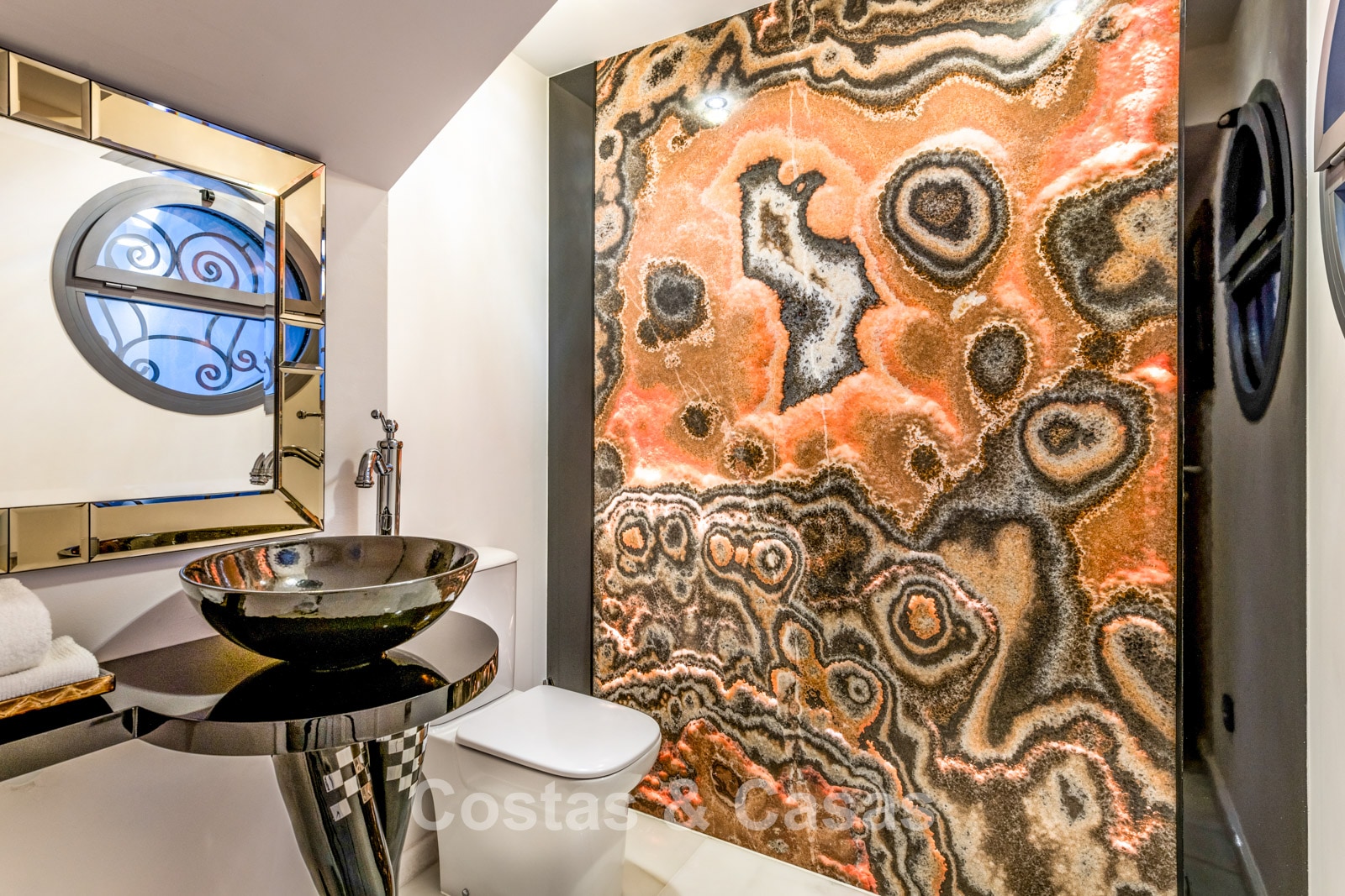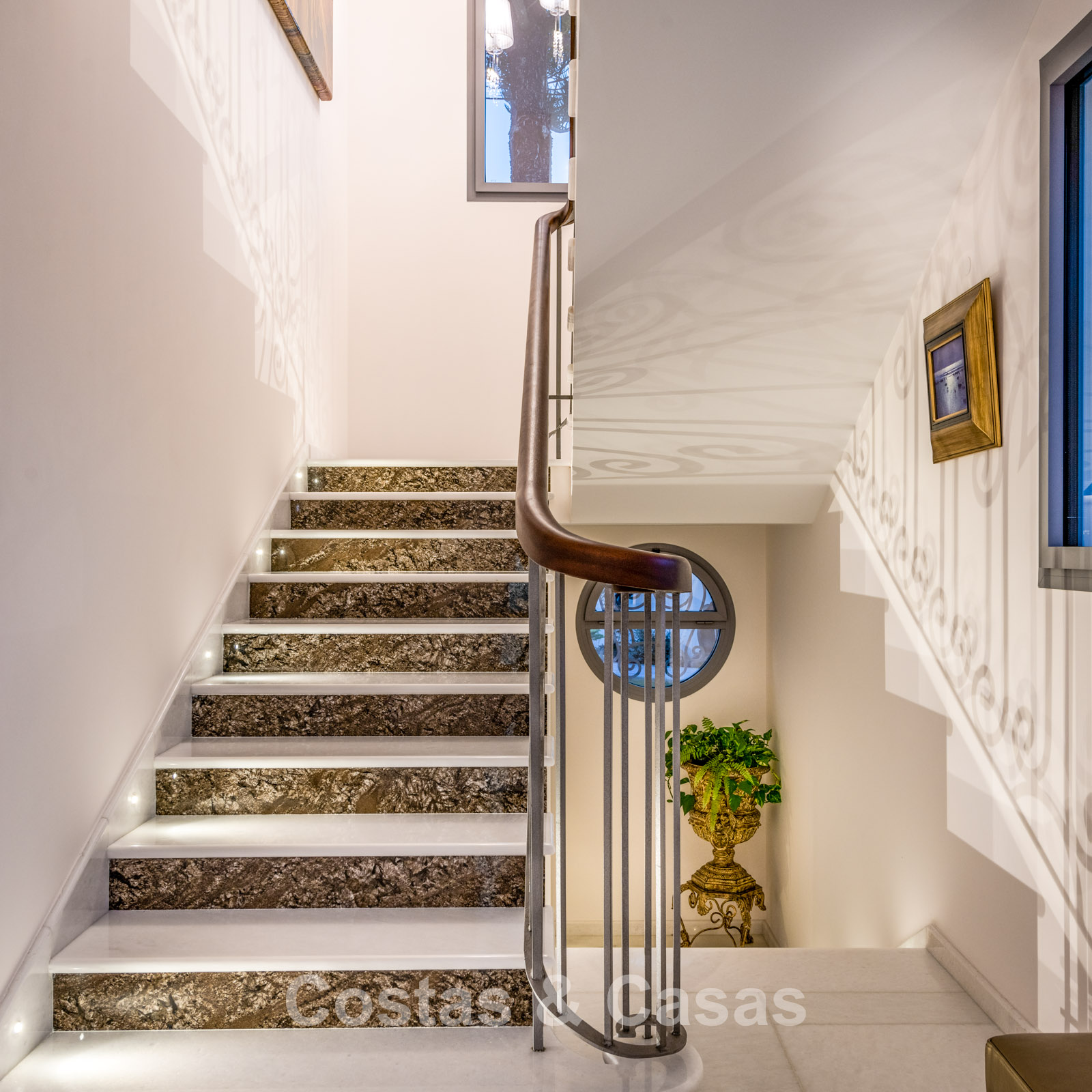 Ideally located in the heart of Nueva Andalucía’s prestigious Golf Valley, surrounded by some of the most iconic golf courses, including Los Naranjos, Las Brisas and Aloha Golf Club. The villa offers direct access to Los Naranjos Golf, with carefully designed pathways wide enough for golf buggy use. Just a few minutes’ drive from a wide selection of cafés, bars, restaurants, supermarkets and all essential amenities. Puerto Banús, with its world-famous marina, atmospheric beach clubs, designer boutiques and vibrant day and nightlife, is only a short drive away. An international school is also located just a few minutes away by car.