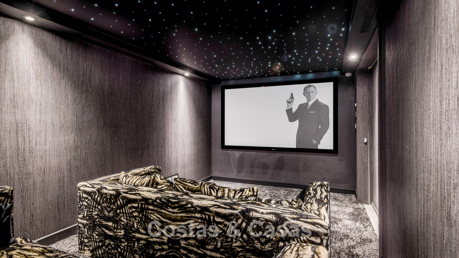 Detached villa in a classic Mediterranean architectural style. Designed with clean lines and a well-balanced sense of space. Spacious living area with cosy TV lounge. Separate formal dining room. Independent kitchen, fully equipped with high-end professional appliances and a seating island. Adjacent utility/laundry room. 6 bedrooms, 6 bathrooms and 2 guest toilets. The master bedroom features a luxuriously finished en-suite bathroom, dressing room and access to a private terrace. Office space. Luxury loft-style home cinema with starry ceiling. Wine cellar/storage room. Technical room. Parking space for multiple vehicles.