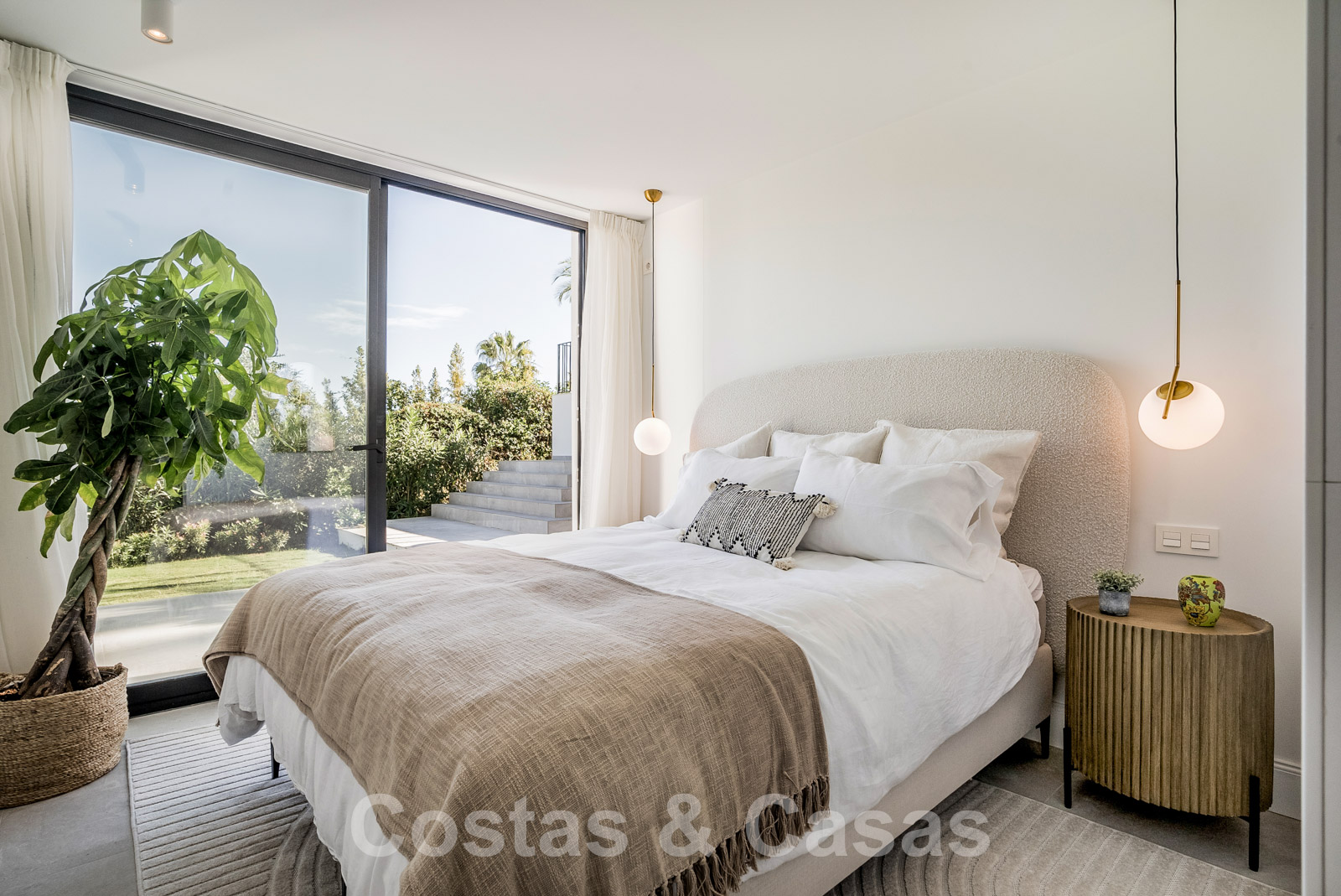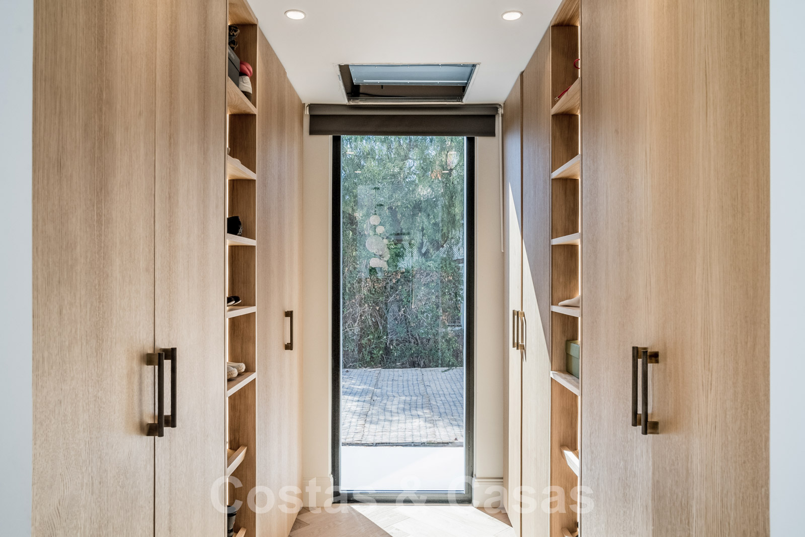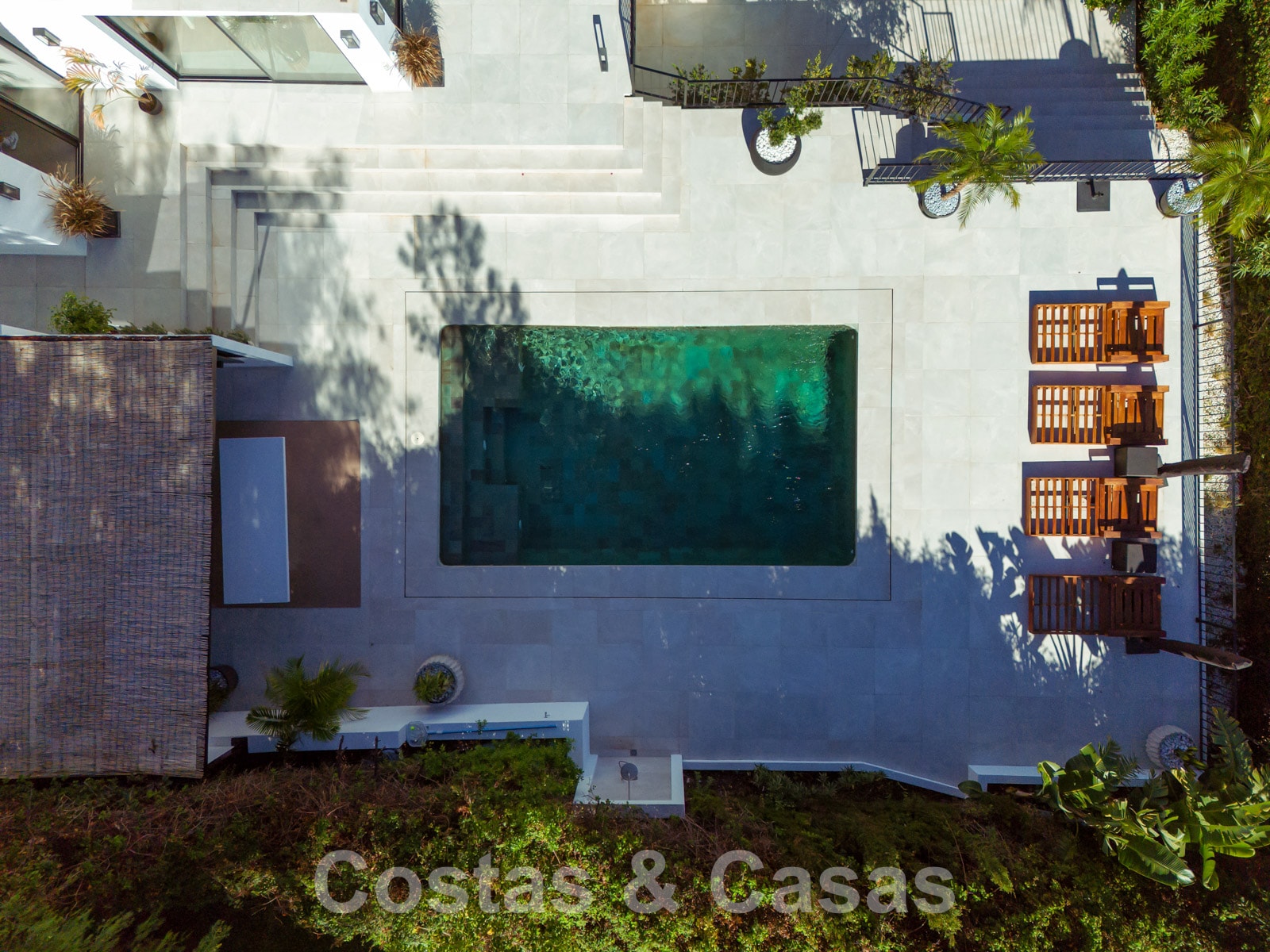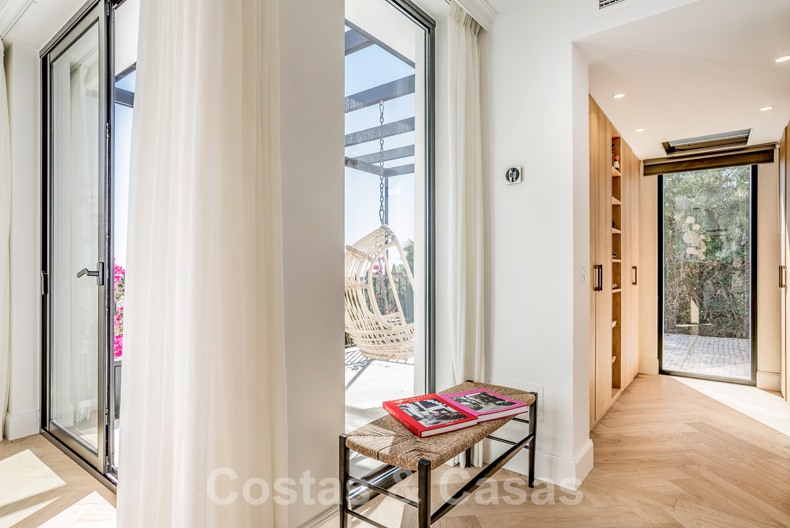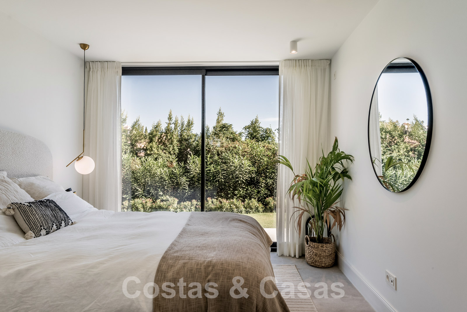 Detached villa with modern architecture combined with Andalusian touches such as terracotta roof tiles, adding charm and character. Using high-quality materials. Timeless, elegant interior with sophisticated neutral tones. Airy living space with a TV lounge and dining area. Open kitchen, fully equipped with Siemens appliances and featuring a kitchen island. A total of 5 bedrooms, 4 bathrooms. The master suite has a spacious, wooden walk-in wardrobe. 2nd TV lounge. Wine bodega. Laundry room. Ceramic tiled floors. Fully furnished guesthouse with access to the garden. Indoor garage for 4 cars.