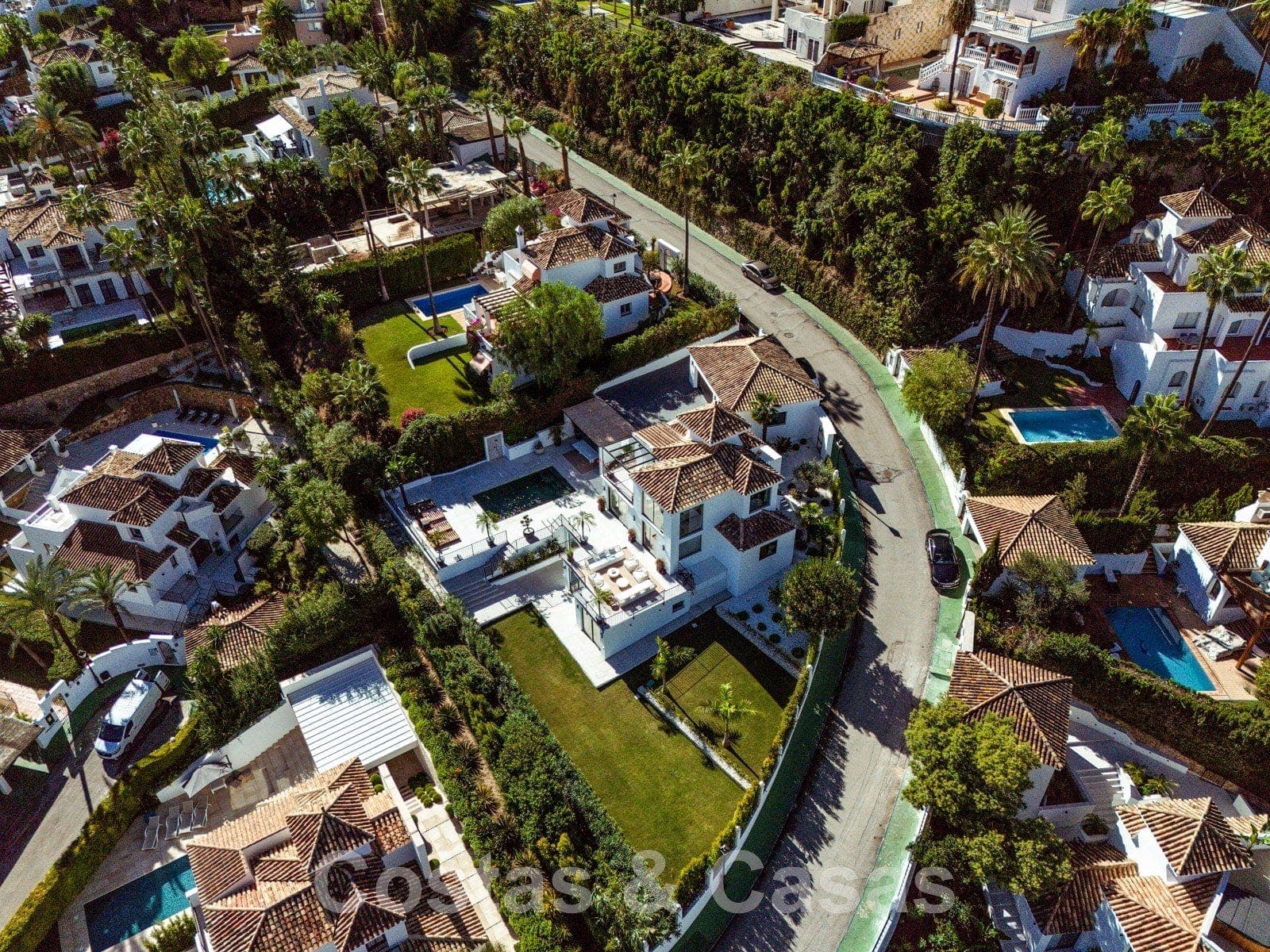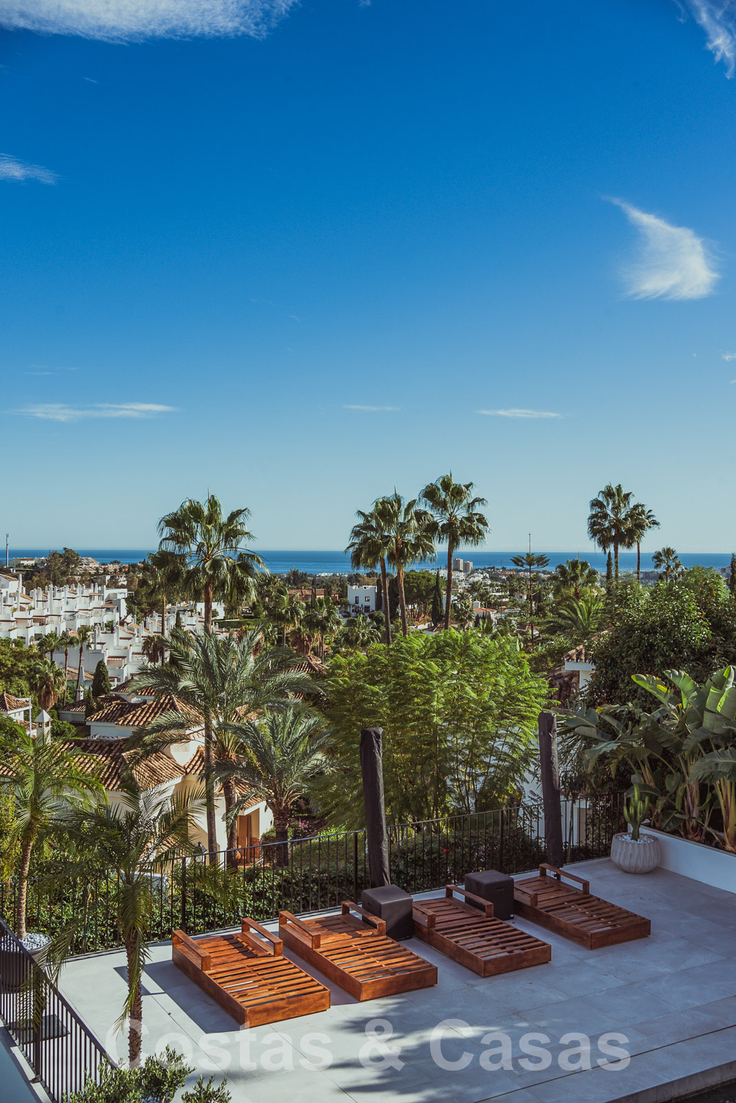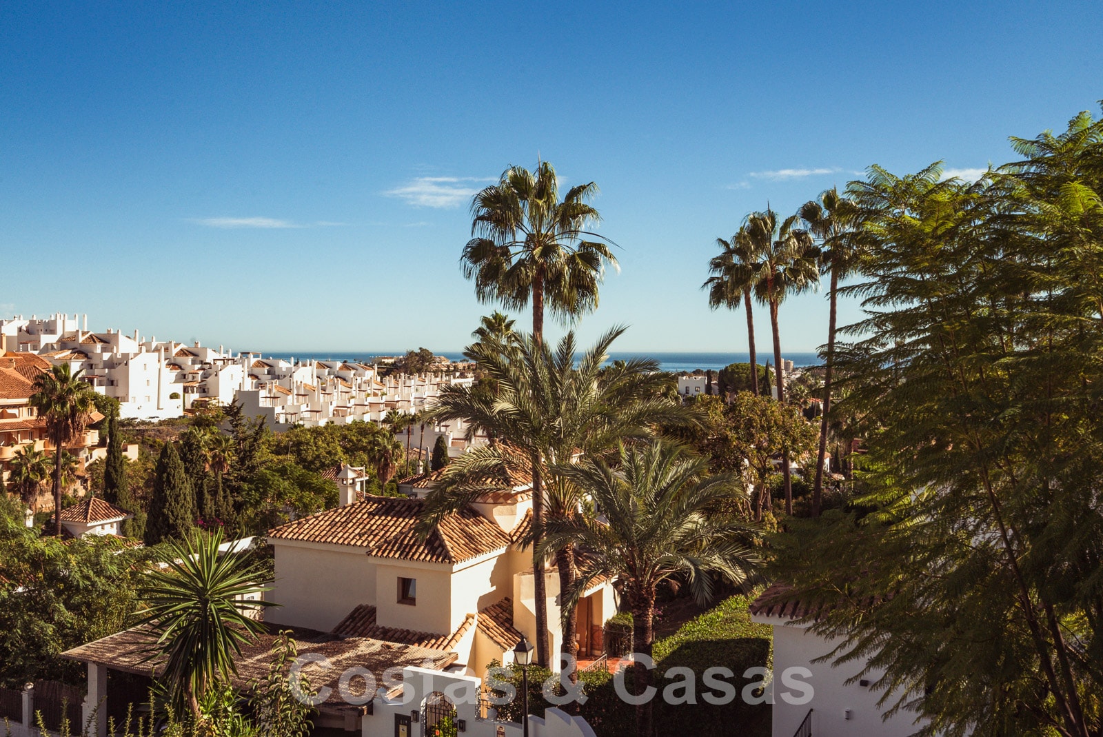Attractive luxury villa with partial sea views for sale in gated urbanisation in Nueva Andalucia, Marbella