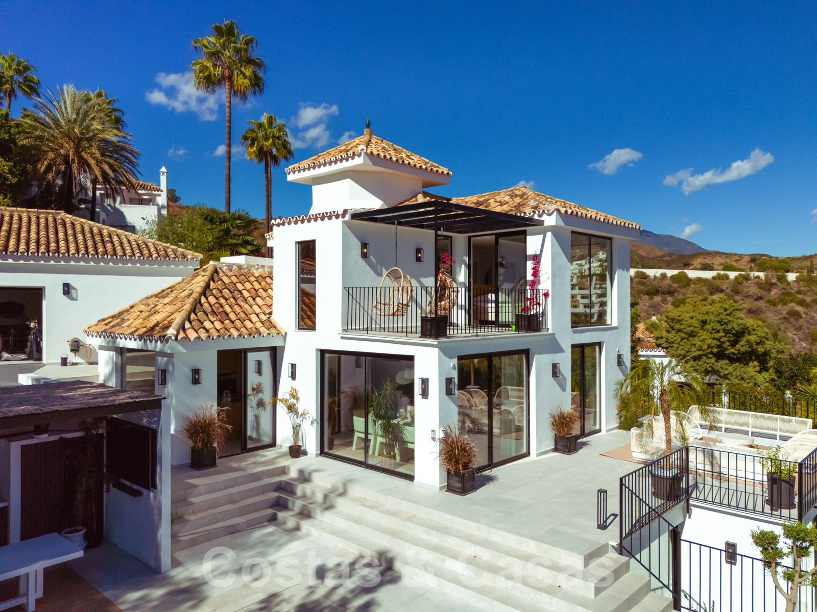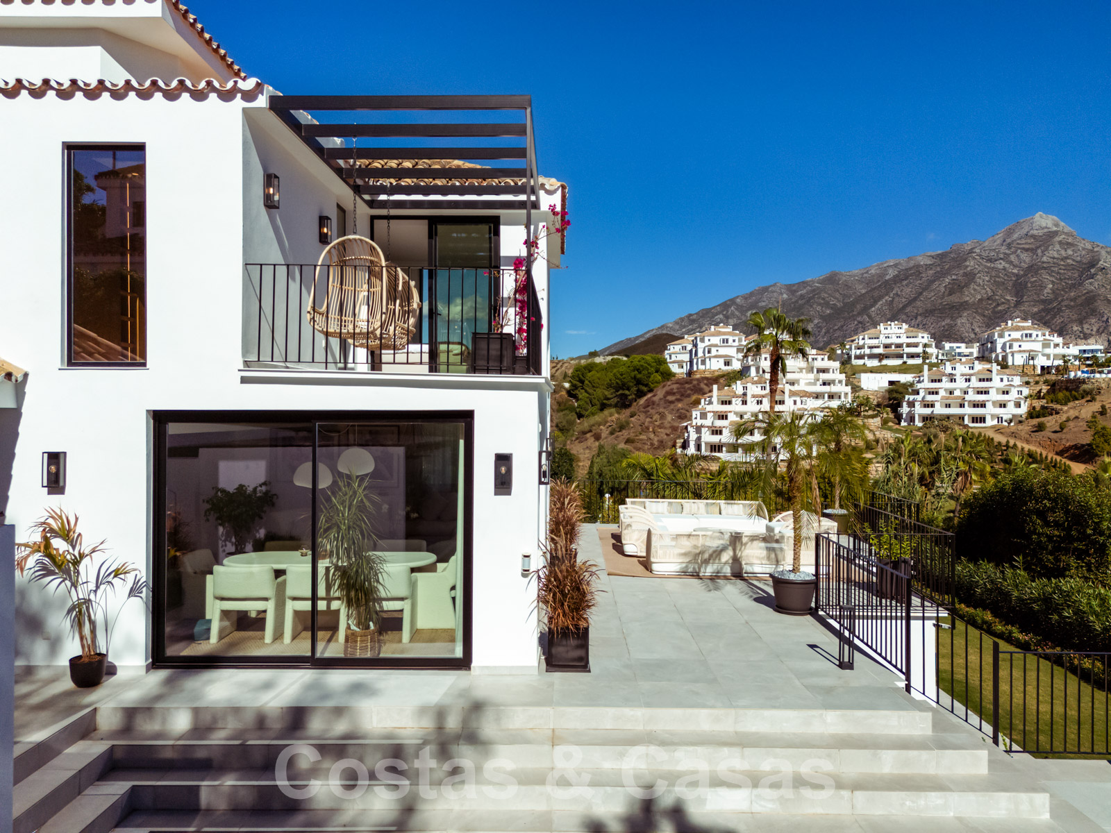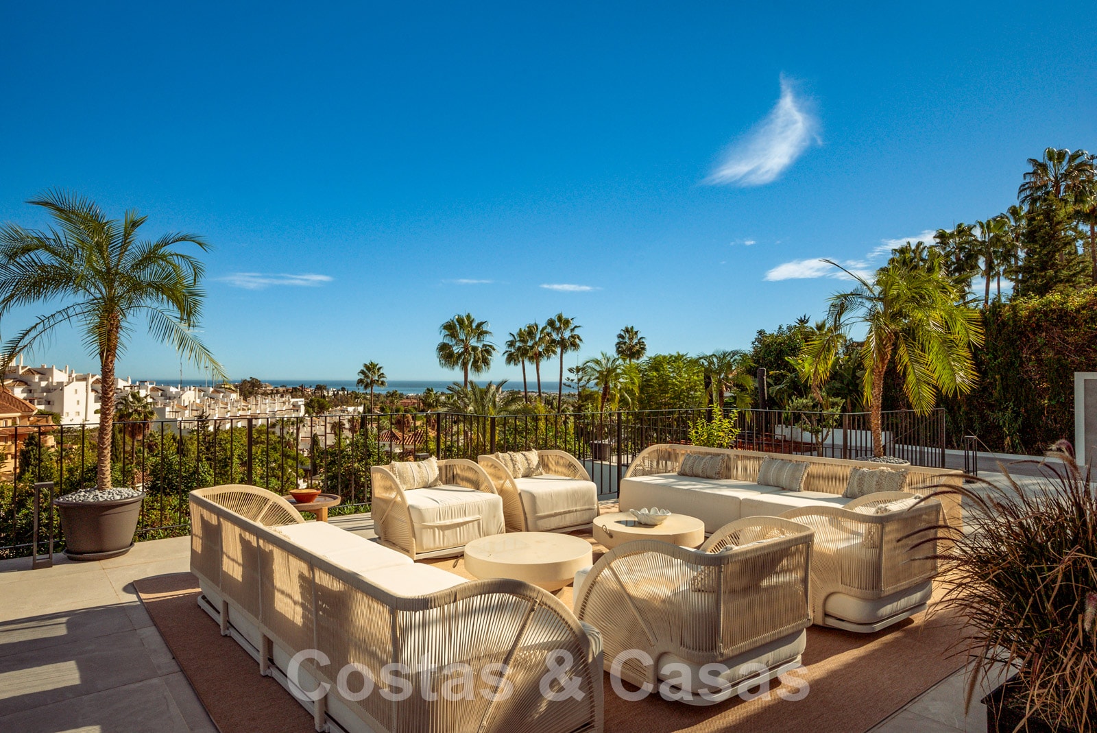 Attractive luxury villa with partial sea views for sale in gated urbanisation in Nueva Andalucia, Marbella