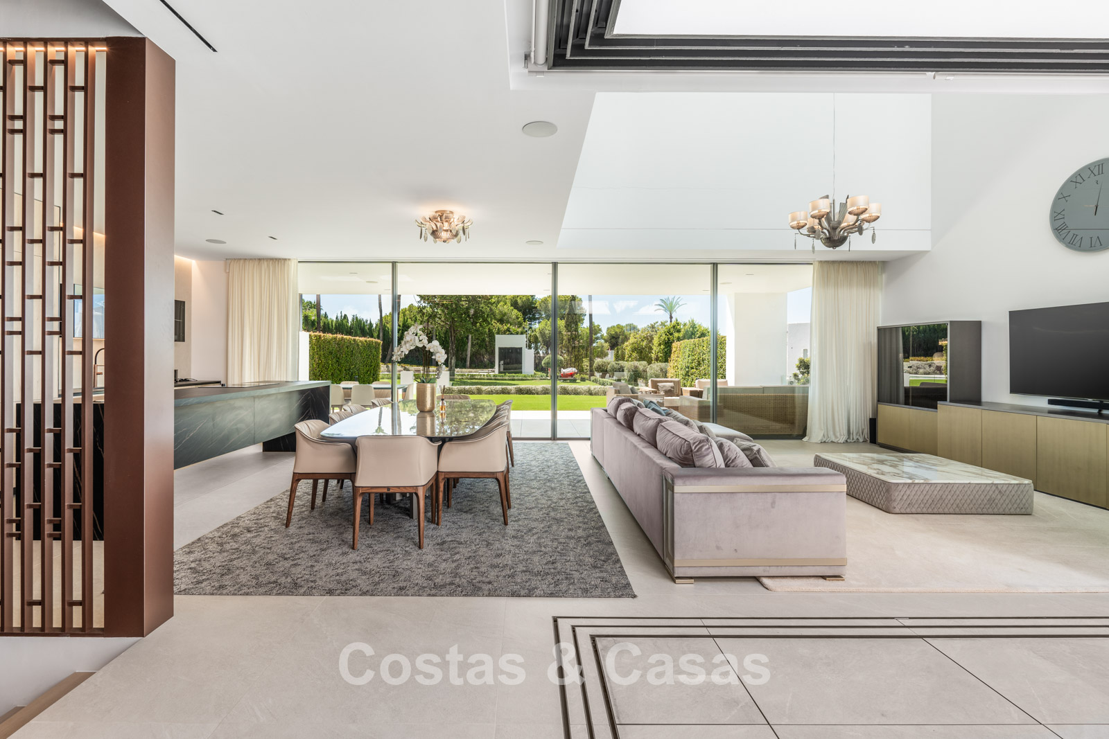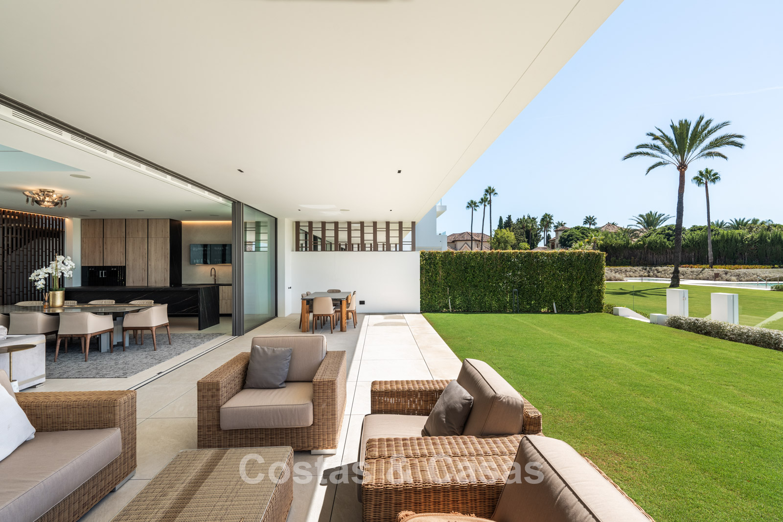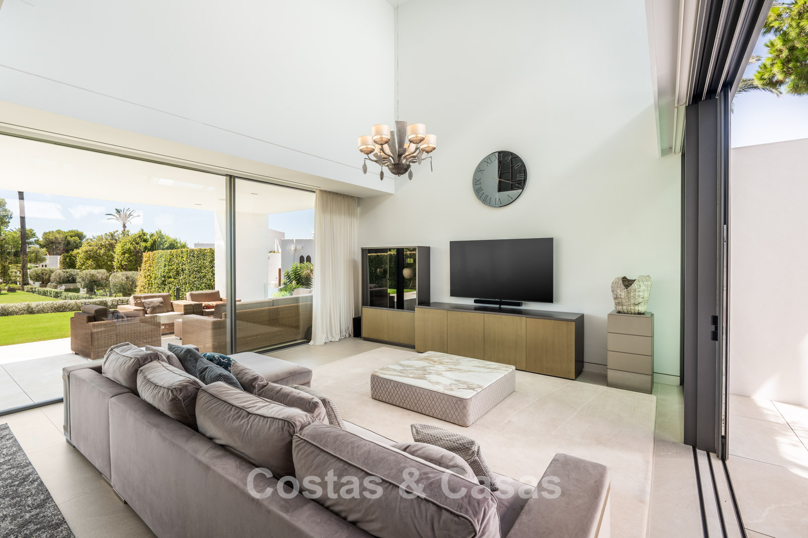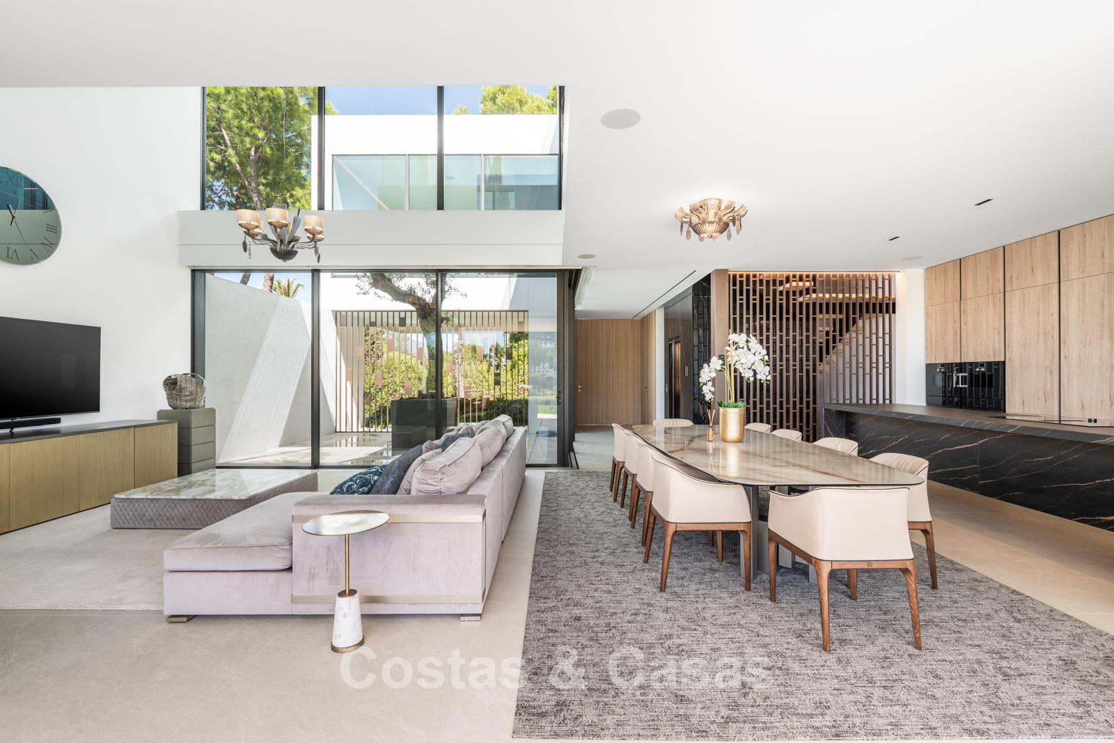 Top-quality semi-detached villa, characterized by a modern and prestigious design. Completed in 2023 and equipped with high-quality finishes. Finished with the utmost precision and a harmonious blend of comfort, elegance, and practicality. The floor-to-ceiling sliding windows, combined with recessed frames, blend the indoors and outdoors seamlessly, filling the interior with abundant natural light. Living and dining area with double-height ceilings and direct access to the terrace. Open-plan, custom-designed kitchen, equipped with Gaggenau appliances and a breakfast island. 4 bedrooms and 5 bathrooms. The master suite features a spacious walk-in closet, open-plan bathroom, and a private terrace. Porcelanosa marble finishes and oak floors. Storage room. 3 underground parking spaces with direct access.
