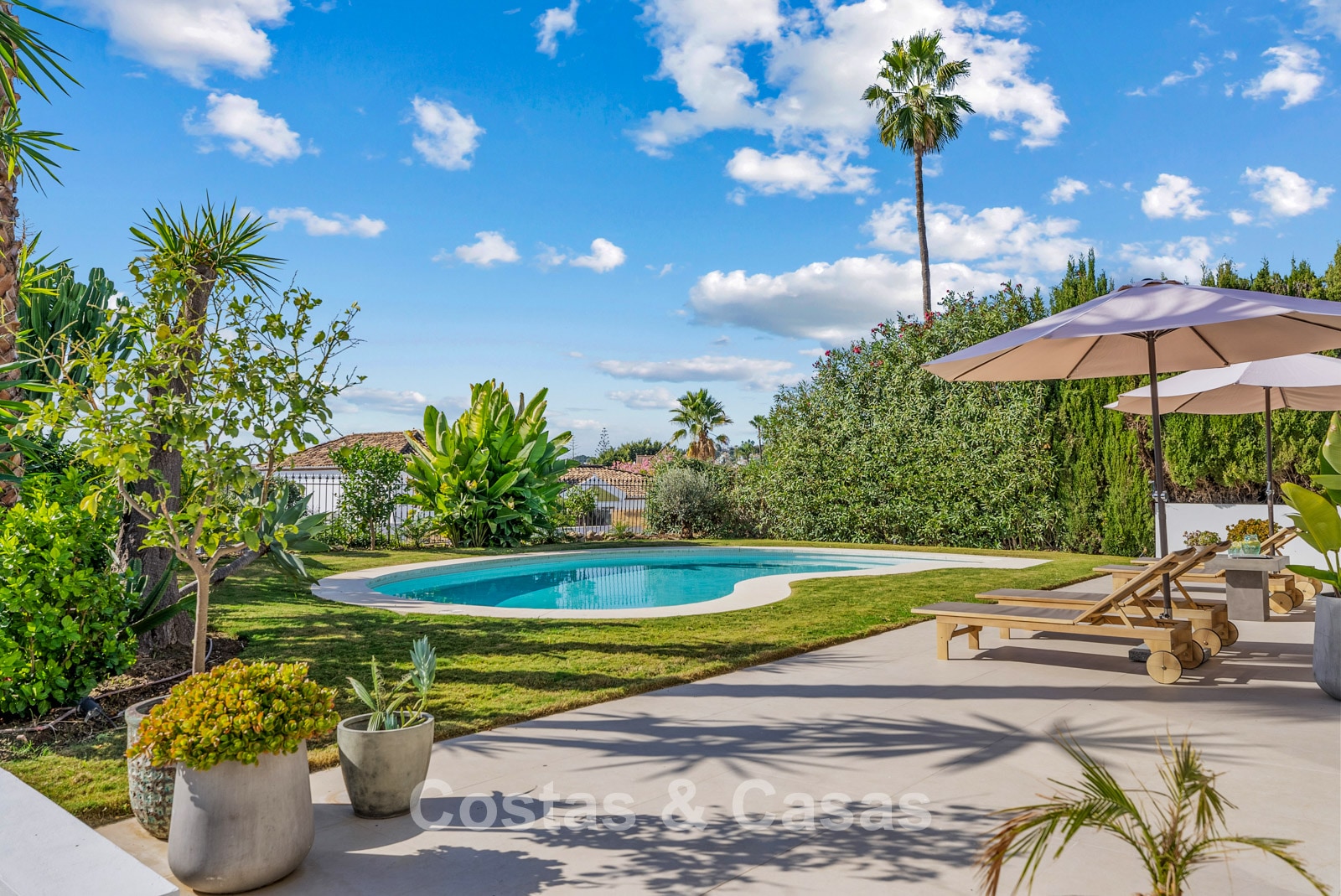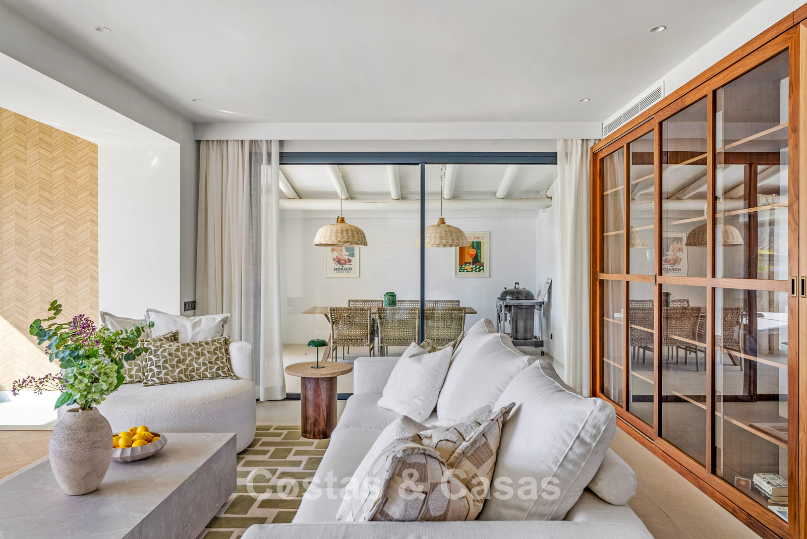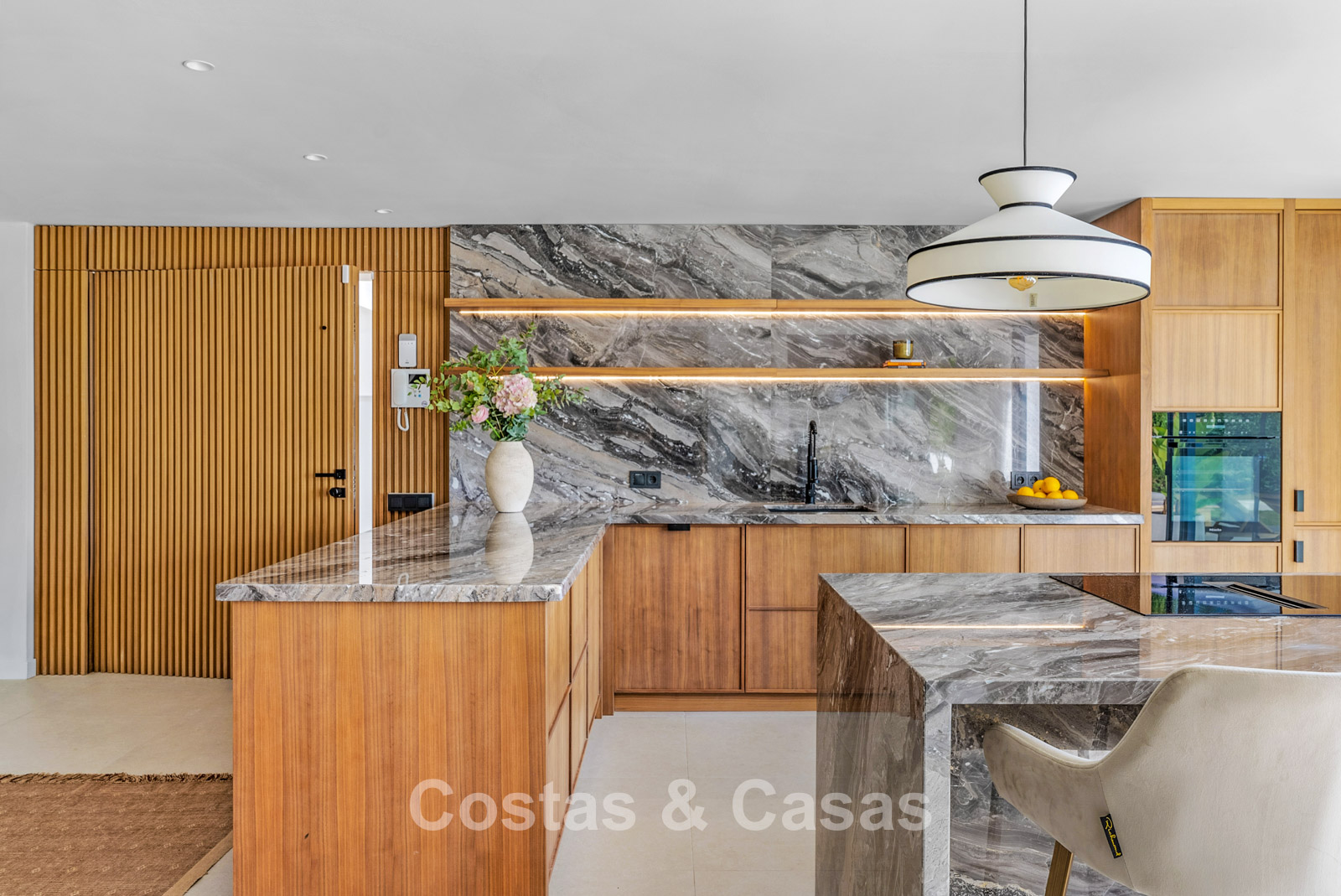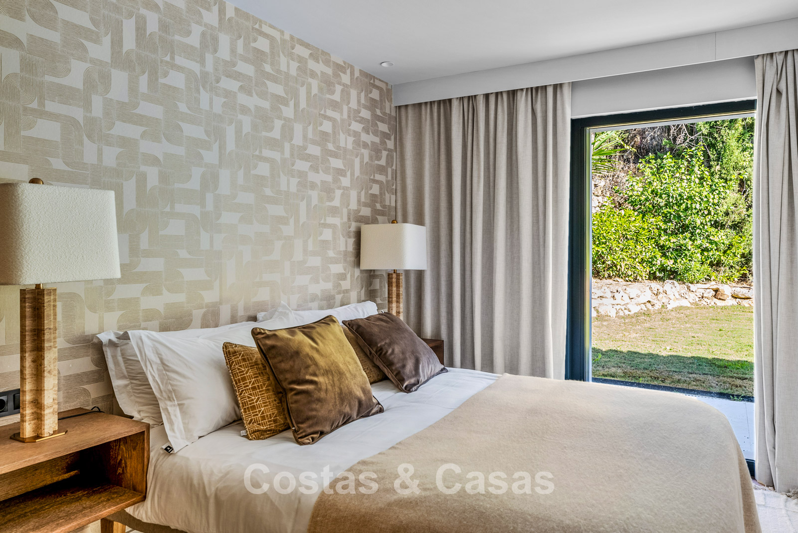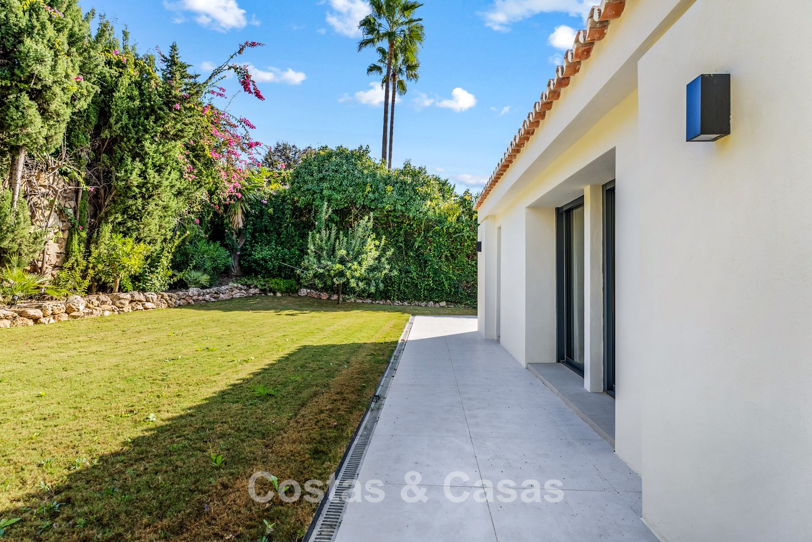 This detached villa has recently been fully renovated in a timeless Scandinavian style. The property is distributed over two floors plus a rooftop terrace. Only premium materials such as natural stone and oak wood have been used throughout. The interior exudes luxury and serenity thanks to light colour palettes and minimalist finishes. Floor-to-ceiling sliding glass doors create a seamless transition between indoor and outdoor living. Open-plan living space with a TV lounge and integrated dining area featuring a double-height ceiling. Functional bespoke kitchen equipped with high-end Miele appliances and a central island. 4 bedrooms, 4 bathrooms. Laundry room fitted with high-quality Miele appliances. Covered private parking for 3 to 4 cars.