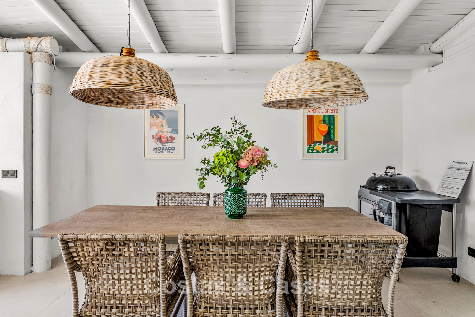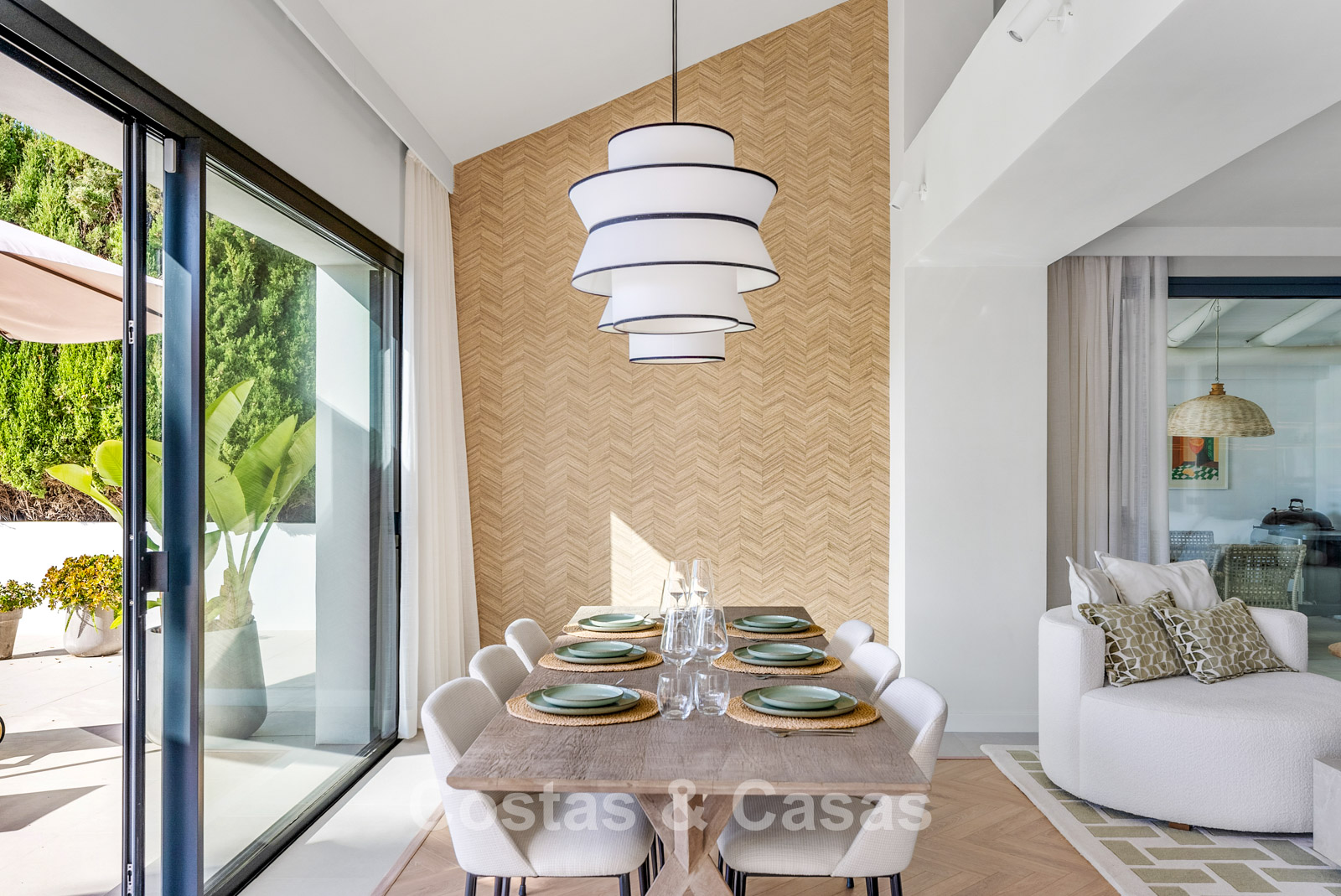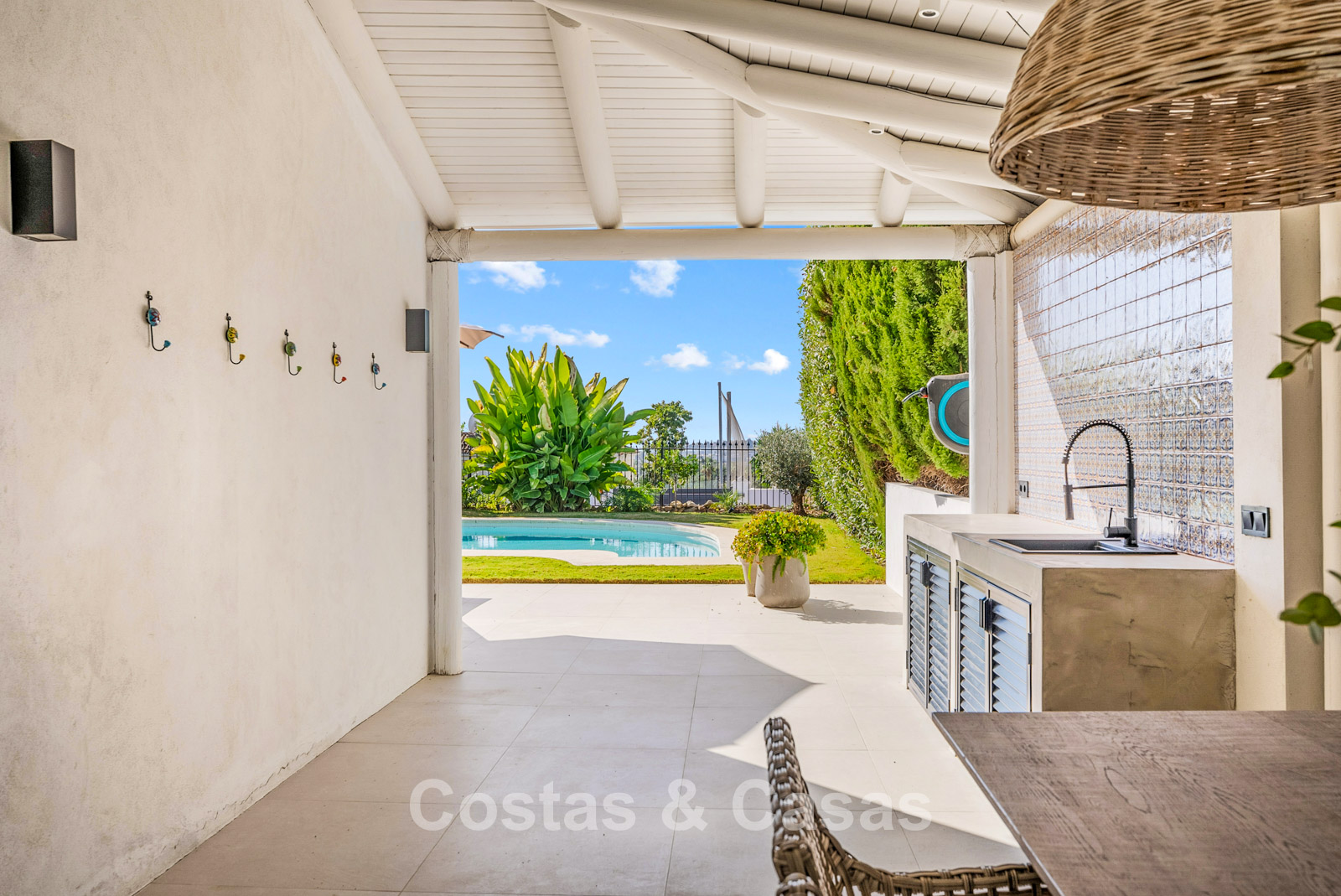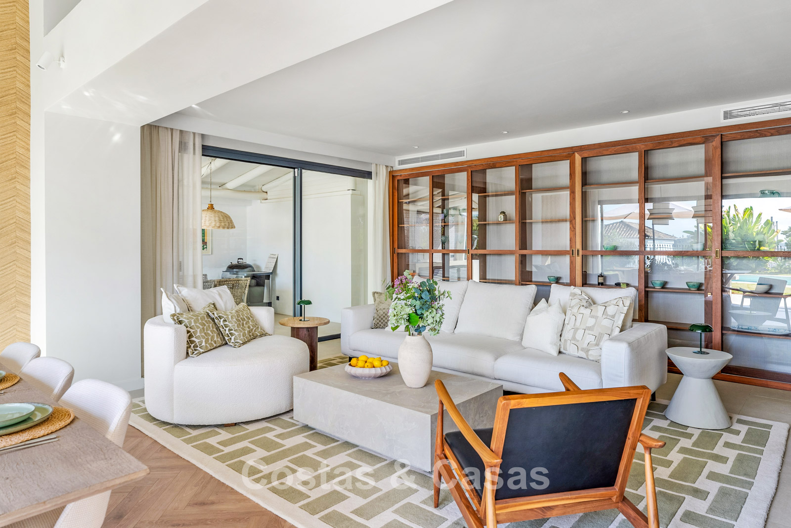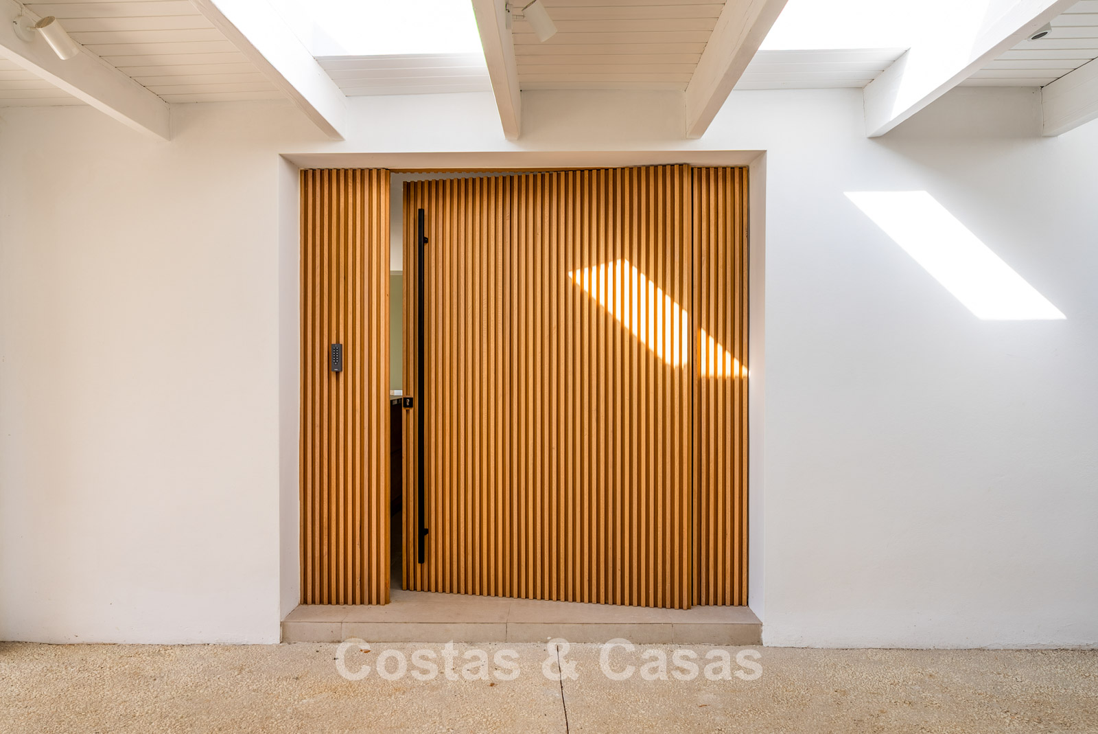 This detached villa has recently been fully renovated in a timeless Scandinavian style. The property is distributed over two floors plus a rooftop terrace. Only premium materials such as natural stone and oak wood have been used throughout. The interior exudes luxury and serenity thanks to light colour palettes and minimalist finishes. Floor-to-ceiling sliding glass doors create a seamless transition between indoor and outdoor living. Open-plan living space with a TV lounge and integrated dining area featuring a double-height ceiling. Functional bespoke kitchen equipped with high-end Miele appliances and a central island. 4 bedrooms, 4 bathrooms. Laundry room fitted with high-quality Miele appliances. Covered private parking for 3 to 4 cars.