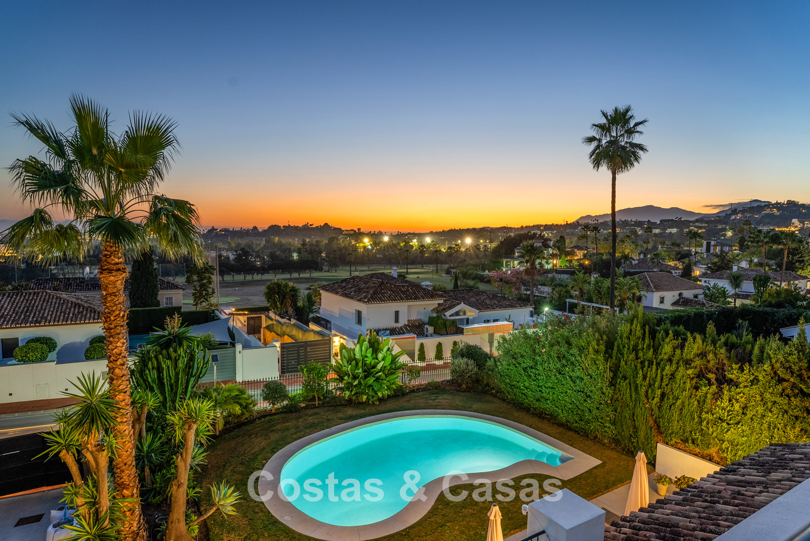 The plot is fully enclosed and offers maximum privacy. The garden is a peaceful oasis with a manicured lawn and Mediterranean planting. Outdoor areas include several sun terraces, an outdoor kitchen and a rooftop terrace. Private swimming pool surrounded by lawn. Ideal south to south-west orientation. Beautiful views over the garden and surroundings from the upper floors, including mountain landscapes and golf courses.