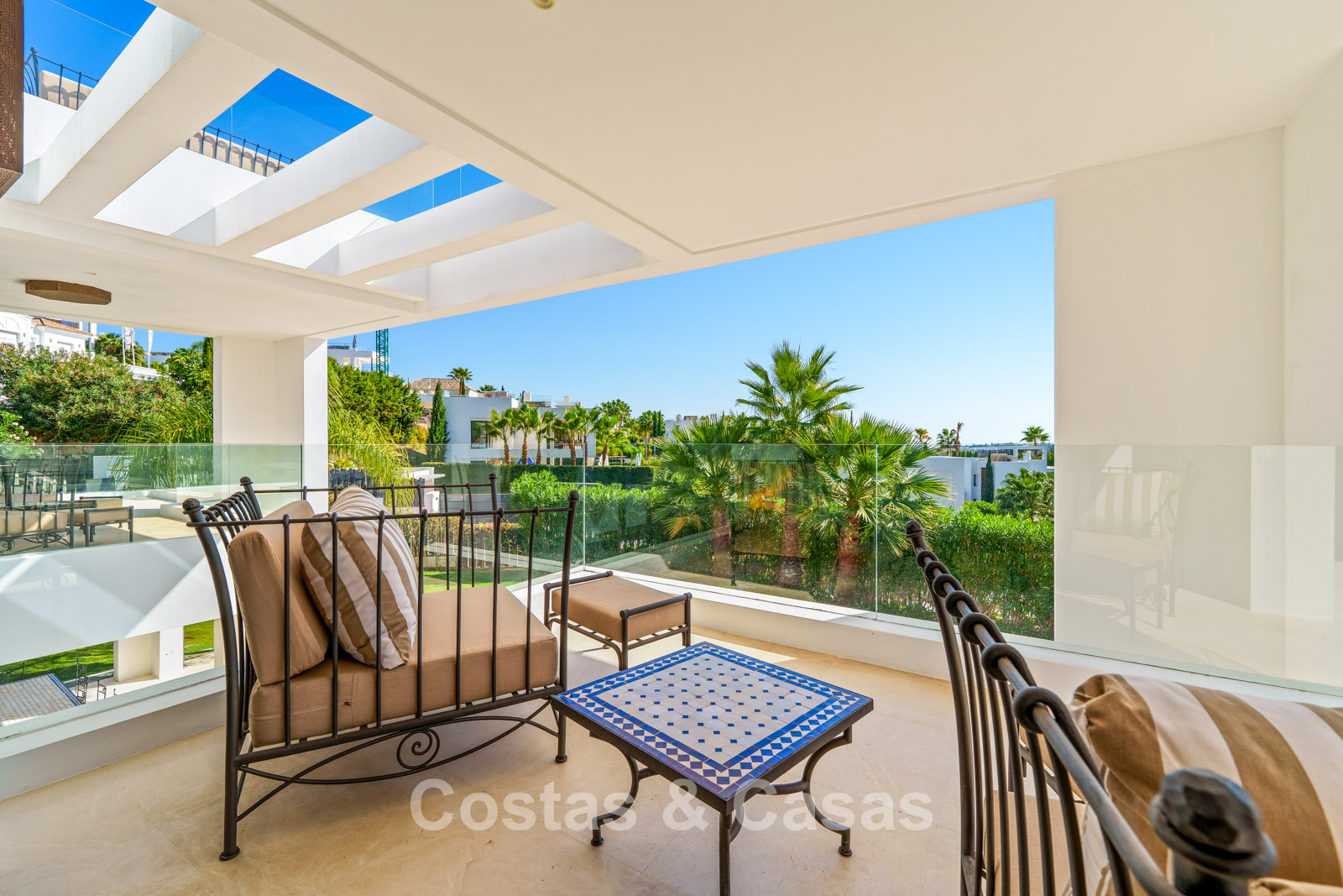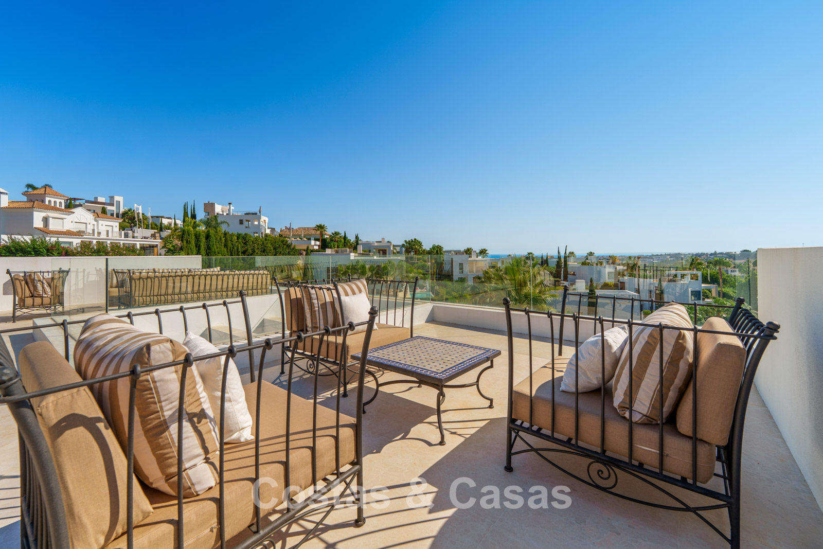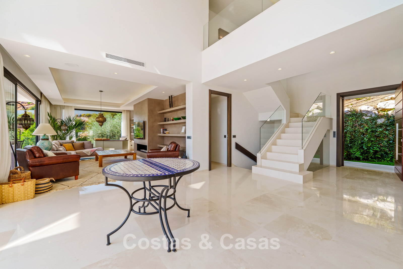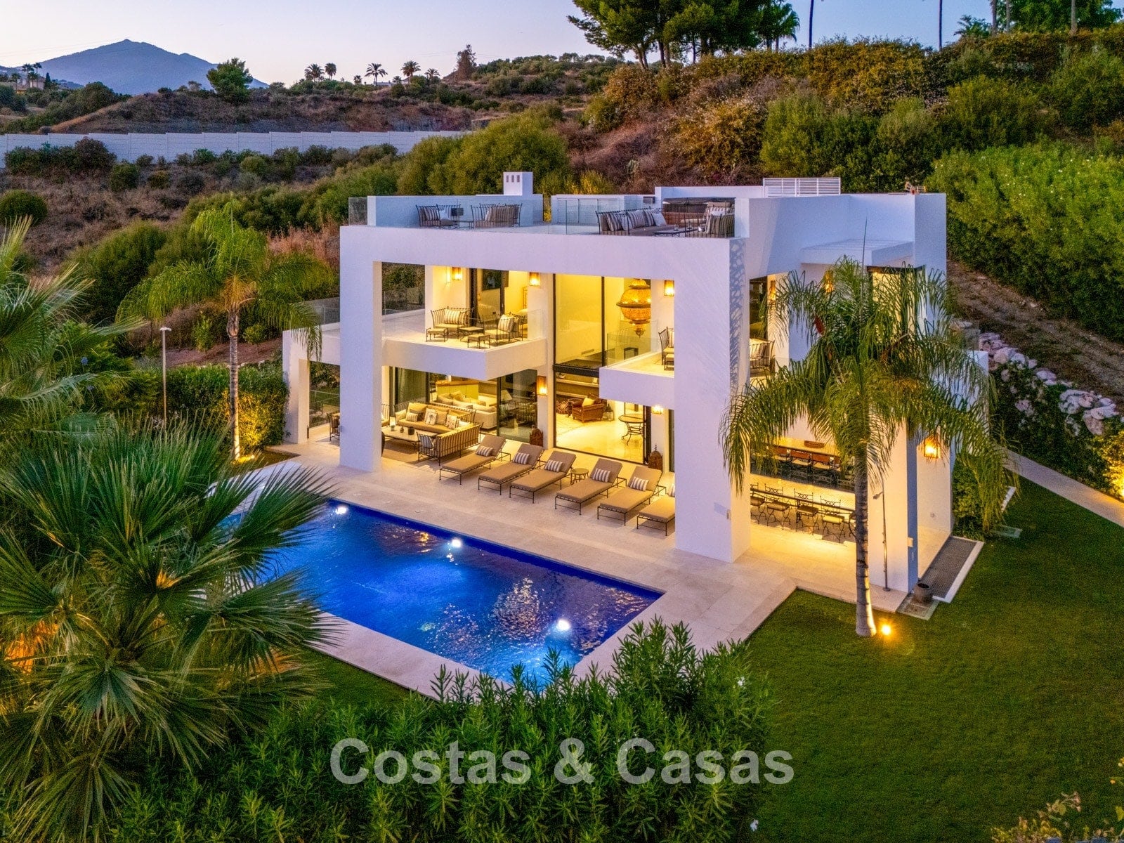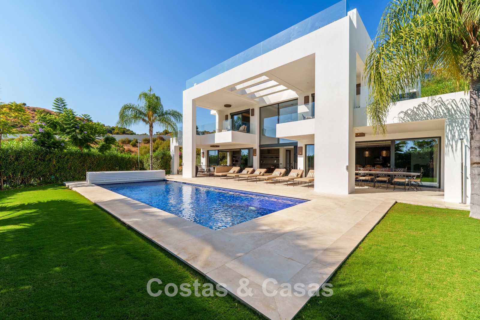 Additional features: Air conditioning (cooling and heating) Underfloor heating in the bathrooms Modern fireplace Fitted wardrobes Double glazing Marble floors Glass balustrades Advanced alarm system LED lighting indoors and outdoors Outdoor shower