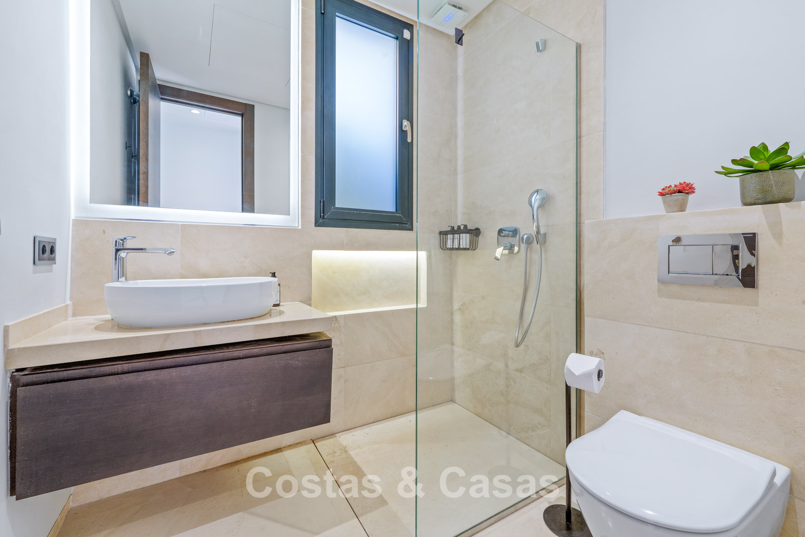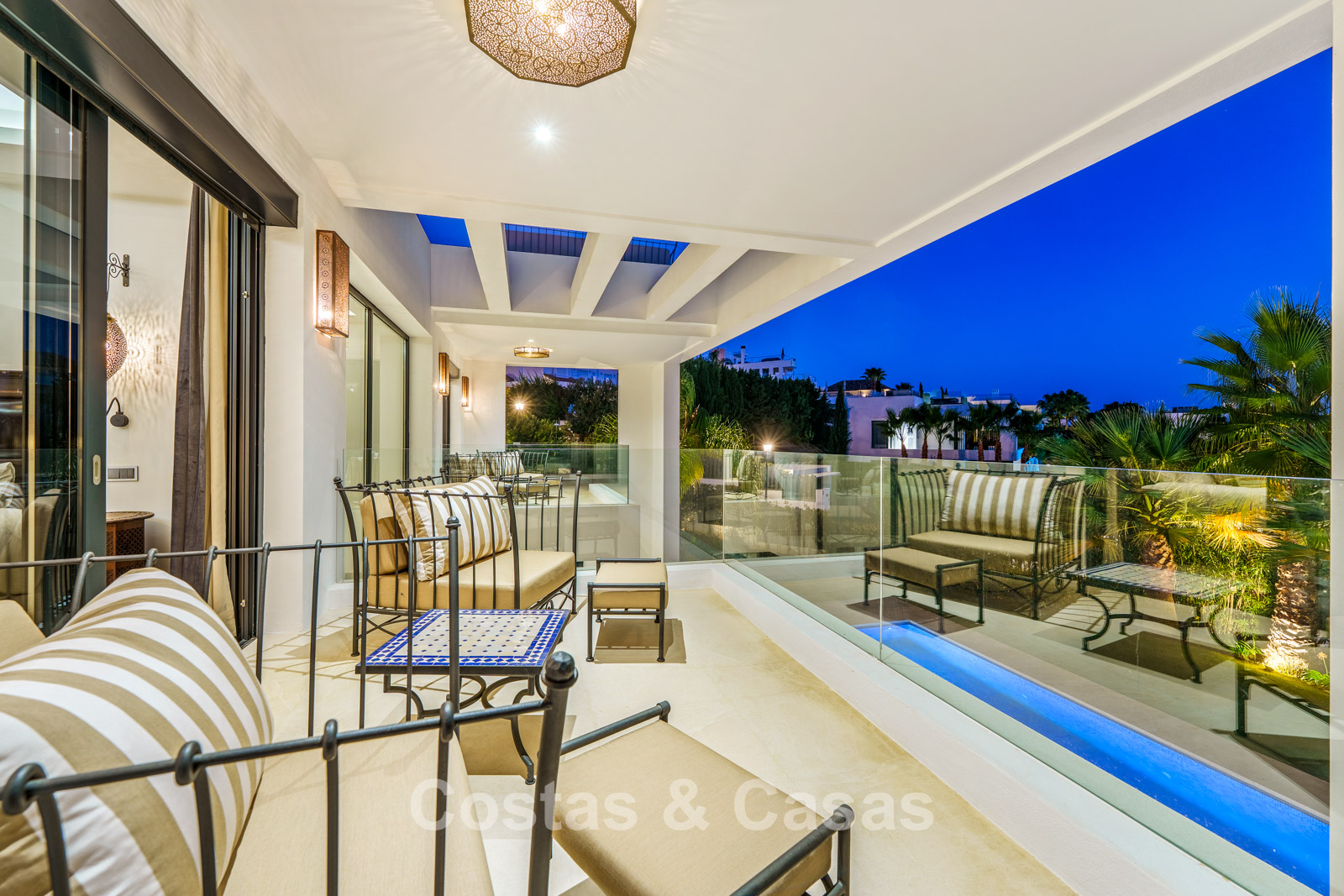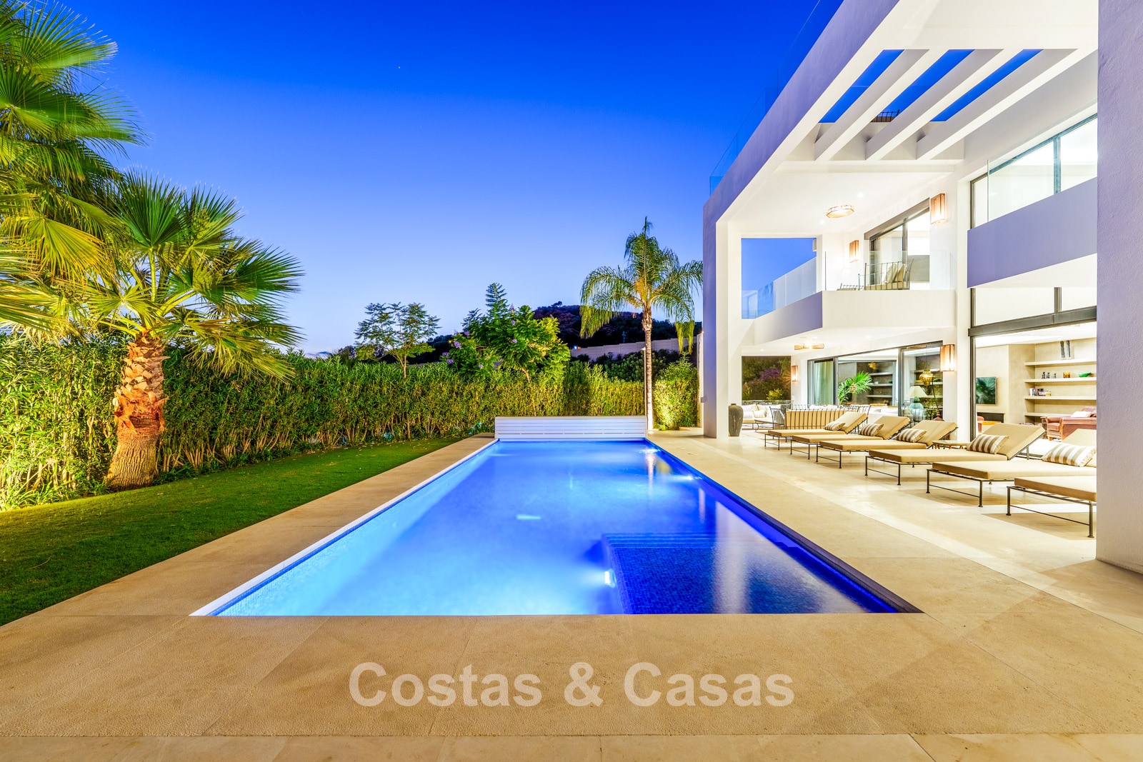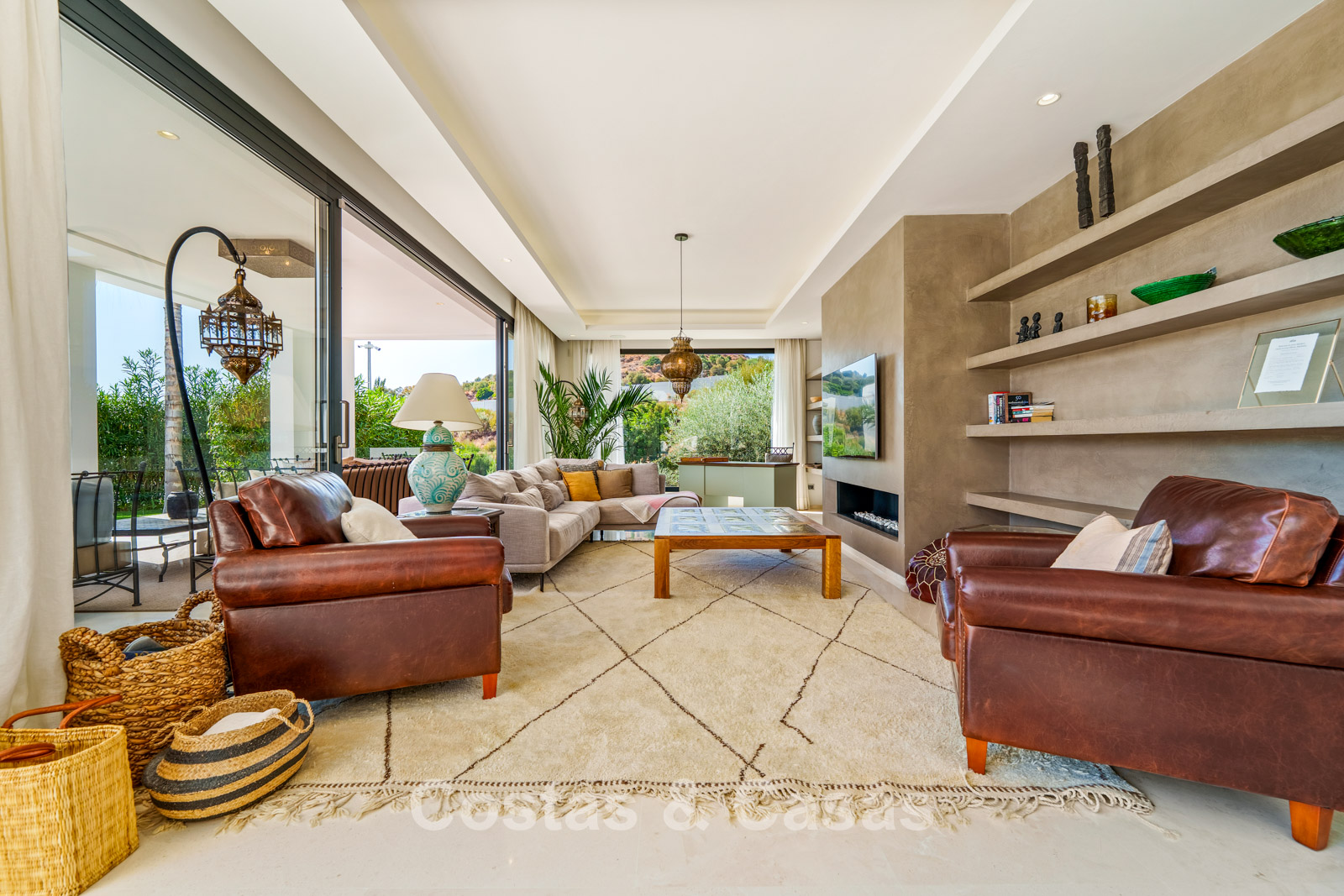 Additional features: Air conditioning (cooling and heating) Underfloor heating in the bathrooms Modern fireplace Fitted wardrobes Double glazing Marble floors Glass balustrades Advanced alarm system LED lighting indoors and outdoors Outdoor shower