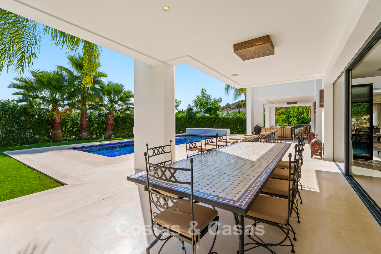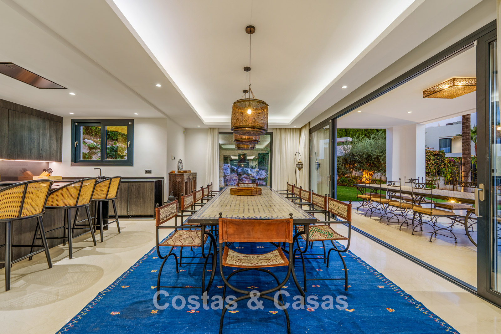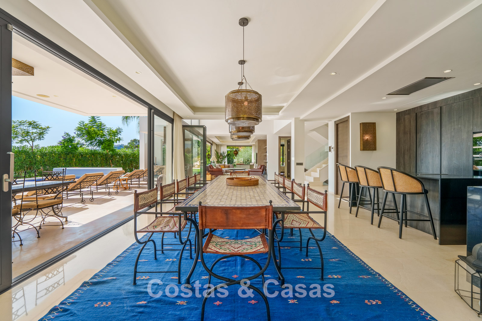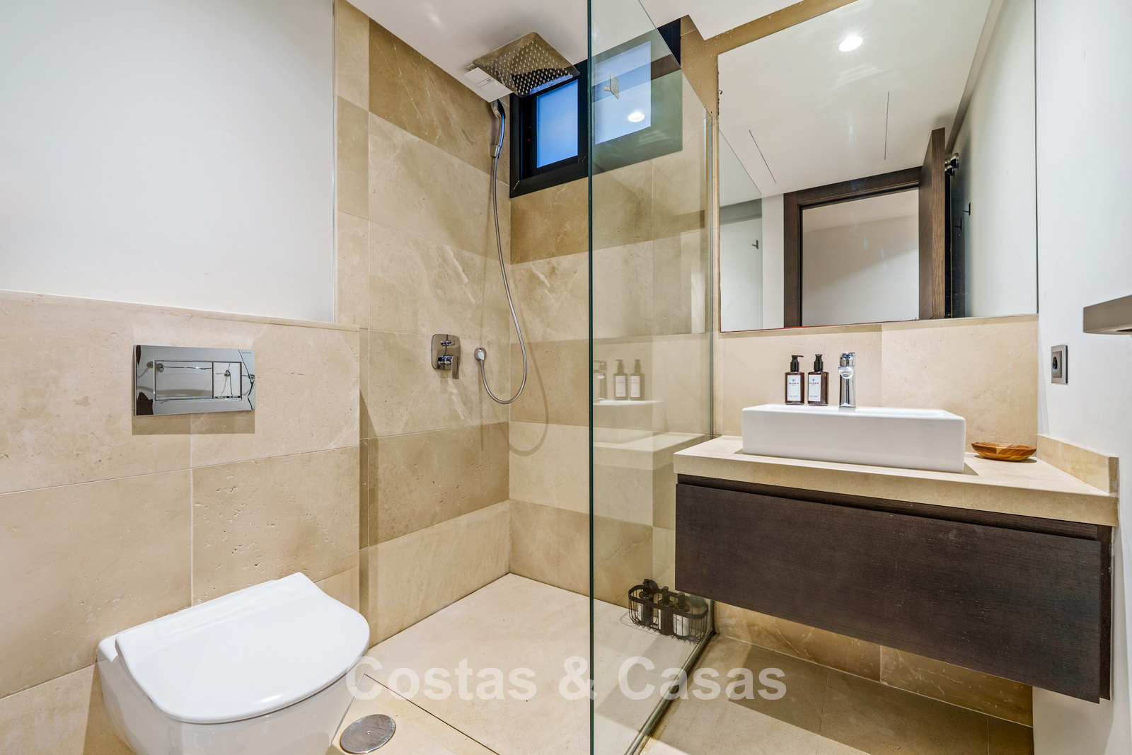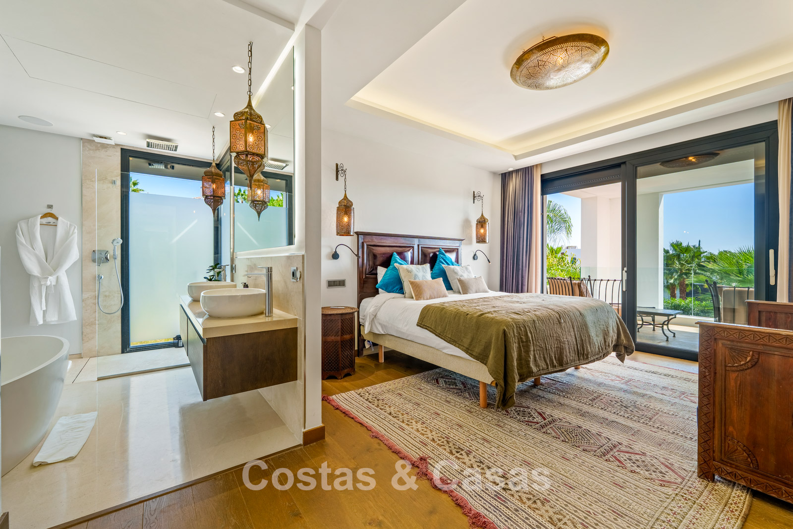 Additional features: Air conditioning (cooling and heating) Underfloor heating in the bathrooms Modern fireplace Fitted wardrobes Double glazing Marble floors Glass balustrades Advanced alarm system LED lighting indoors and outdoors Outdoor shower