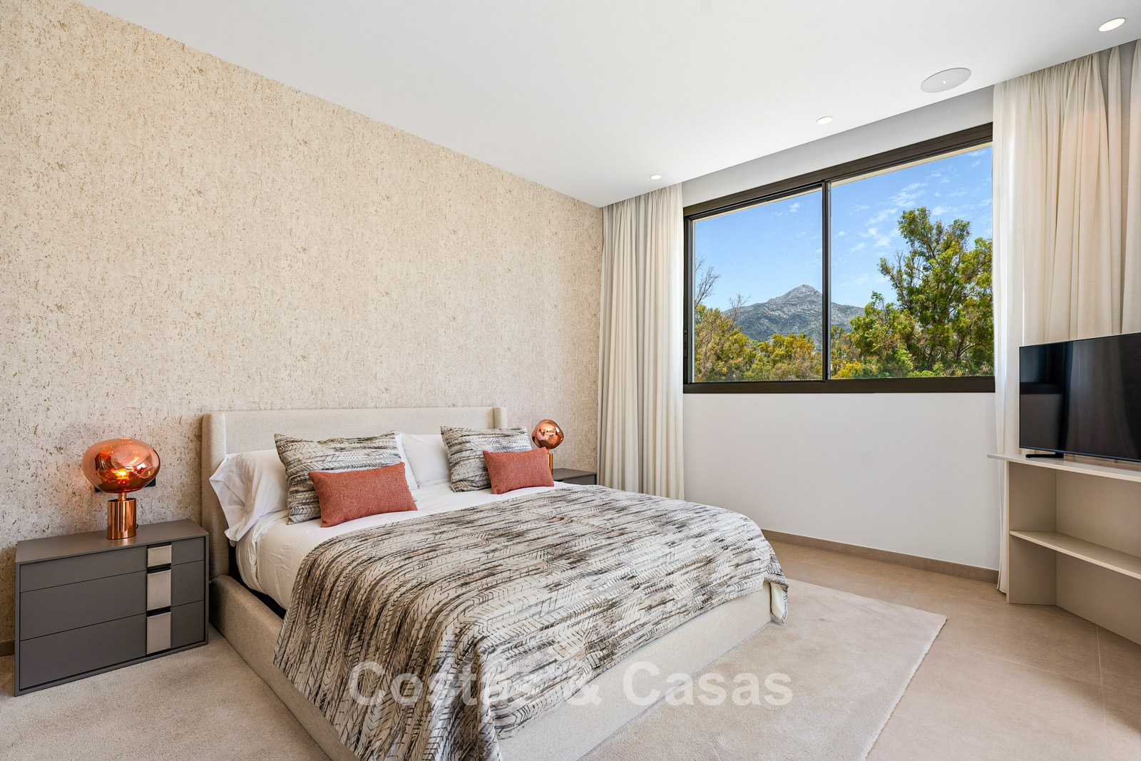 Spacious plot, enclosed by high plantings. Manicured landscaped garden with a private swimming pool in an L-shape around the terrace. Generous open and covered terraces equipped with lounge areas, a barbecue and an 'al fresco dining' area. Vast views of the surrounding area with golf courses and with the La Concha mountain in the background.