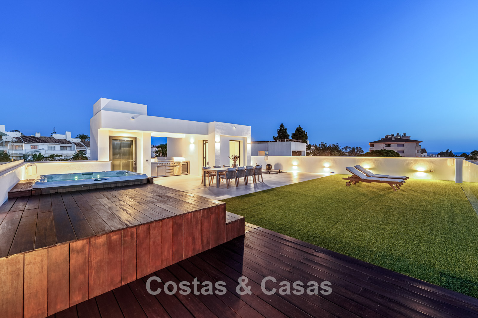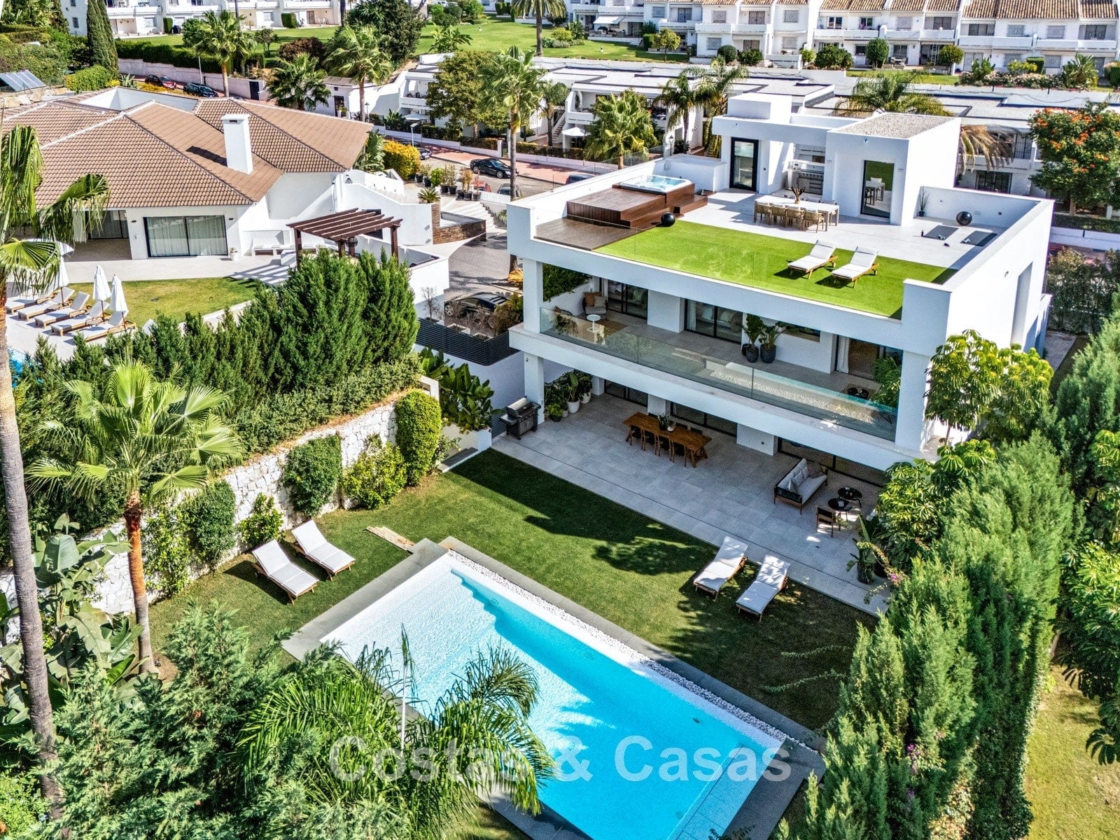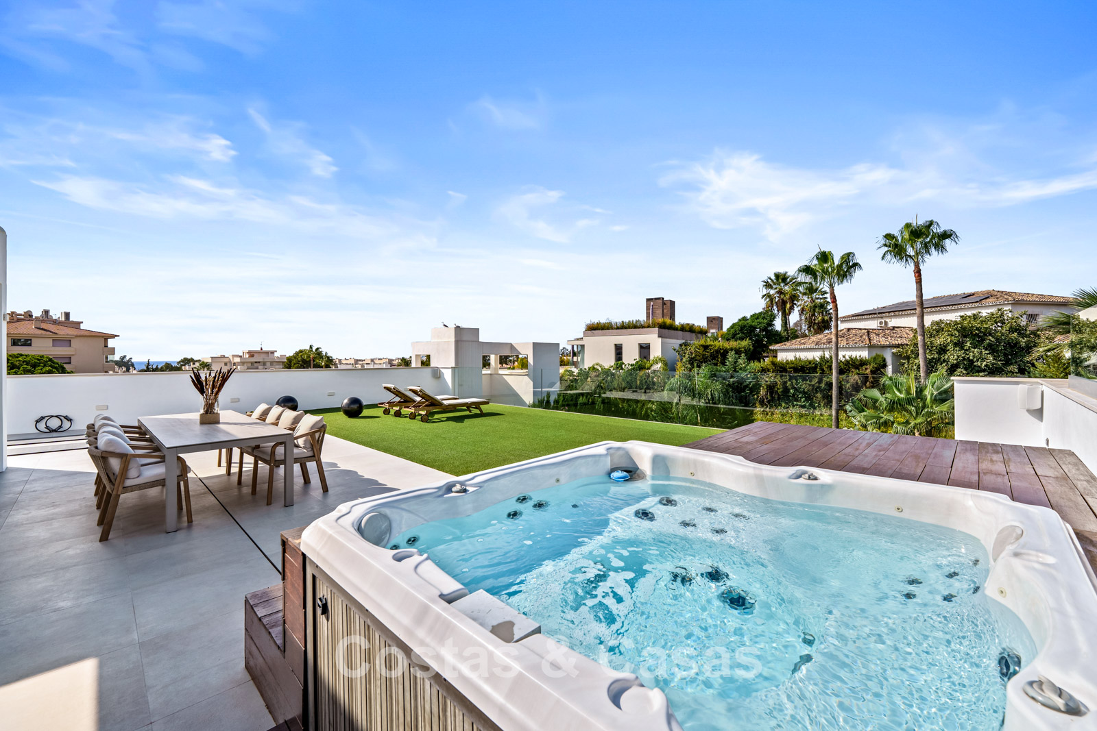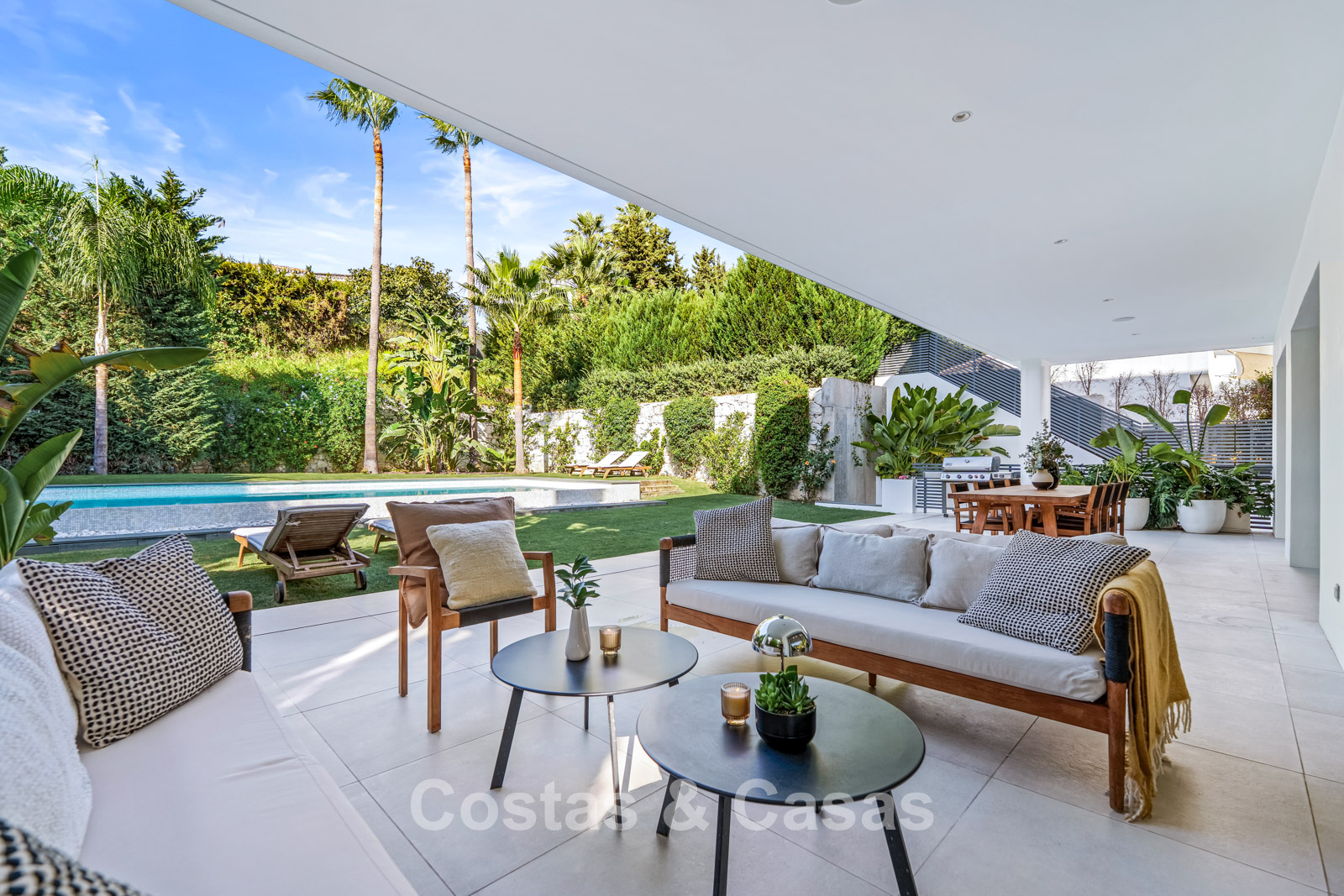 Stunning luxury villa for sale with inviting outdoor spaces, a few minutes' walk from Puerto Banus, Marbella