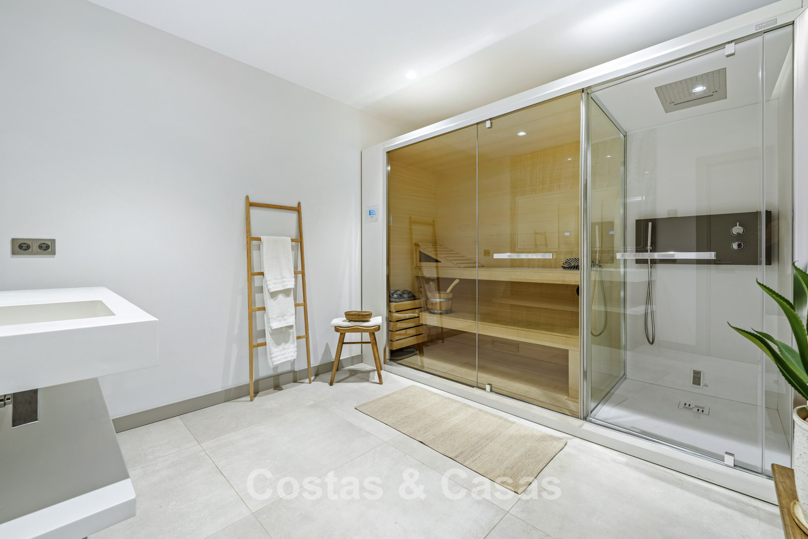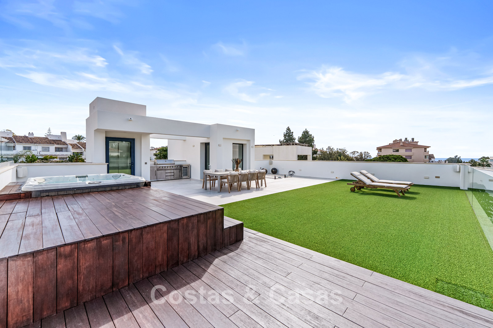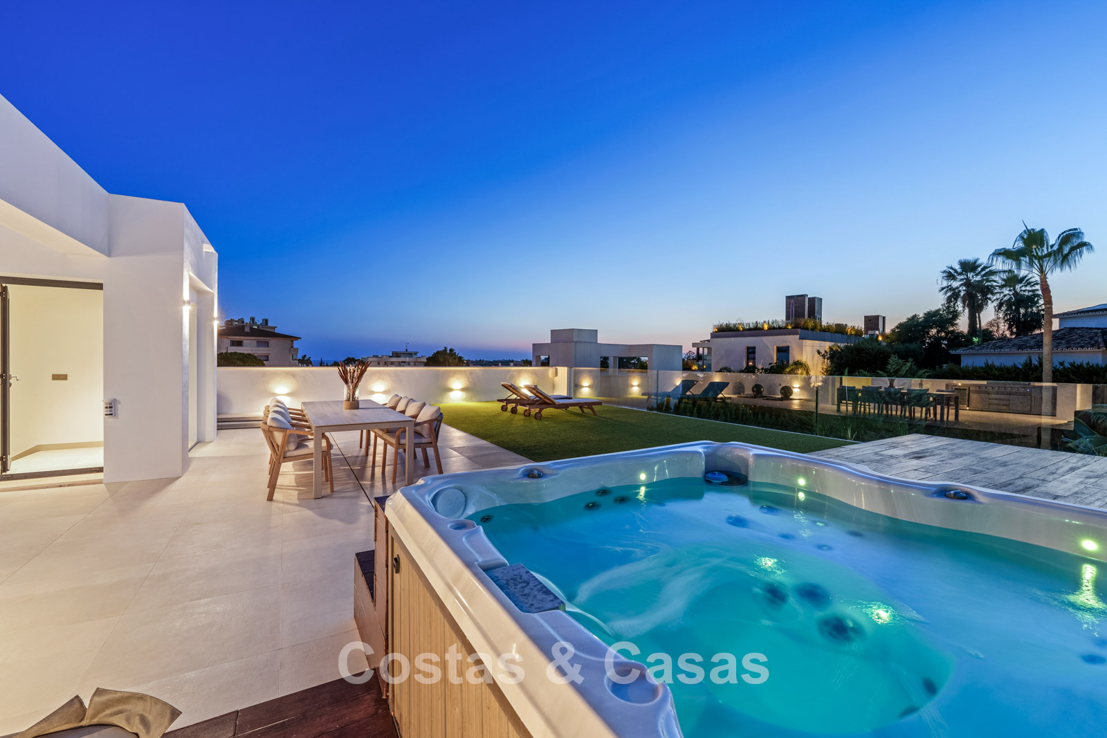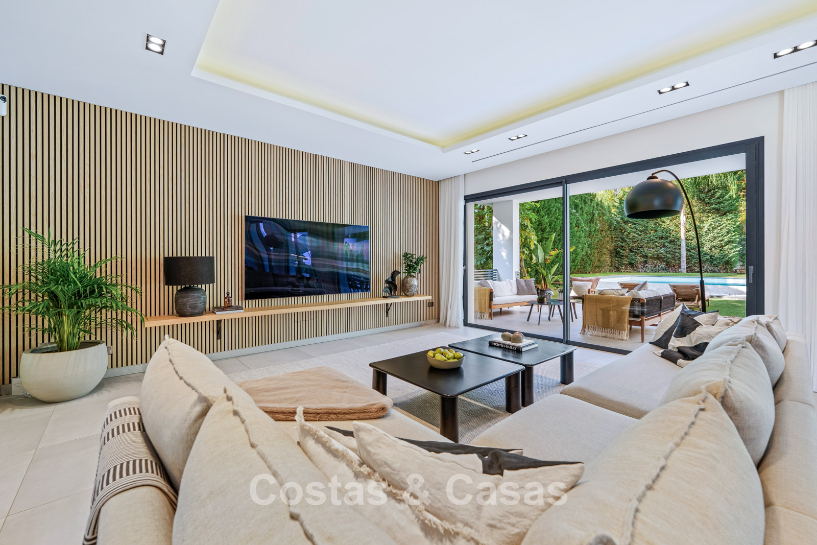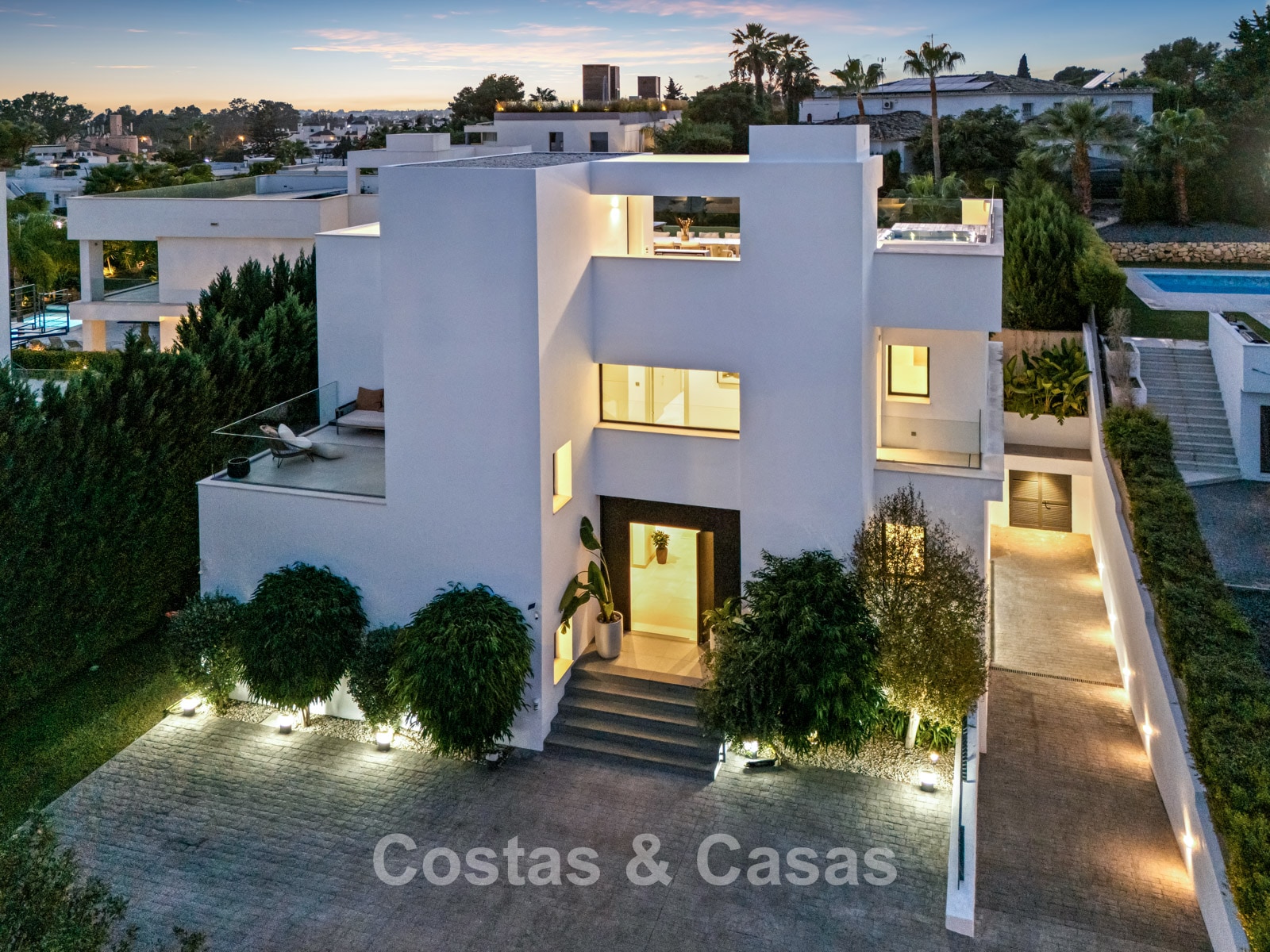 Stunning luxury villa for sale with inviting outdoor spaces, a few minutes' walk from Puerto Banus, Marbella