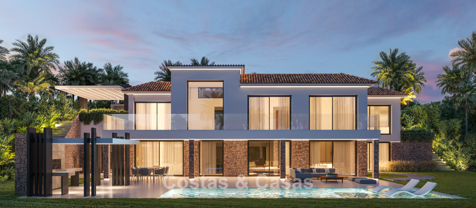Plot: 1,009m² Total built area: 862m² Interior area: 458m² Terraces: 403m² Garden: 311m² Swimming pool: 48m² Bedrooms: 5 Bathrooms: 5 Guest toilets: 2 2 floors + solarium P.O.A. (Please note: the price will increase as construction progresses)
