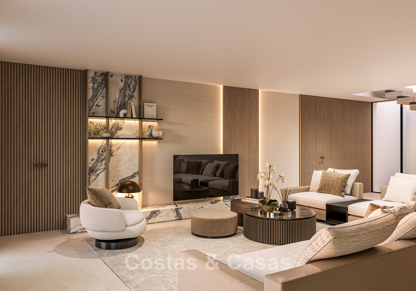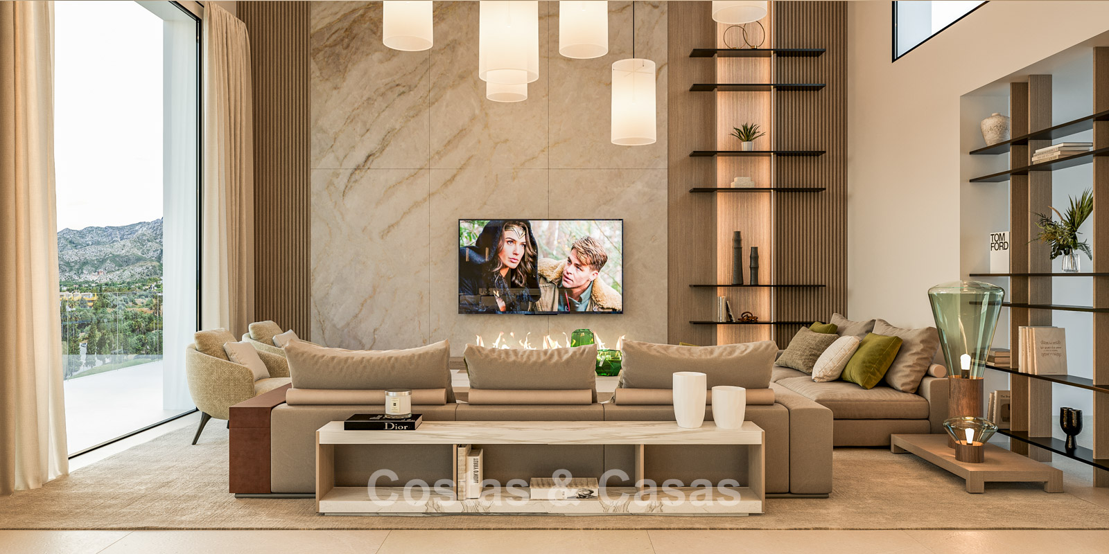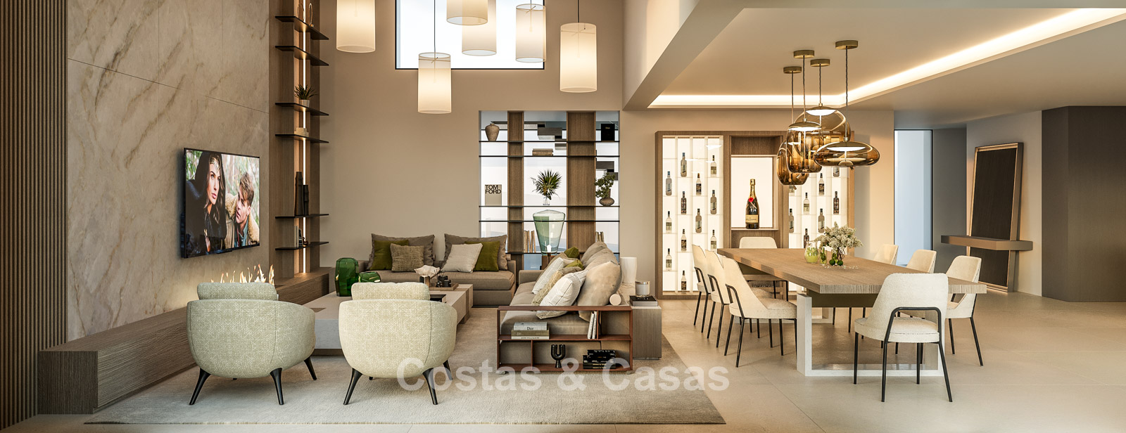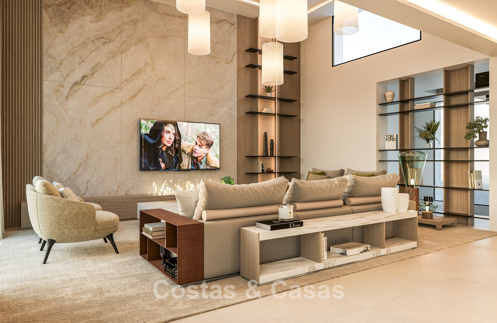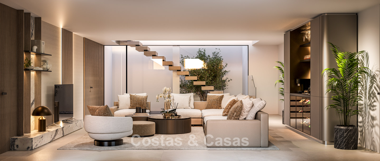 Other features: Modern fireplace. Custom-made wardrobes. Double glazing. Glass balustrades. Indoor and outdoor LED lighting.