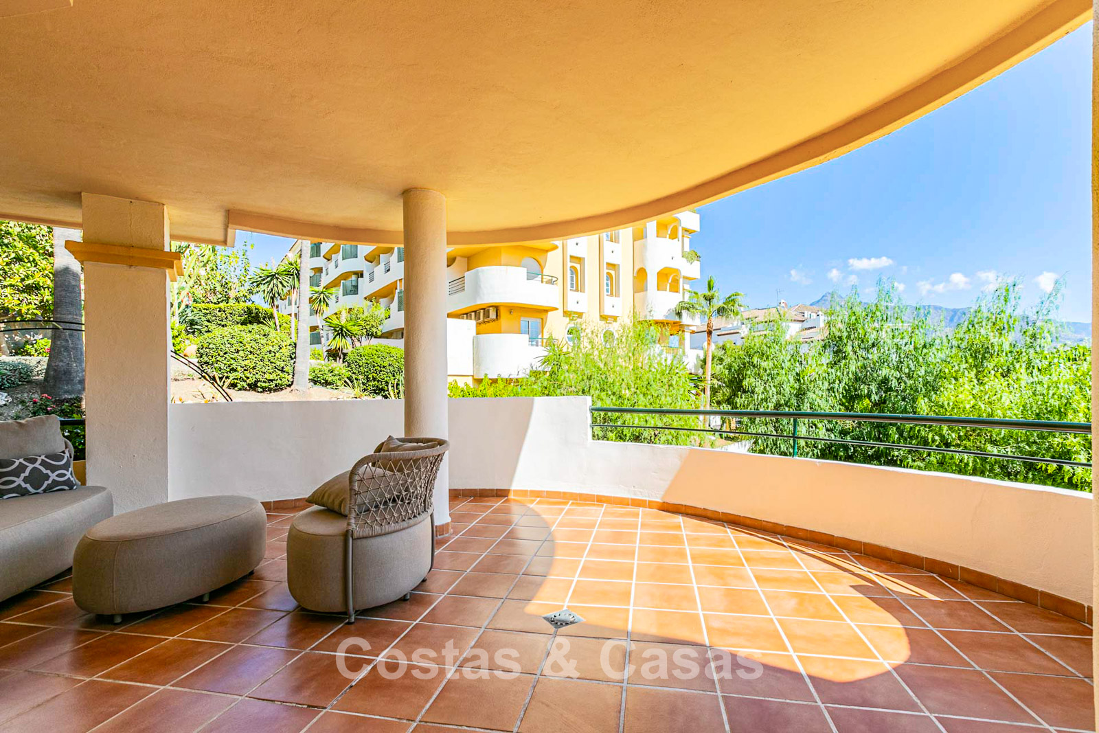 Turnkey corner apartment for sale within walking distance of Puerto Banus in Nueva Andalucia, Marbella